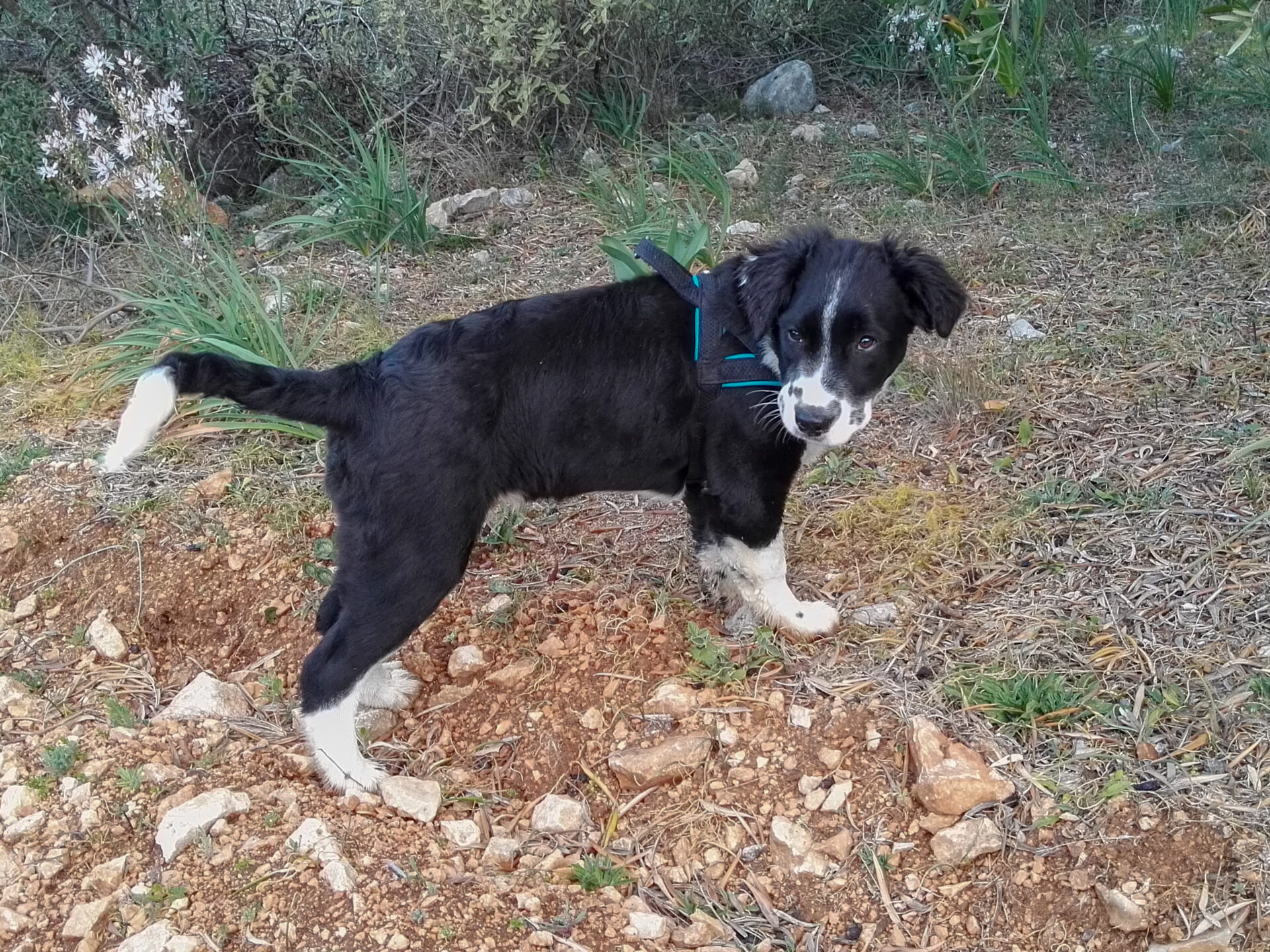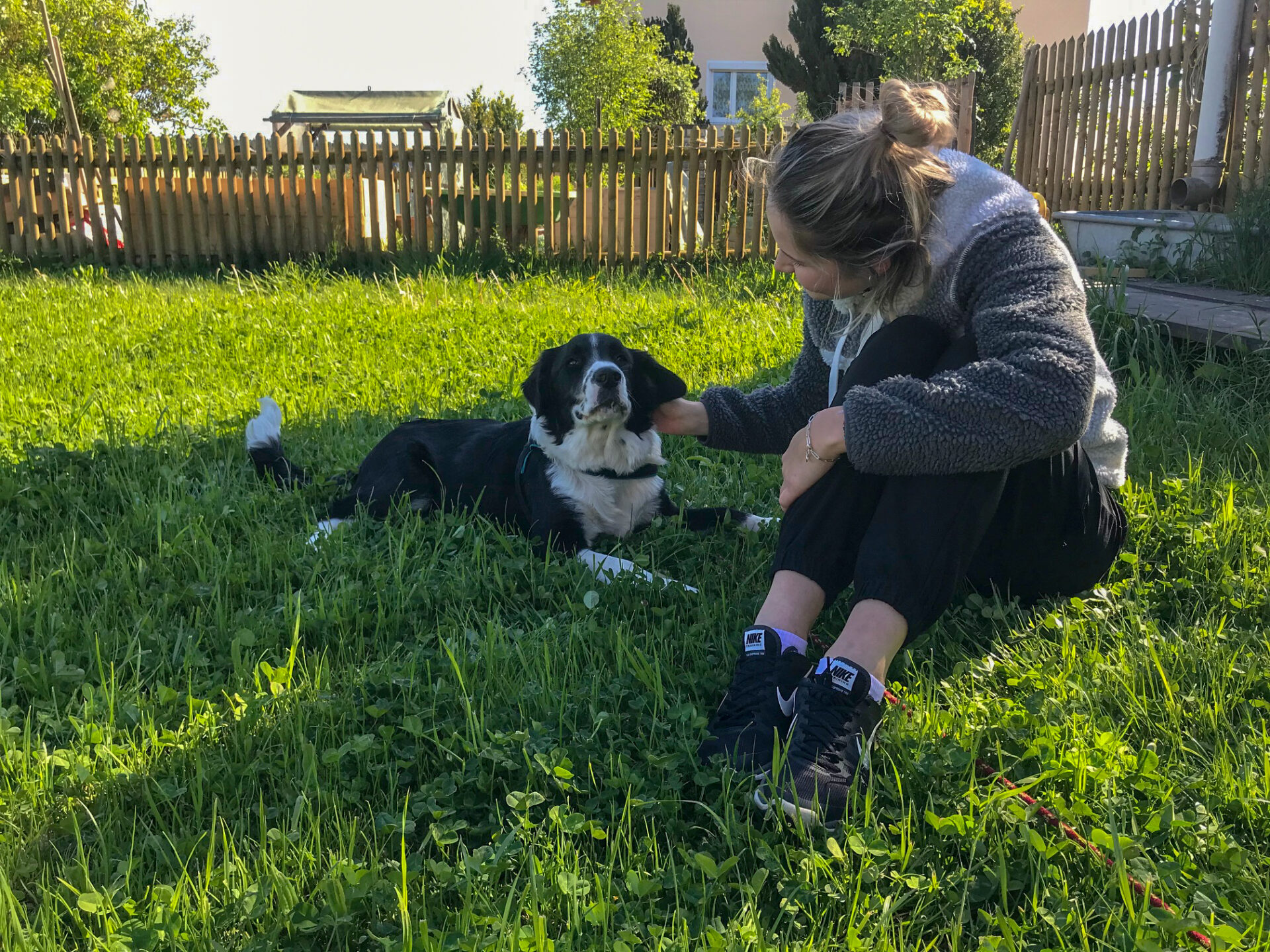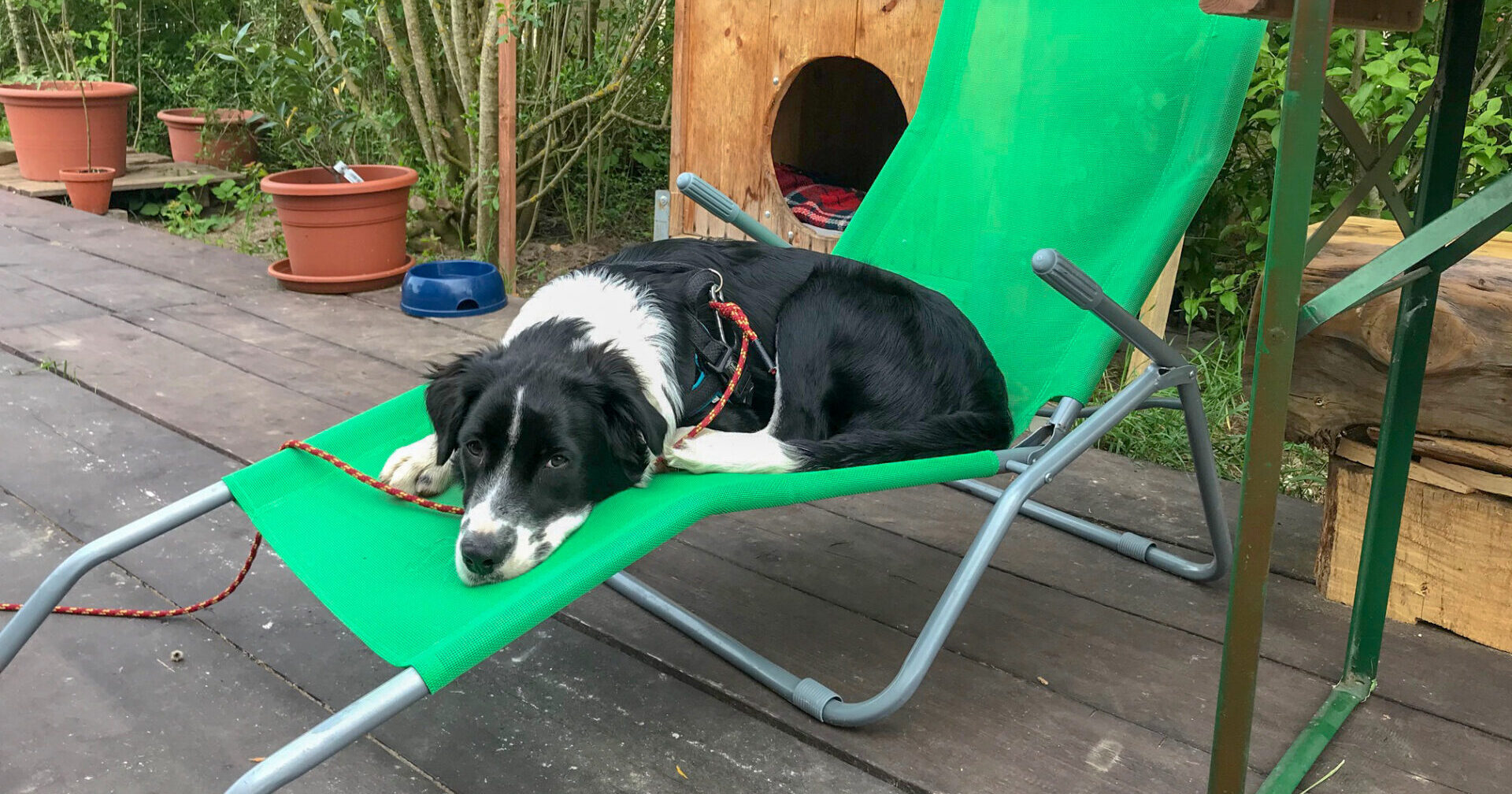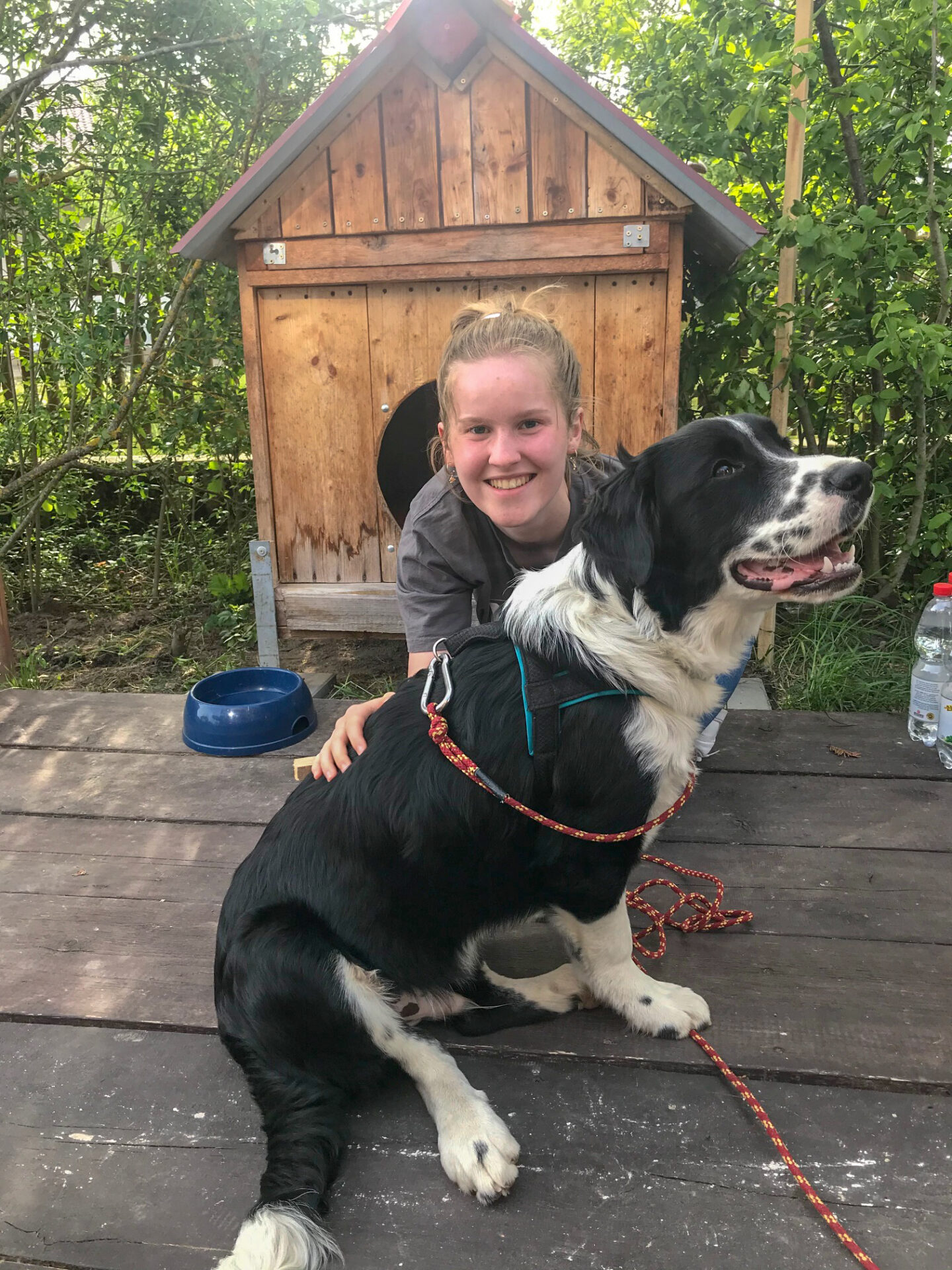 Bernd leint Yannis von der Schleppleine ab, nimmt die kurze Leine. Sagt: Komm Yannis, wir fahren. Yannis steht freudig auf, wedelt mit dem Schwanz, geht mit, steigt ins Auto und ist glücklich. Er hat nicht mal gekuckt! Also nach uns gekuckt! Da waren wir schon ein bisschen beleidigt.