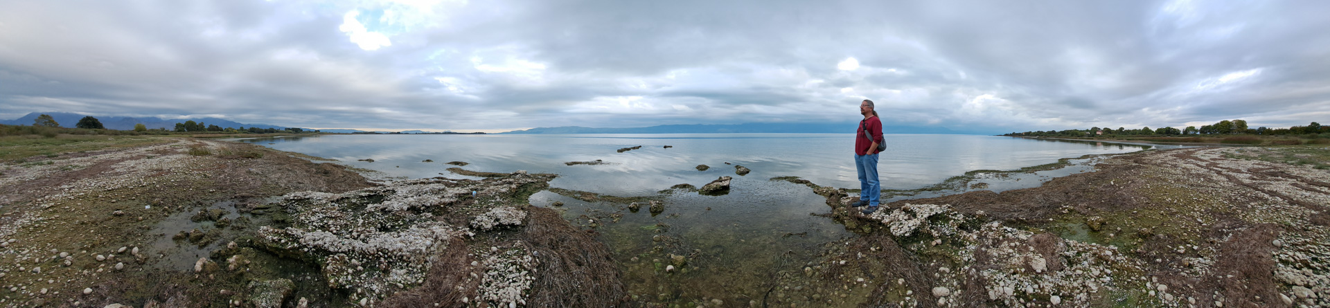 Von unserem Stellplatz hinter Peshkopi sind es gerade mal 16 Kilometer bis Debar in Nordmazedonien. Wir tanken voll, und siehe da, auf dem großen Tank läuft Oskar wieder wunderbar. Noch den kleinen Tank aufgefüllt und dann entlang des Schwarzen Drin bis an den Ohridsee. Die Straße ist eng, aber wunderschön und nach all den kleinen und großen Widrigkeiten der letzten Tage ist die Stimmung bei uns beiden mal wieder richtig gut. Bis es plötzlich einen lauten Knall tut und das Glas des linken Außenspiegels nur noch am Kabel der Spiegelheizung baumelt. F***!!!