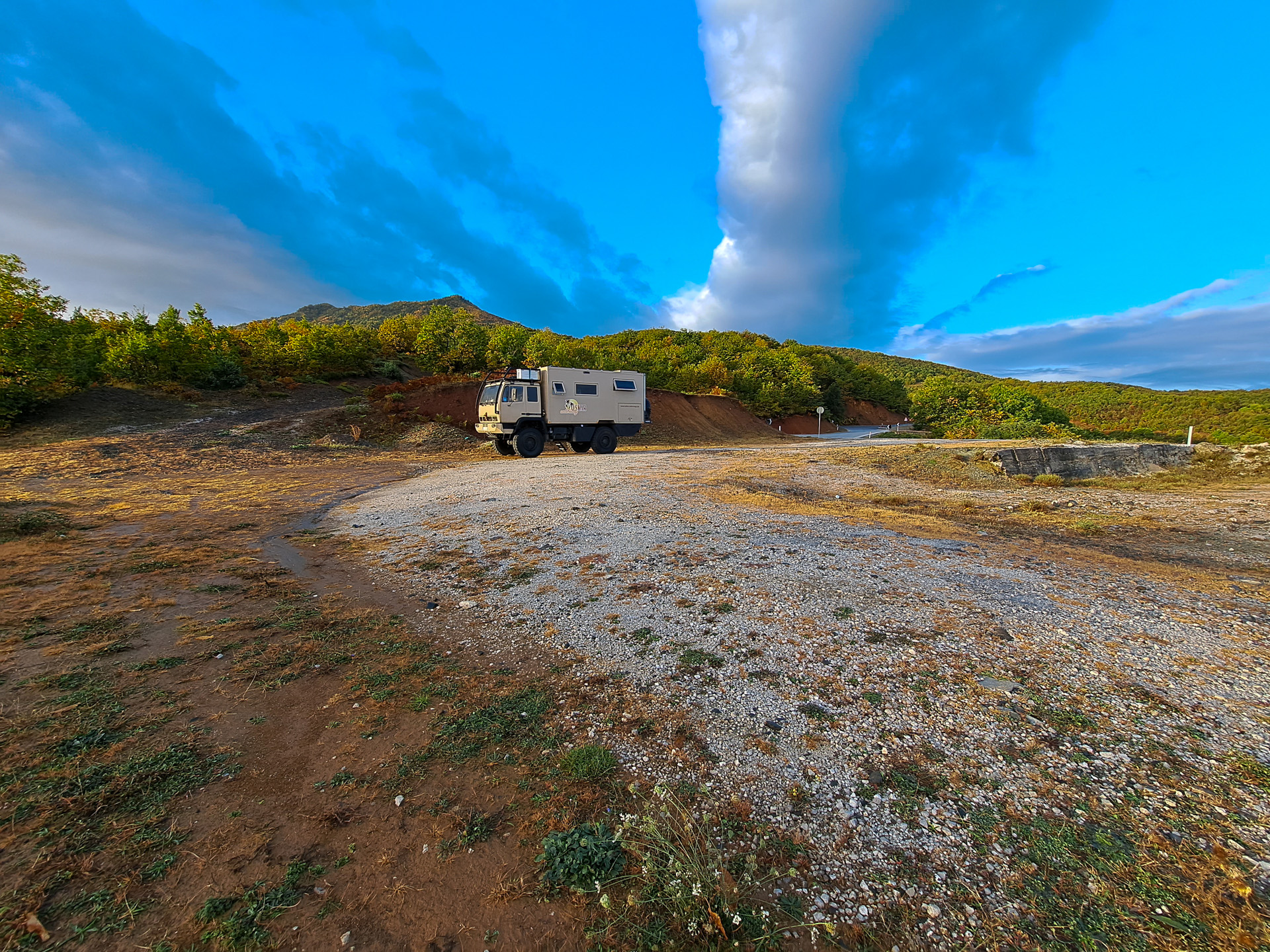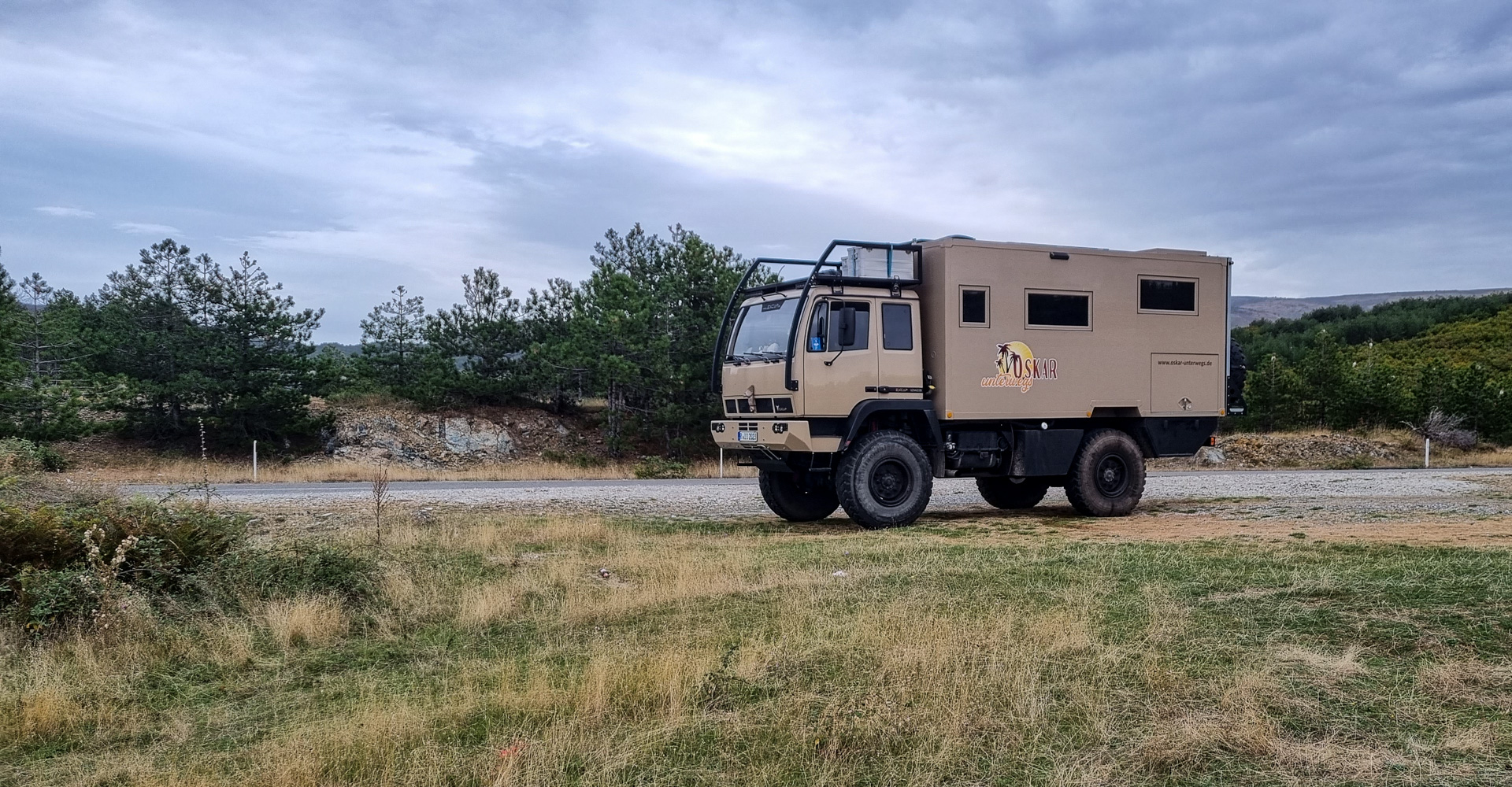 Von Kukës geht es weiter durch die Berge Richtung Süden nach Peshkopi. Oskar macht bereits seit Österreich immer wieder Probleme an stärkeren Steigungen und so wird auch diese Fahrt wieder eine Herausforderung. Bergauf mit viel Gas ist zunächst alles normal, doch dann bricht immer wieder die Leistung weg. Wir halten Rücksprache mit Stefan von Optimobil und uns kommt ein Verdacht: kleine Sägespäne, die beim Tausch der Tankstutzen im Tank verblieben sind und jetzt die Saugleitung des Tankgebers verstopfen, was dazu führt, dass Oskar nicht genug Sprit bekommt. Um das zu überprüfen, müssen wir aber erst mal den anderen, großen Tank voll machen. Und dazu fahren wir weiter nach Nordmazedonien… €1,35 der Liter Diesel!