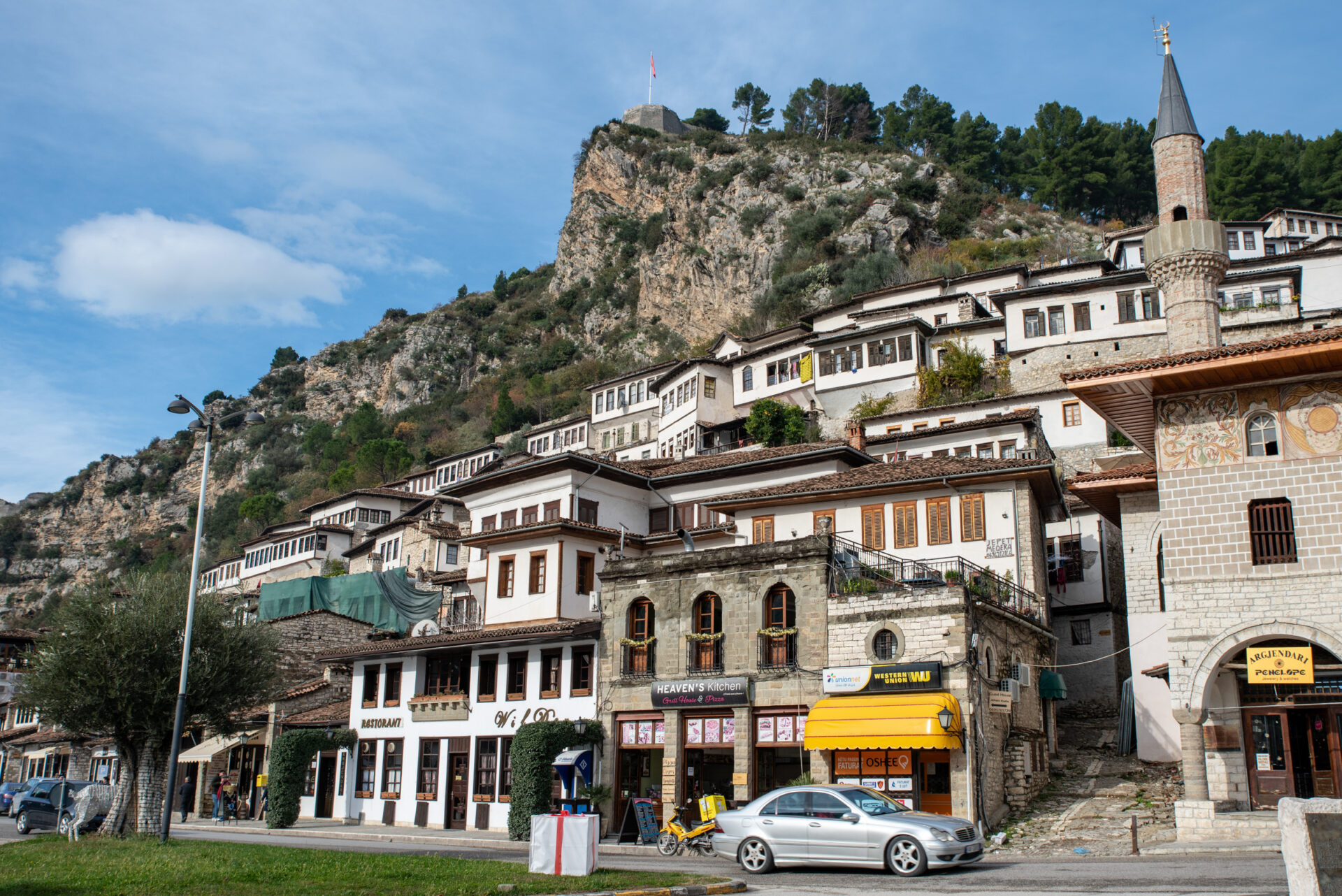 Auf zur nächsten sehenswerten Stadt: Berat, 1961 offiziell zur Museumsstadt ernannt, seit 2008 Unesco Welterbe. Wir sind gespannt. Berat, die Stadt der tausend Fenster an dem Fluss Osum, wird seinem Ruf gerecht. Ein beeindruckendes Stadtbild! Wir erklimmen zuerst die Burgfestung von Berat, Kalaja und sind beeindruckt von dem wunderschönen Blick auf die Stadt und den Fluss. Unterhalb der Burg schließt sich der Stadtteil Mangalem an, dem die Stadt den Namen „Stadt der tausend Fenster“ verdankt. Wir lassen uns treiben und genießen die schöne Atmosphäre und das geschäftige Treiben. Ein Spaziergang über die alte osmanische Steinbogenbrücke führt uns noch in das gegenüberliegende historische Viertel Gorica, das über viele Jahrhunderte nur durch eine Holzbrücke mit dem anderen Teil von Berat verbunden war.