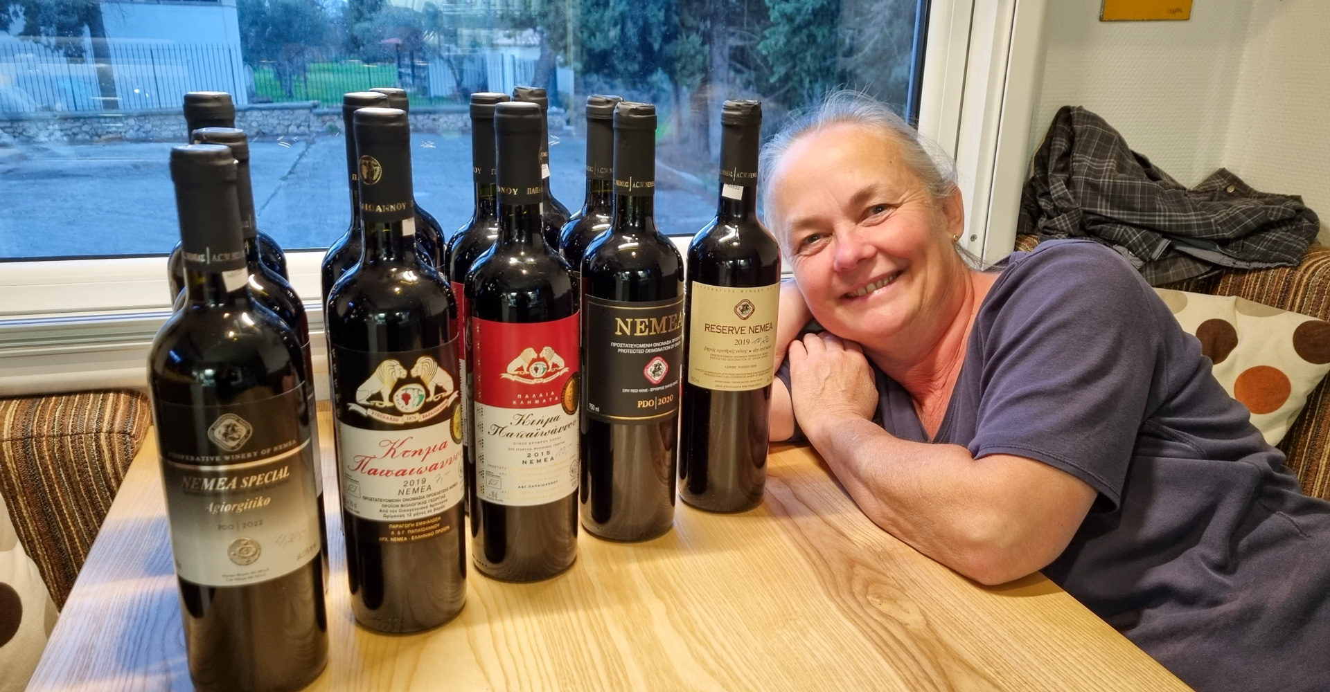 Das Wichtigste am Anfang: Auf nach Nemea, einem bekannten Weinanbaugebiet, dessen Weine sortenrein aus der griechischen Rebsorte Agiorgitiko gewonnen werden. Wir schätzen diese Weine sehr und heute freuen wir uns auf Shoppen gehen vor Ort. Wir parken bei der Ausgrabungsstätte Antikes Nemea, die wir uns morgen ansehen wollen. Um die Ecke finden wir einen kleinen Weinladen, der junge Mann heißt uns herzlich willkommen und schon geht die Verkostung los. Eine Wonne! Wir schlagen zu und füllen unsere Vorräte auf. In unserem Kleiderschrank ist immer ein Plätzchen frei für die Lagerung der edlen Tropfen.