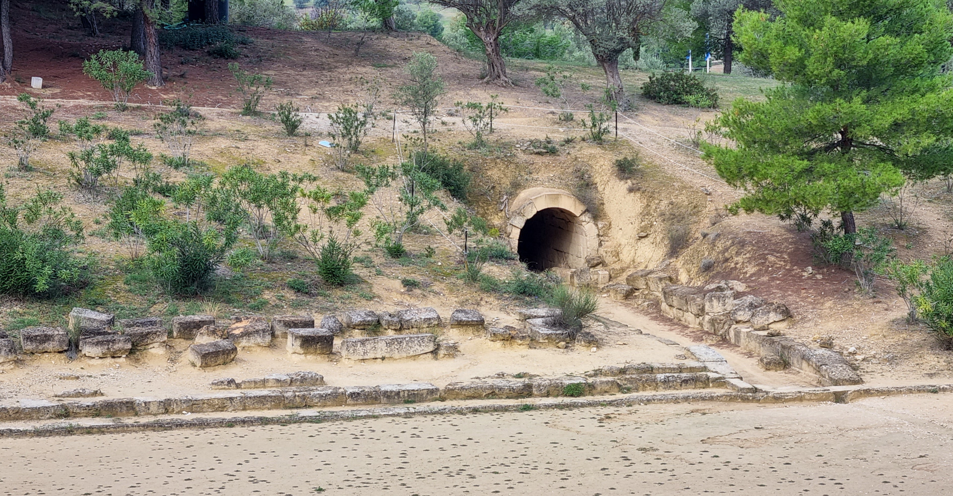 Am nächsten Tag besuchen wir die Ausgrabungsstätte. Das antike Nemea wurde ab dem 6. Jahrhundert vor Christus errichtet. Es war ein dem Zeus geweihtes Heiligtum. Hier fanden alle zwei Jahr die nemeischen Spiele statt, die Teil der panhellenischen Spiele neben Olympia, Delphi und Korinth waren. Gut erhalten sind Teile des beeindruckenden Zeustempels und das Stadion, das über einen kleinen, schmalen und gewölbten Tunnel zu erreichen ist, der den Athleten als Zugang diente. Ach ja, antike Katzen gibt es auch dort 😉.