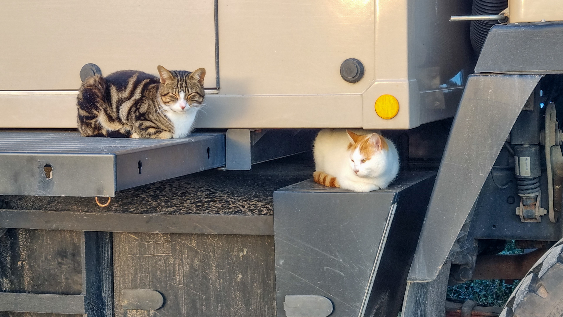 Natürlich haben wir wieder reichlich Gesellschaft für die Tage. Der LKW wirkt immer wieder magisch anziehend auf die Vierbeiner.