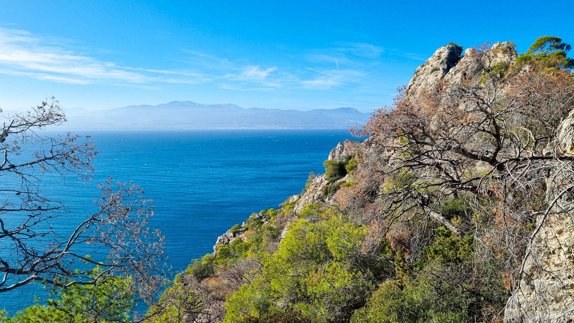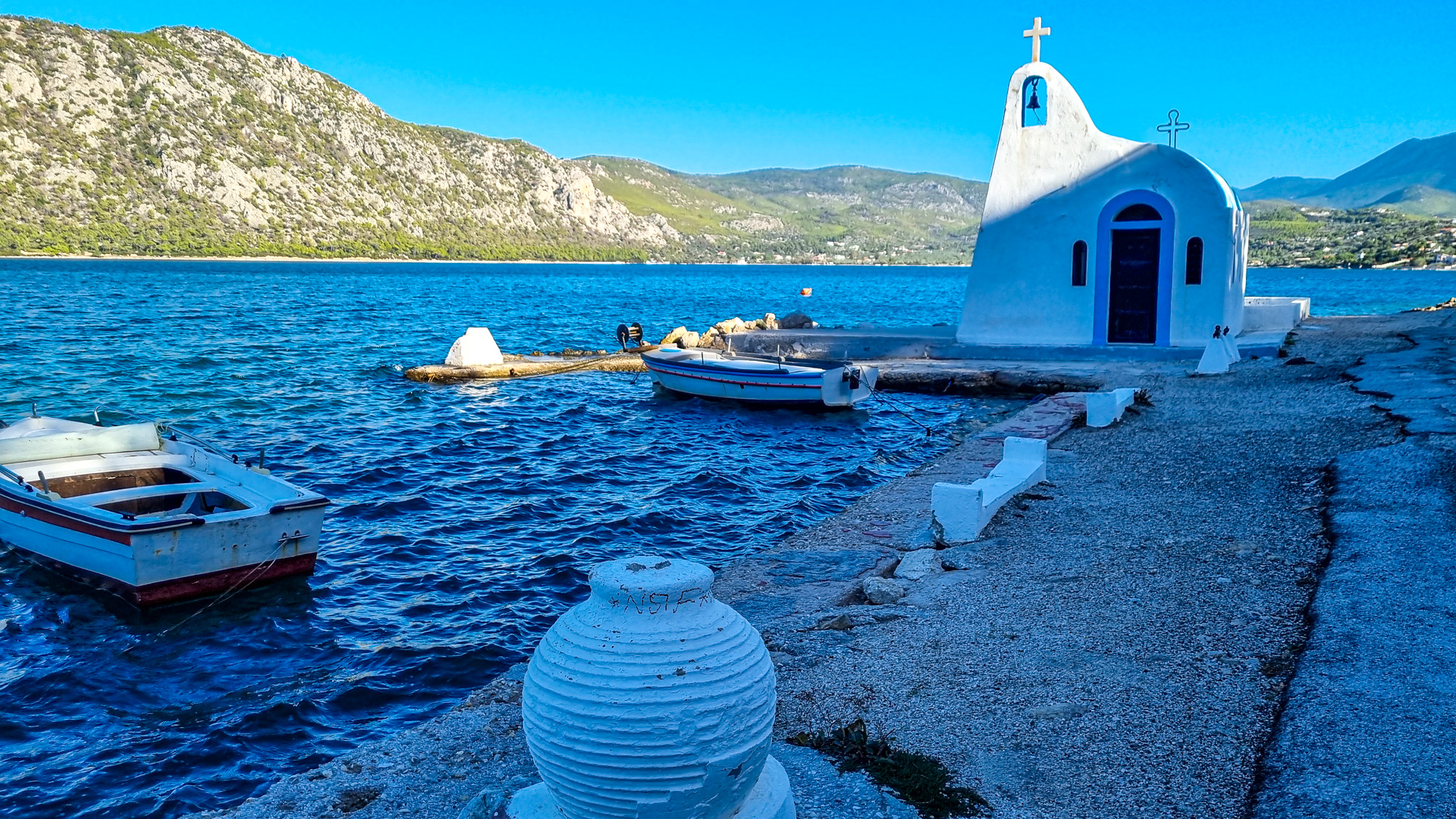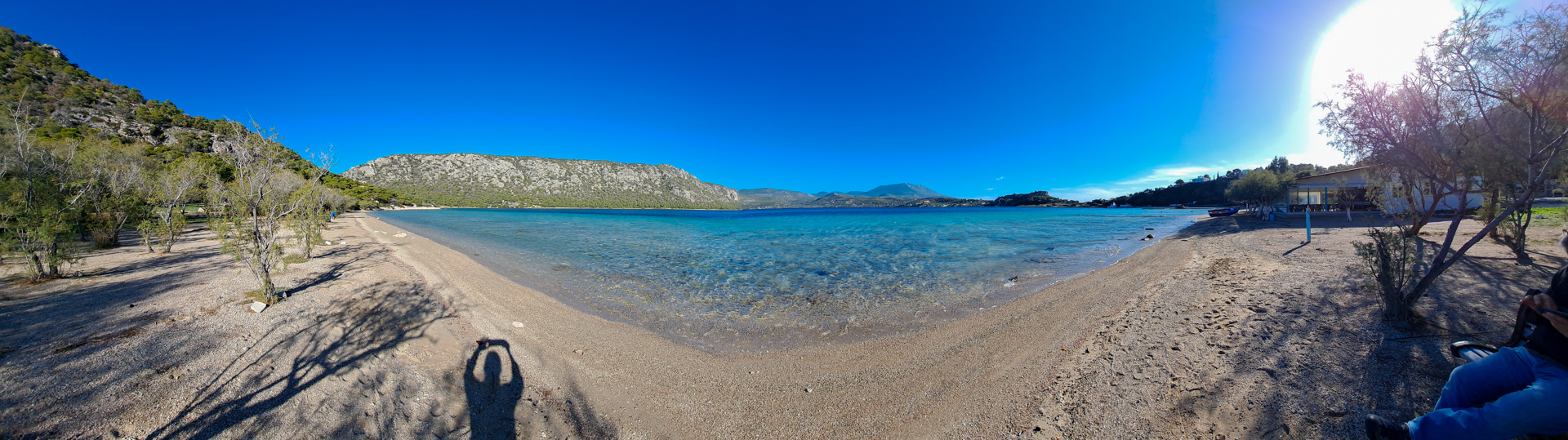 Wir fahren ein Stück zurück und verbringen die Weihnachtstage entspannt am Ireon See, direkt am Kanal zum Golf von Korinth. Eigentlich handelt es sich wegen des Kanals um keinen See, sondern um eine Lagune mit sehr salzigem Wasser. Wir machen bei strahlendem Sonnenschein eine kleine Wanderung Richtung Kap und genießen die schöne Aussicht.