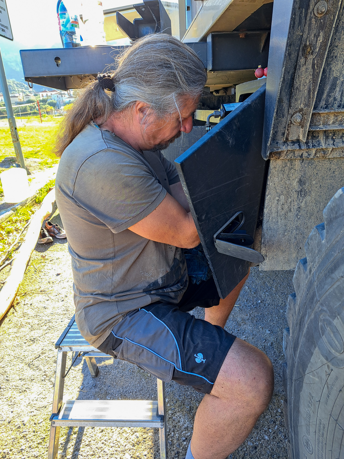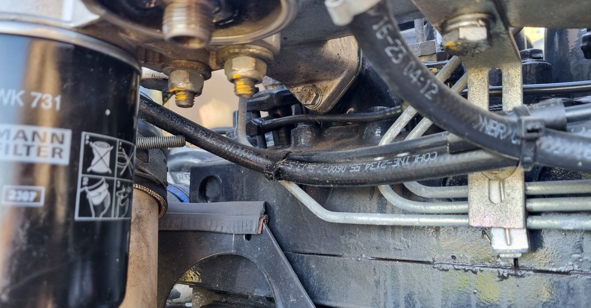 Wir tauschen die Dieselfilter und reinigen den Separ Filter. Wir überprüfen alle Verbindungen. Aber wir bringen den LKW weiterhin nicht zum Laufen.