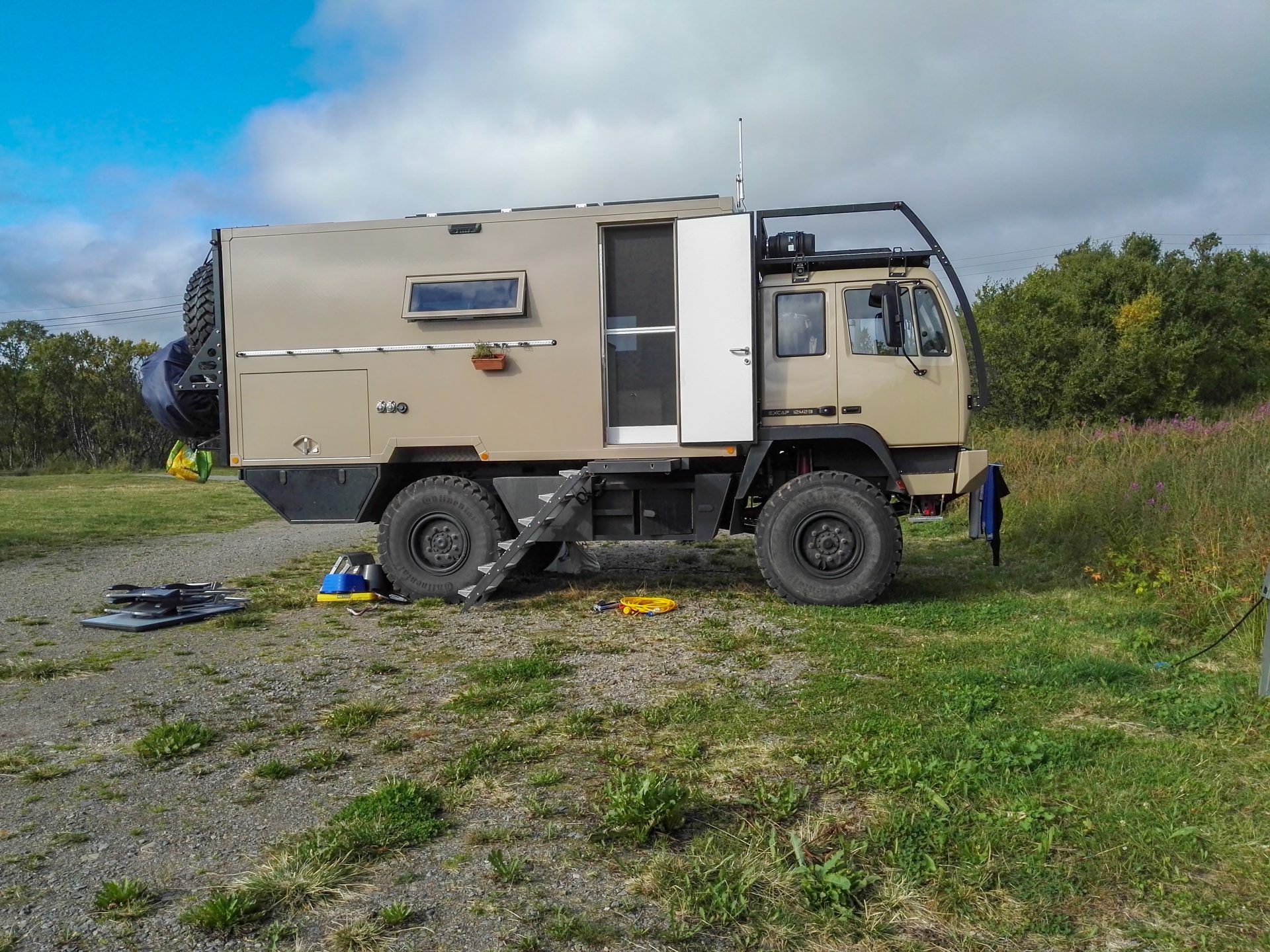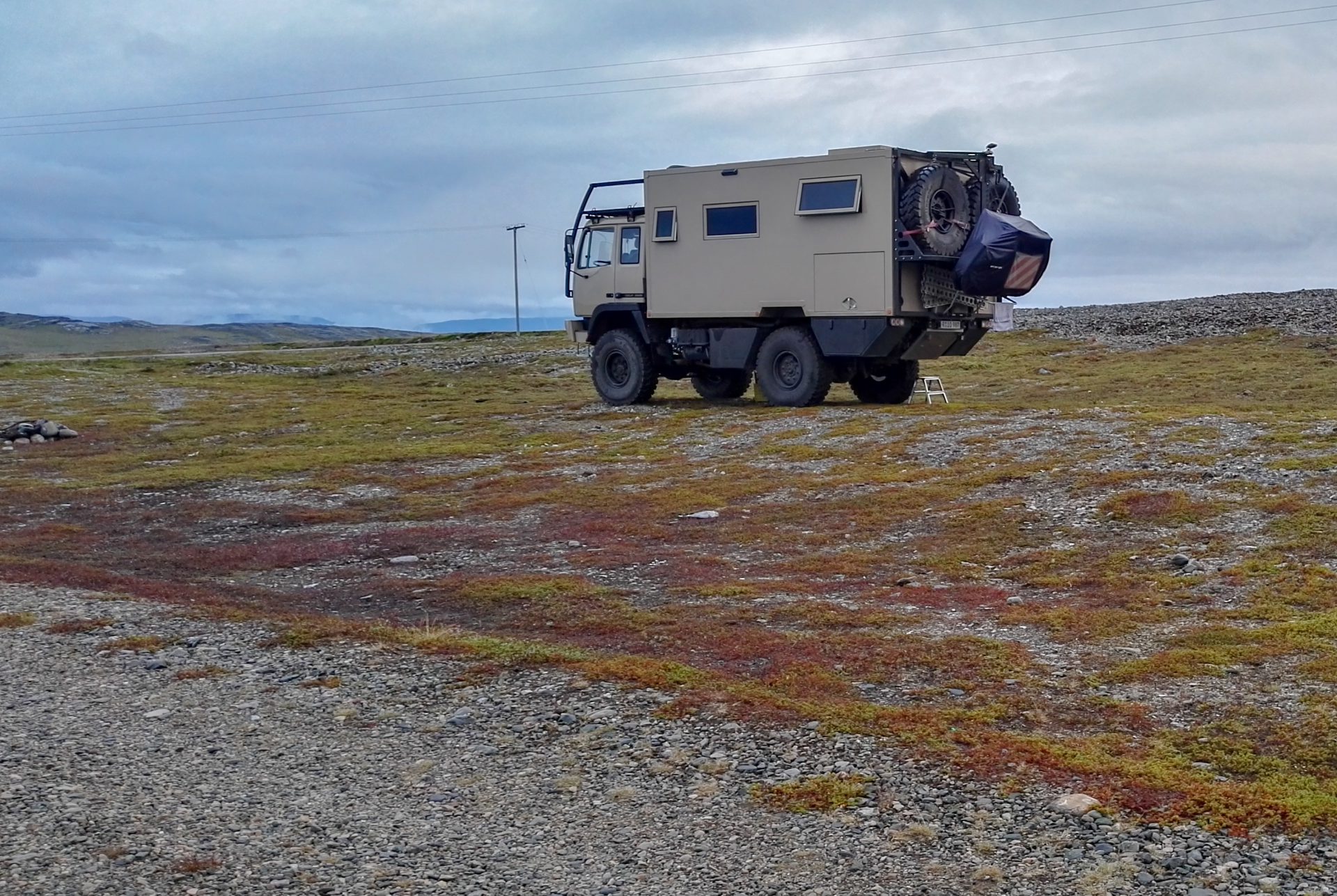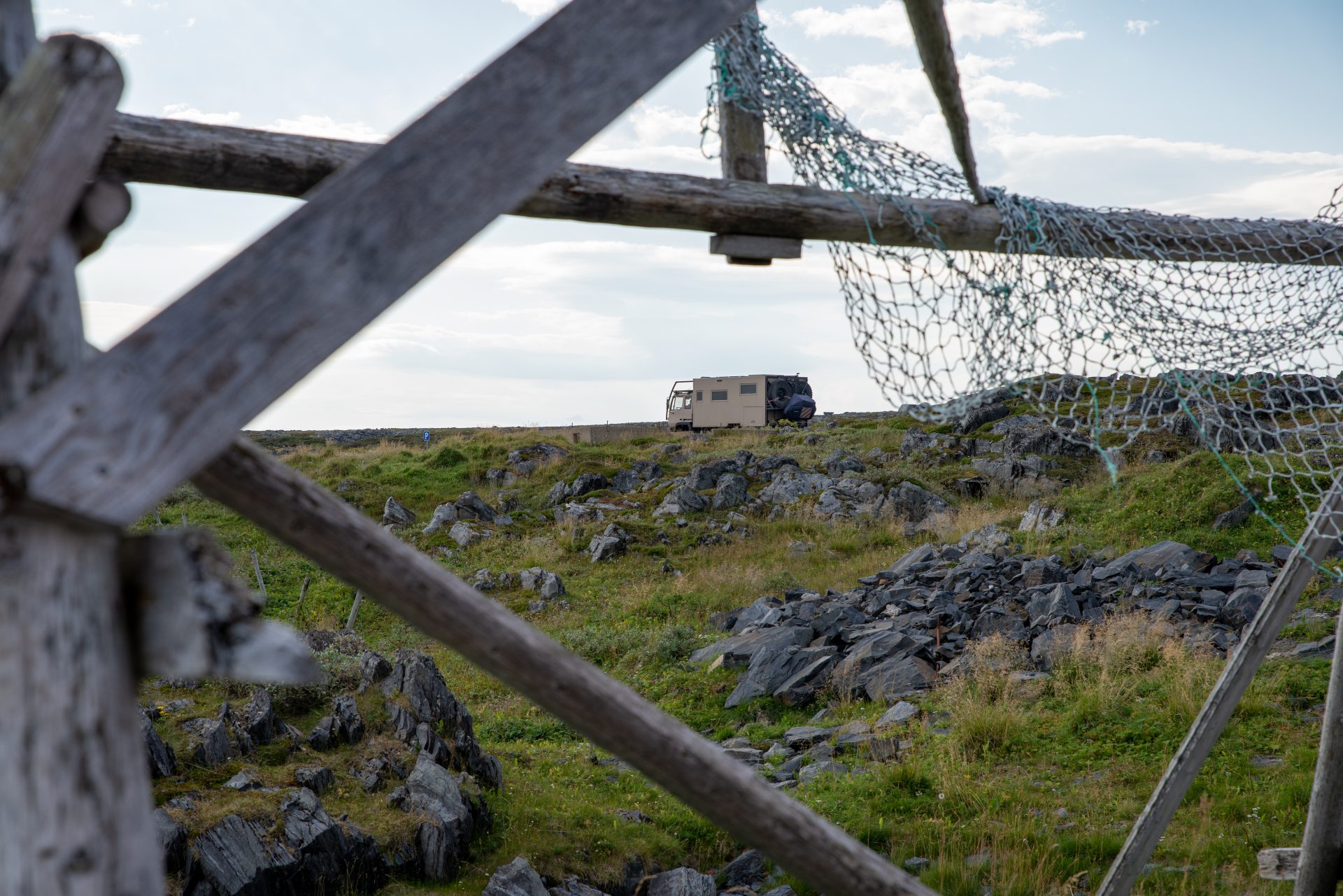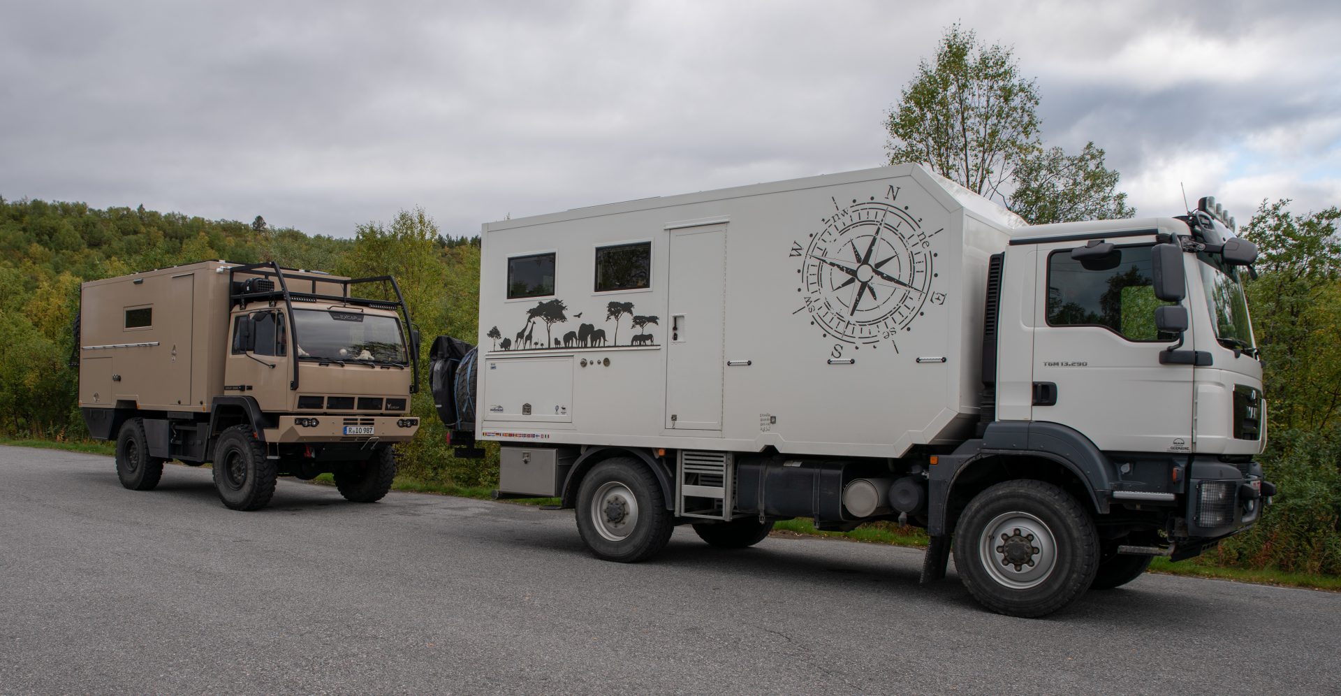 In Lebesby machen wir eine kurze Pause und lernen Max und Kathi kennen, begleitet von 2 süßen Hunden. Die zwei sind mit einem ehemaligen Schweizer Militärfahrzeug unterwegs und kommen gerade aus Russland. Sie sind die Runde, die wir planen, also von Murmansk Richtung Sankt Petersburg zu fahren, von Süden nach Norden gefahren. Bisher haben wir noch niemanden getroffen, der aus Russland kommt, die meisten fahren über Finnland, und so freuen wir uns sehr über die vielen wertvollen Tipps und sind nun wirklich auf Russland gespannt.