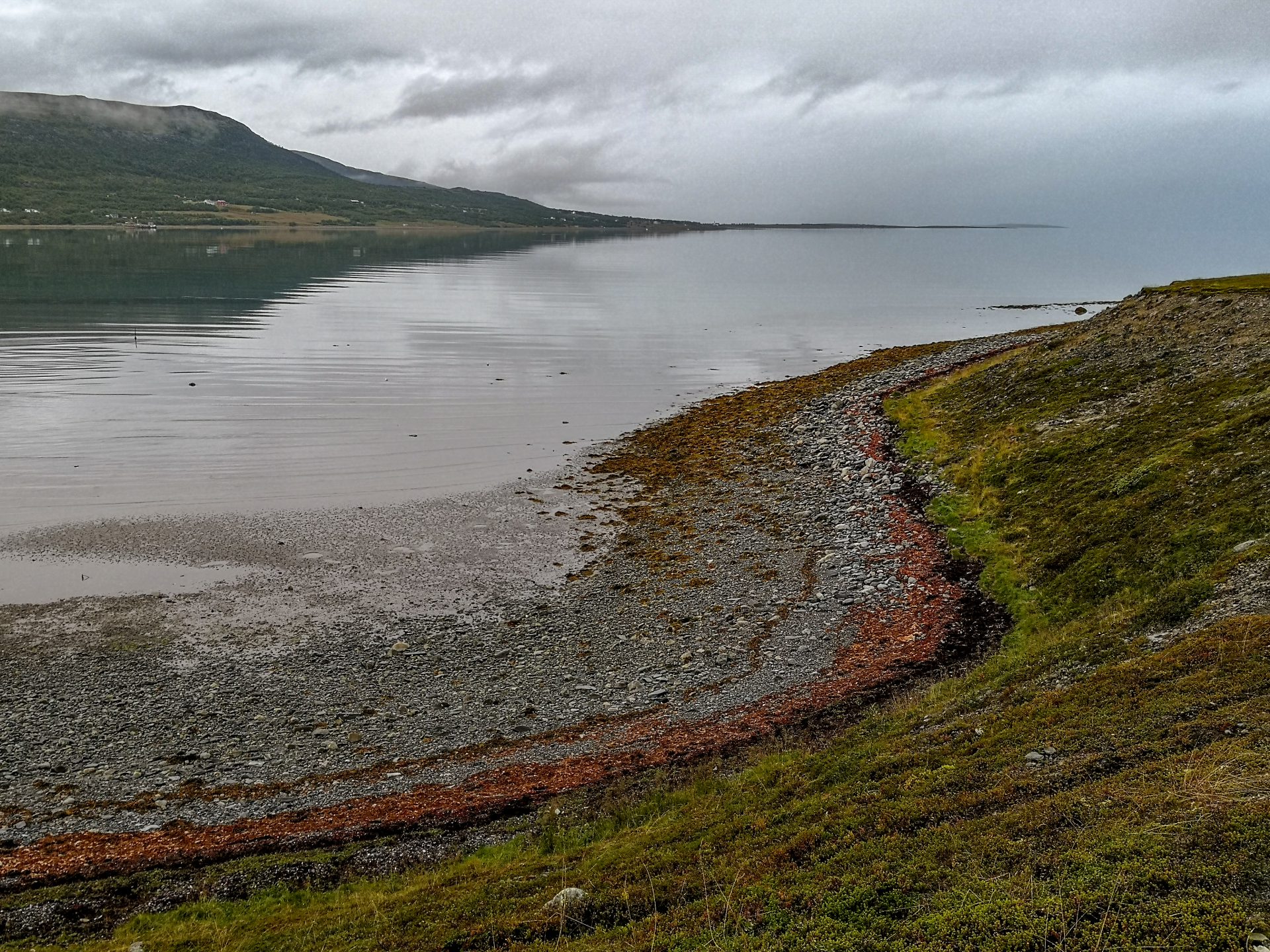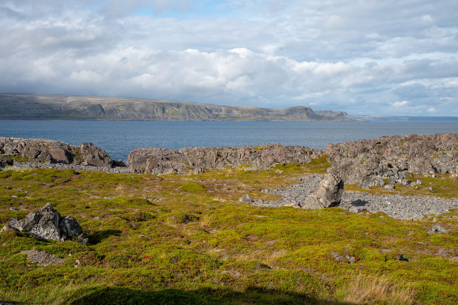 Wir beschließen, auf die andere Seite der Halbinsel zu fahren, nach Skjanes und genießen auf der Fahrt dorthin wieder eine wundervolle Landschaft. In Skjanes finden wir einen ruhigen Platz hinter der Kirche und machen einen schönen Spaziergang am Meer.