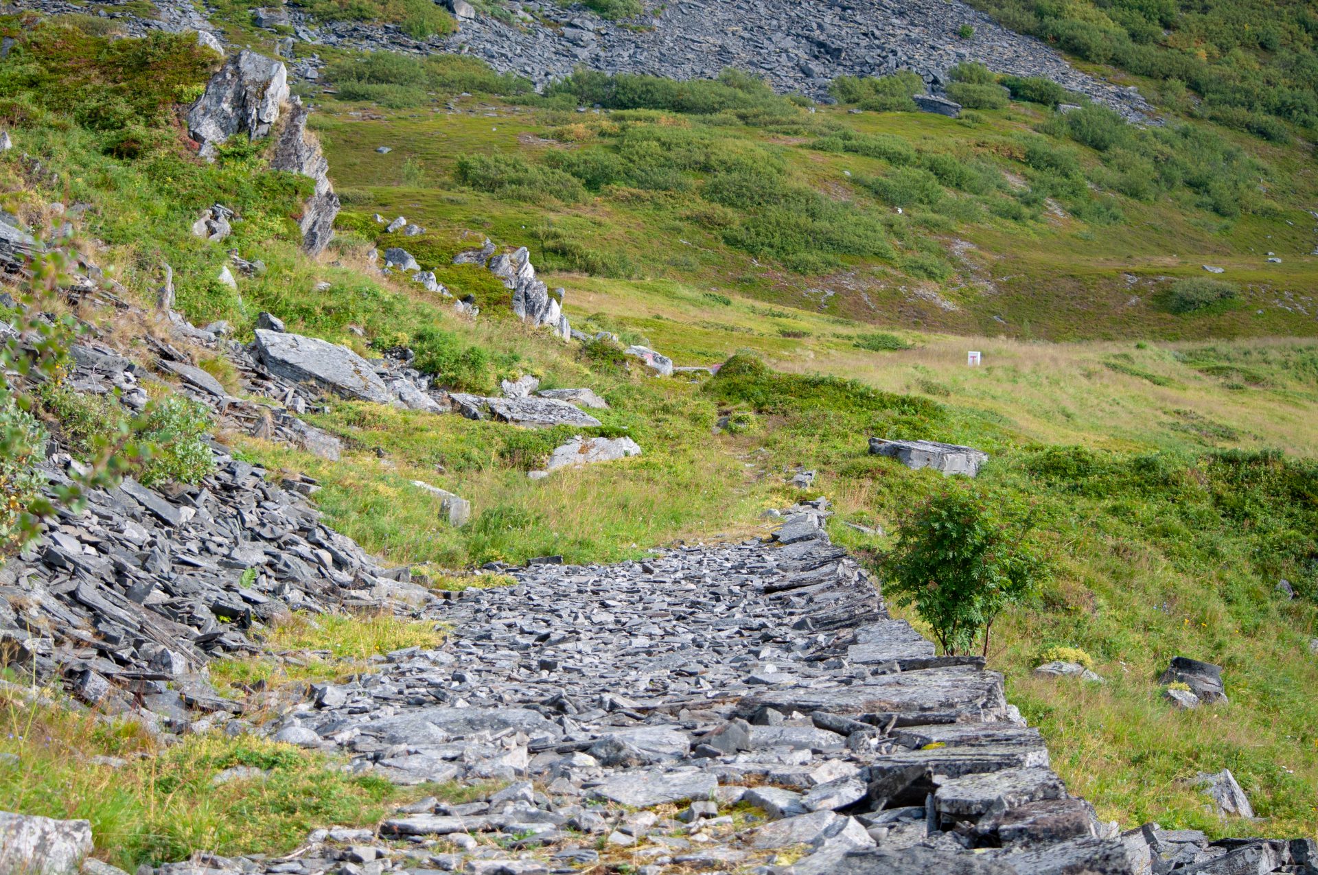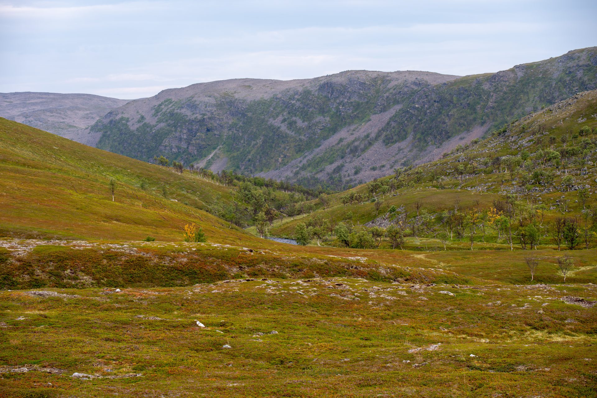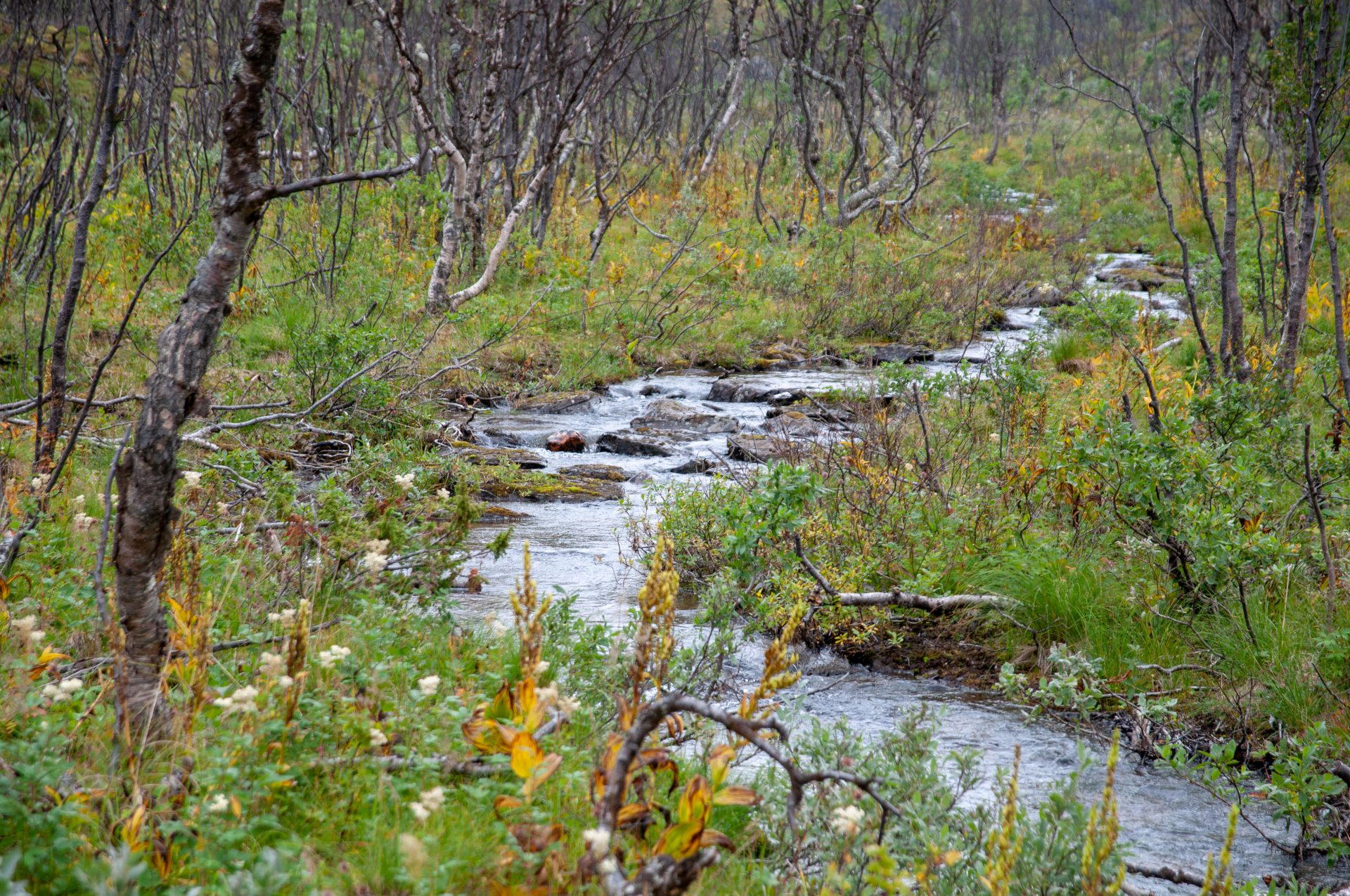 Wer lauter schreit, gewinnt, also lassen wir das Nordkapp links liegen und nehmen die sogenannte Arcticroute. Auf dem Weg dorthin, noch auf der E6 halten wir am Stubbersdalen Nationalpark und machen einen wunderschönen Spaziergang. Zwischenzeitlich scheint sogar die Sonne wieder! Traumhaft!