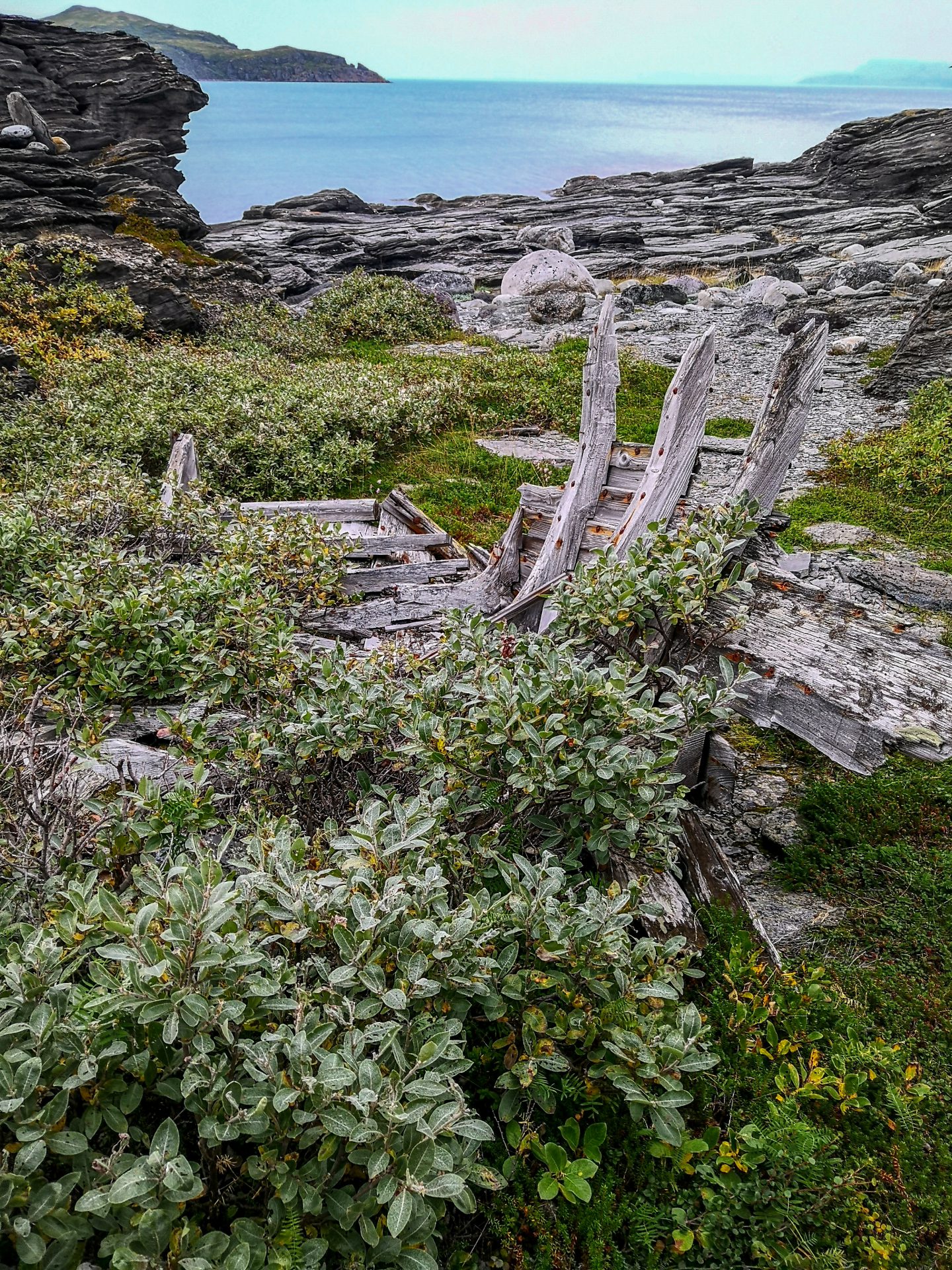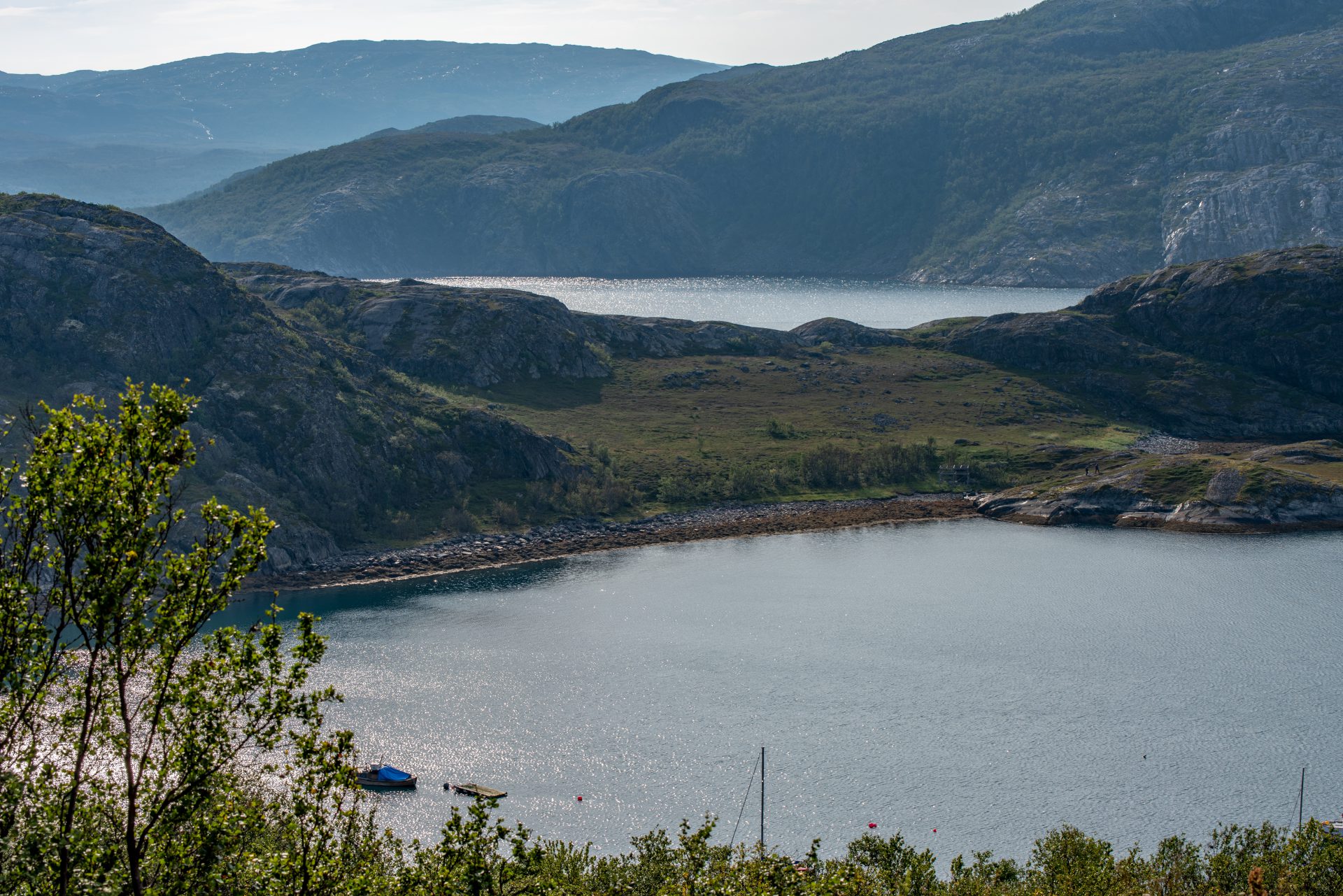Aber jetzt genießen wir erst mal die wunderschöne Halbinsel. Auf dem Langfjorddalen übernachten wir auf einem Parkplatz, machen am nächsten Morgen noch einen kleinen Spaziergang und finden endlich die berühmten Moltebeeren. Wie uns ein freundlicher Norweger erklärte, kann man daraus so ziemlich alles machen, insbesondere Marmelade, sie sind sehr gesund und helfen bei so einigen Wehwehchen. Obwohl ich kein Freund von Beeren bin, diese sind tatsächlich sehr lecker und wunderbar süß. Leider ist die Moltebeerenzeit schon fast vorbei und es bleibt bei dieser einen Verkostung.