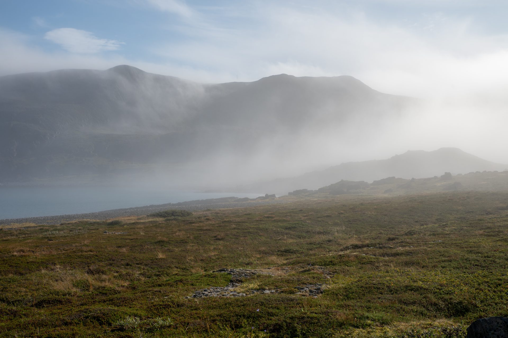 Am nächsten Morgen ist es wieder regnerisch und sehr neblig. Man sieht kaum einen Meter weit. Jetzt aber die Frage: Nordkapp oder nicht? Die eine Seele in unserer Brust raunt: Aber natürlich! Wenn Du schon mal da bist, raus ans Nordkapp, hübsches Foto und ein Post auf Instagram oder wo auch immer. Die zweite Seele ach in unserer Brust schreit: Nein, bist Du wahnsinnig! Erinnere Dich an den Touristentrubel am Geirangerfjord! (Da kann zwar der arme Fjord nichts dafür, der war ja recht hübsch, soweit man ihn vor lauter Autos, Wohnmobilen und Menschen gesehen hat.)
