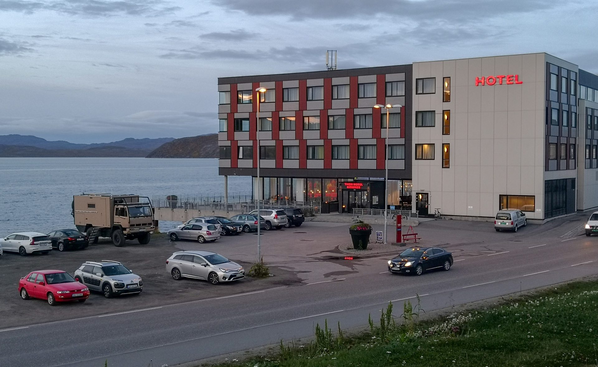 Am Nachmittag wollen wir uns gemütlich einrichten, da merken wir, dass wir zu wenig Strom haben. Mit den Solarpanels am Dach und dem Ladewandler, der während der Fahrt die Lithium Ionen Batterie lädt, ist Strom an und für sich kein Problem. Aber natürlich nur, wenn alles funktioniert. Zuerst vermuten wir, dass die Sonne nicht stark genug ist, also fahren wir einfach ein Stück zurück und suchen uns auf dem Weg einen Schlafplatz für die Nacht. Weit gefehlt. Der Ladewandler funktioniert nicht, so unsere nächste Überlegung. Damit haben wir ein Problem, da der Strom nicht mehr über Nacht reicht. Campingplätze gibt es auf der Halbinsel nicht. Der nächste Campingplatz ist in Ifjord, 100 km weg. Frustriert nehmen wir das in Kauf und fahren nach Ifjord. Der Campingplatz erweist sich als hässlich und teuer. Aber wir haben Strom und glücklicherweise noch ein bisschen Wein an Bord.