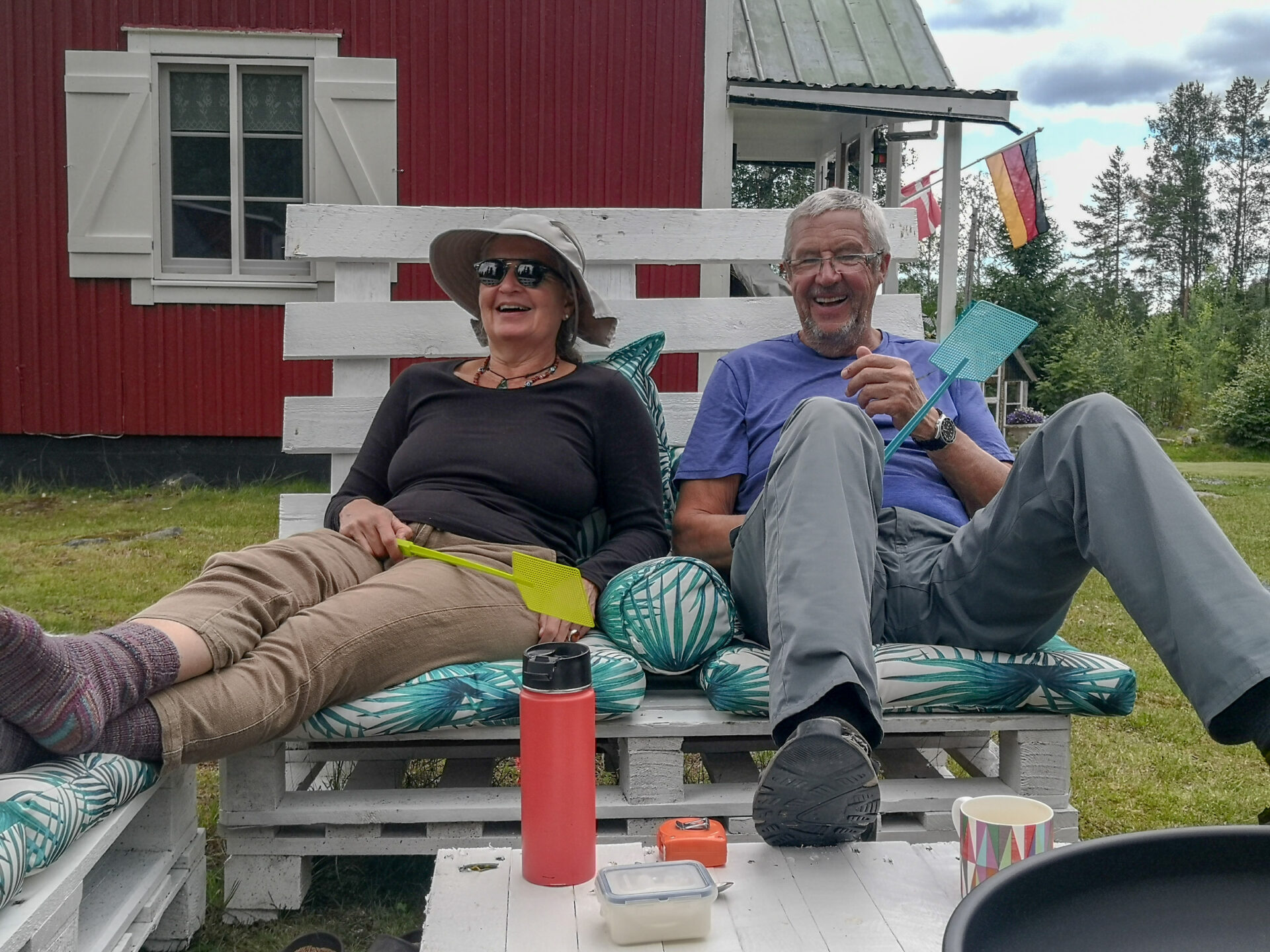 Wir verbringen vier schöne und entspannte Tage bei Ulf und Michelle und wollen dann eigentlich weiter nach Norwegen. Doch kurz oberhalb des Polarkreises müssen wir einsehen, dass sich unser Plan nicht verwirklichen lässt. Die Grenzen nach Norwegen und auch nach Finnland sind zu. Wir fahren noch bis in den Stora Sjöfallets Nationalpark, auch in der Hoffnung, uns so weit oben ein wenig von den Mücken erholen zu können. Aber auch daraus wird nichts, im Gegenteil, es wird immer schlimmer. So fahren wir endgültig zurück an die Ostsee und die Küste entlang nach Süden. Wir finden mehrere wunderschöne Plätze an der Ostsee, vor allem an der Höga Kusten gefällt es uns sehr gut, und endlich sind wir auch die Mücken los.