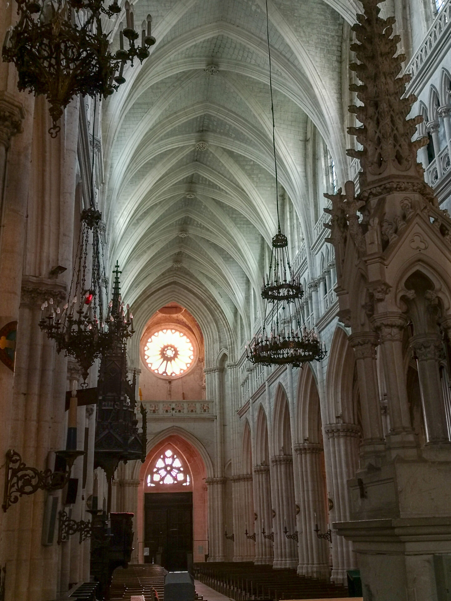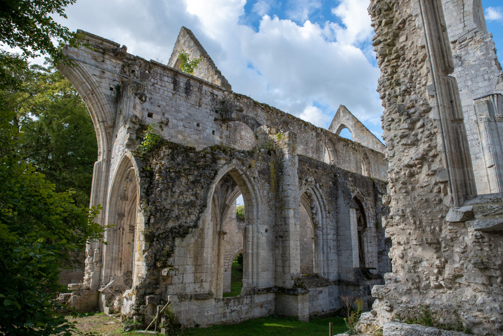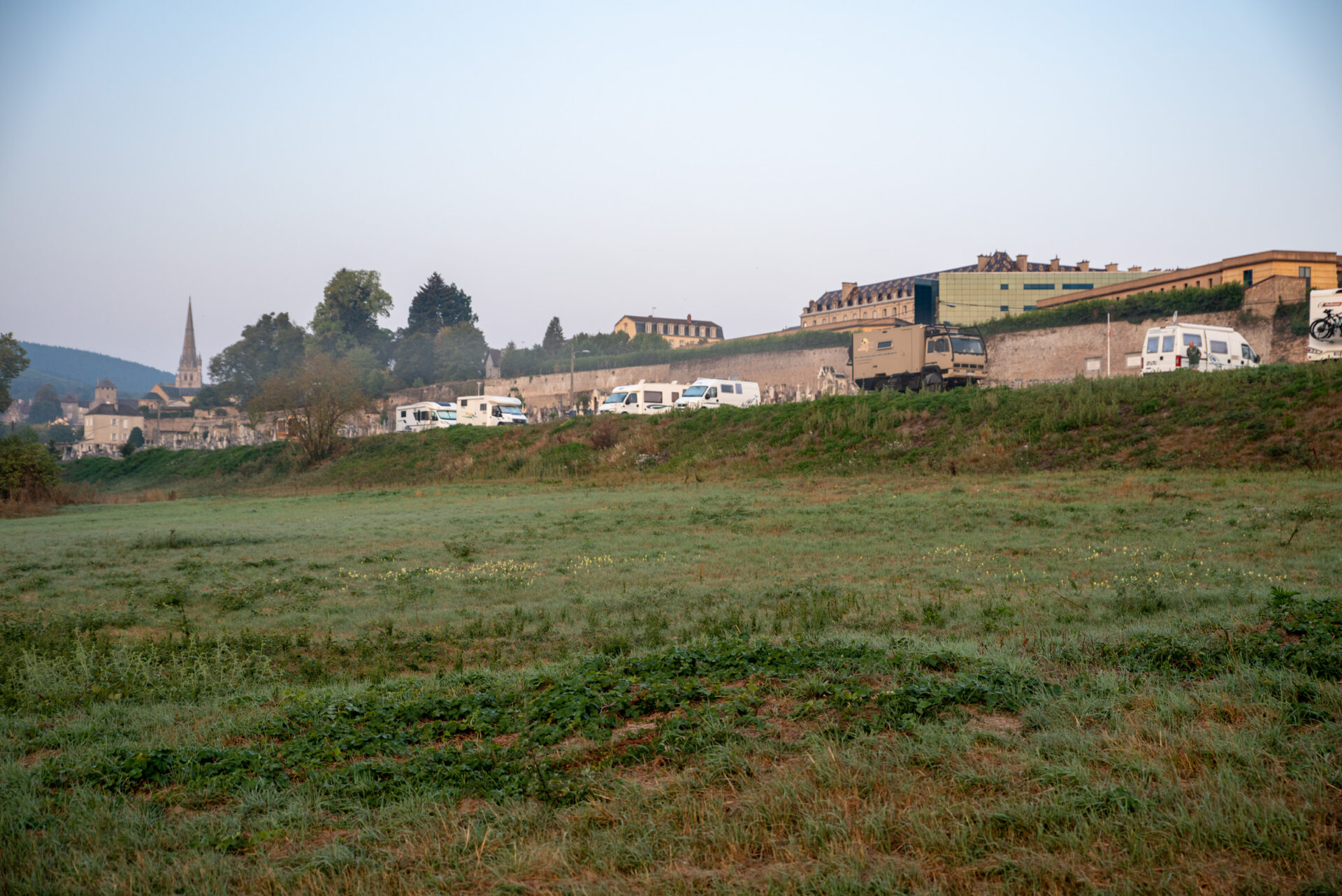 Die ersten Tage genießen wir das Leben in Frankreich, durchqueren die Champagne, besuchen Verdun und Compiègne und, schon in der Normandie, die Abtei von Jumièges, deren Ruinen uns schwer beeindrucken. Doch bereits hier werden wir mit einem Problem konfrontiert, das wir so noch nirgends hatten: Oskar ist zu groß, zu schwer, zu lang, zu hoch… was auch immer. Beschränkungen an fast allen Dorfeinfahrten, ganze Innenstädte für uns gesperrt, Höhenbeschränkungen auf Parkplätzen und an Supermärkten. So macht das keinen Spaß. Je näher wir dem Mont-St.-Michel kommen, desto klarer wird, woher die Beschränkungswut kommt. Wohnmobile überall. Und sie parken offensichtlich alles zu, das nicht explizit gesperrt ist.