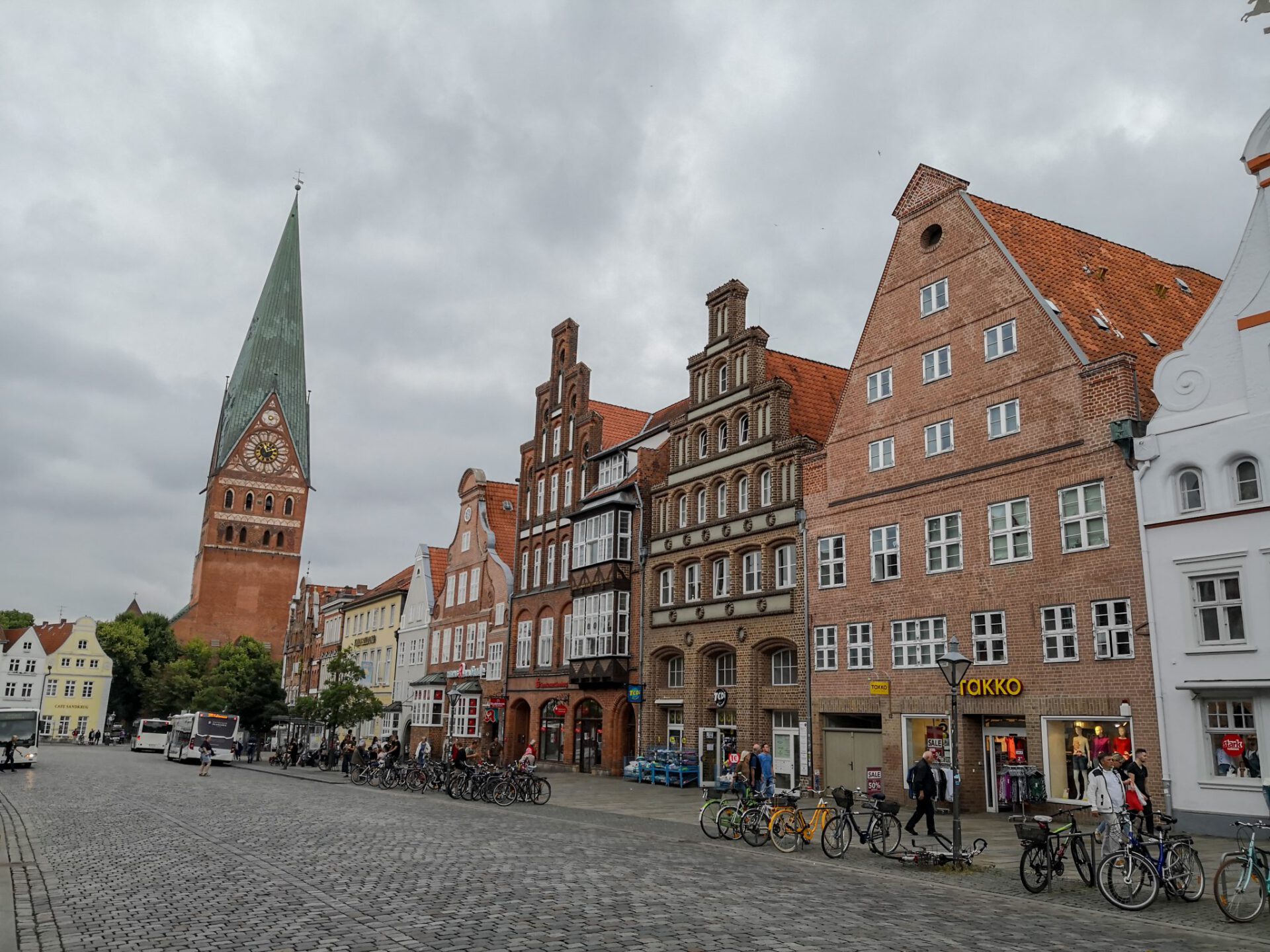 Von Wolfenbüttel aus müssen wir nun noch nach Kiebitzreihe, um dort die Schneeketten für unseren Oskar abzuholen, die ich über das Internet erstanden habe. Nachdem uns die gut 260 km aber für einen Tag zu weit sind und wir auch nochmal waschen müssen, legen wir einen Tag Zwischenstopp in Lüneburg auf dem Campingplatz ein. Der schön gelegen Platz befindet sich etwas außerhalb und so kommen zum ersten Mal unsere Räder zum Einsatz, um Lüneburg zu erkunden.