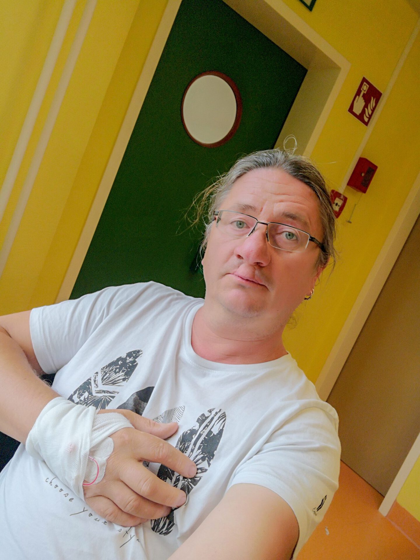 Die nächsten Minuten auf dem Netto-Parkplatz erlebe ich wie im Fieber, aber Anja findet glücklicherweise ein freundliches Ehepaar, das uns anbietet, uns zum Krankenhaus zu fahren. Mein Kreislauf geht inzwischen deutlich in den Keller und während der rasanten Fahrt habe ich immer wieder das Gefühl, ohnmächtig zu werden. Vielen Dank hier nochmal an unsere unbekannten Helfer! Beim Krankenhaus angekommen führt mich Anja zur Notaufnahme, wo ich sofort in ein Behandlungszimmer verlegt und intravenös mit Medikamenten versorgt werde.