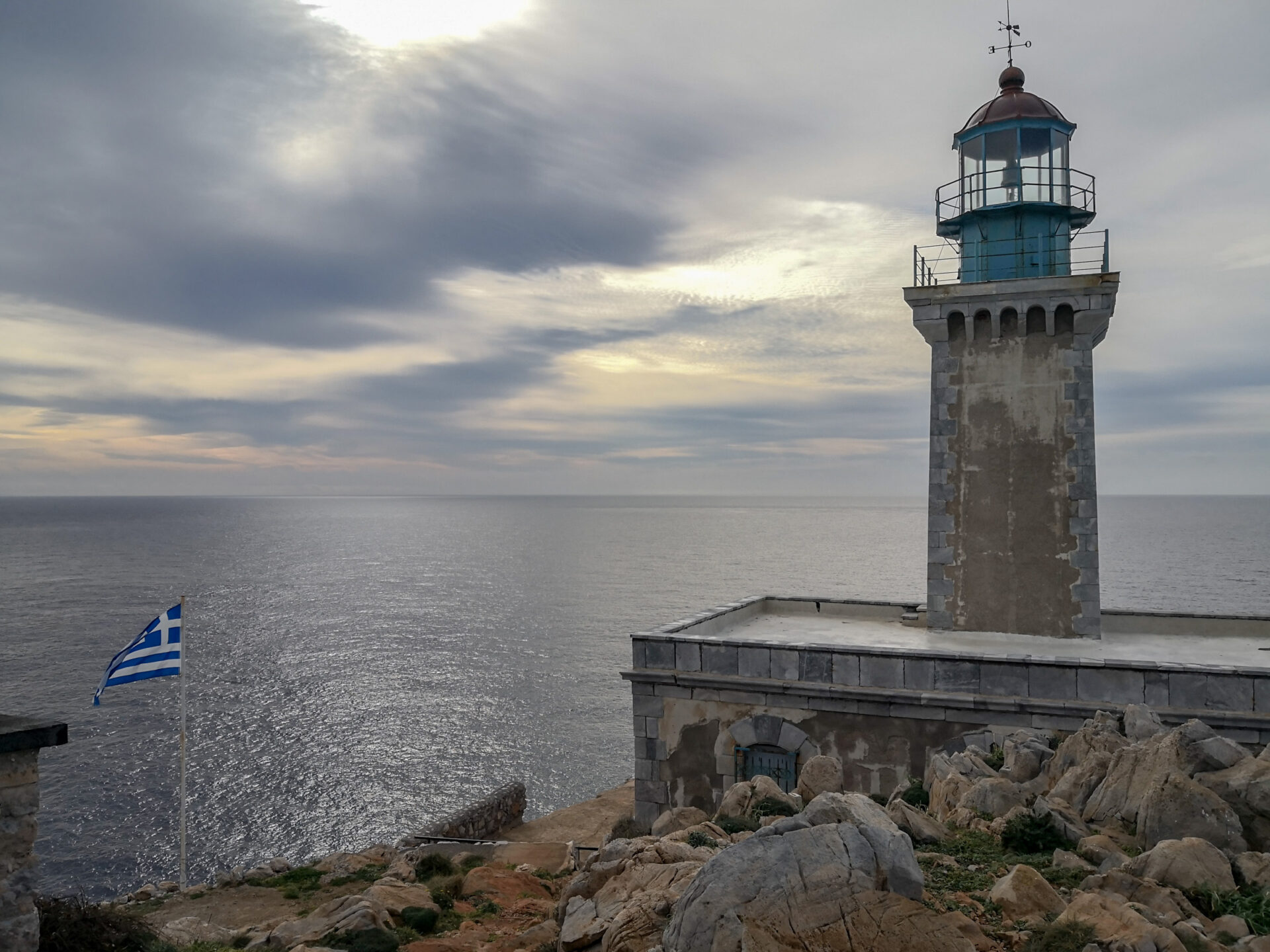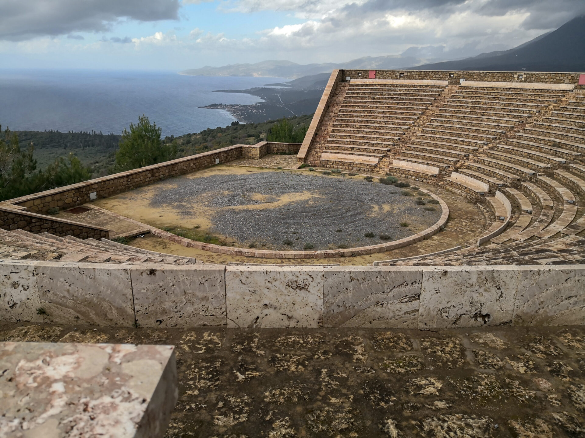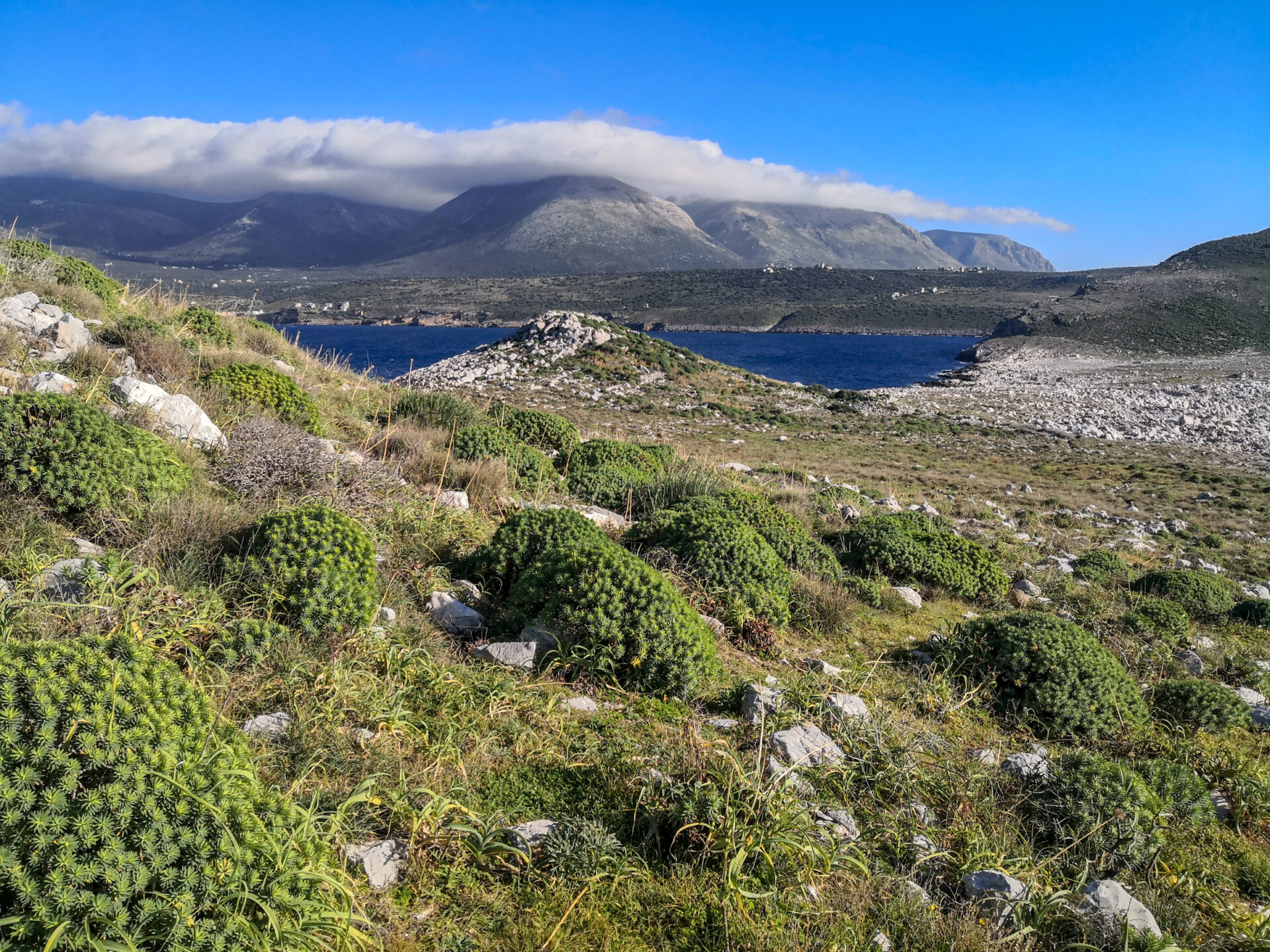 Nächster Halt ist das Kap Tenaro, der südlichste Punkt des griechischen Festlandes und der zweitsüdlichste Europas. Wir übernachten am Parkplatz und wandern am nächsten Morgen zum Kap mit seinem Leuchtturm hinaus. Auf dem Weg passieren wir die Reste einer römischen Villa mit gut erhaltenem Bodenmosaik.