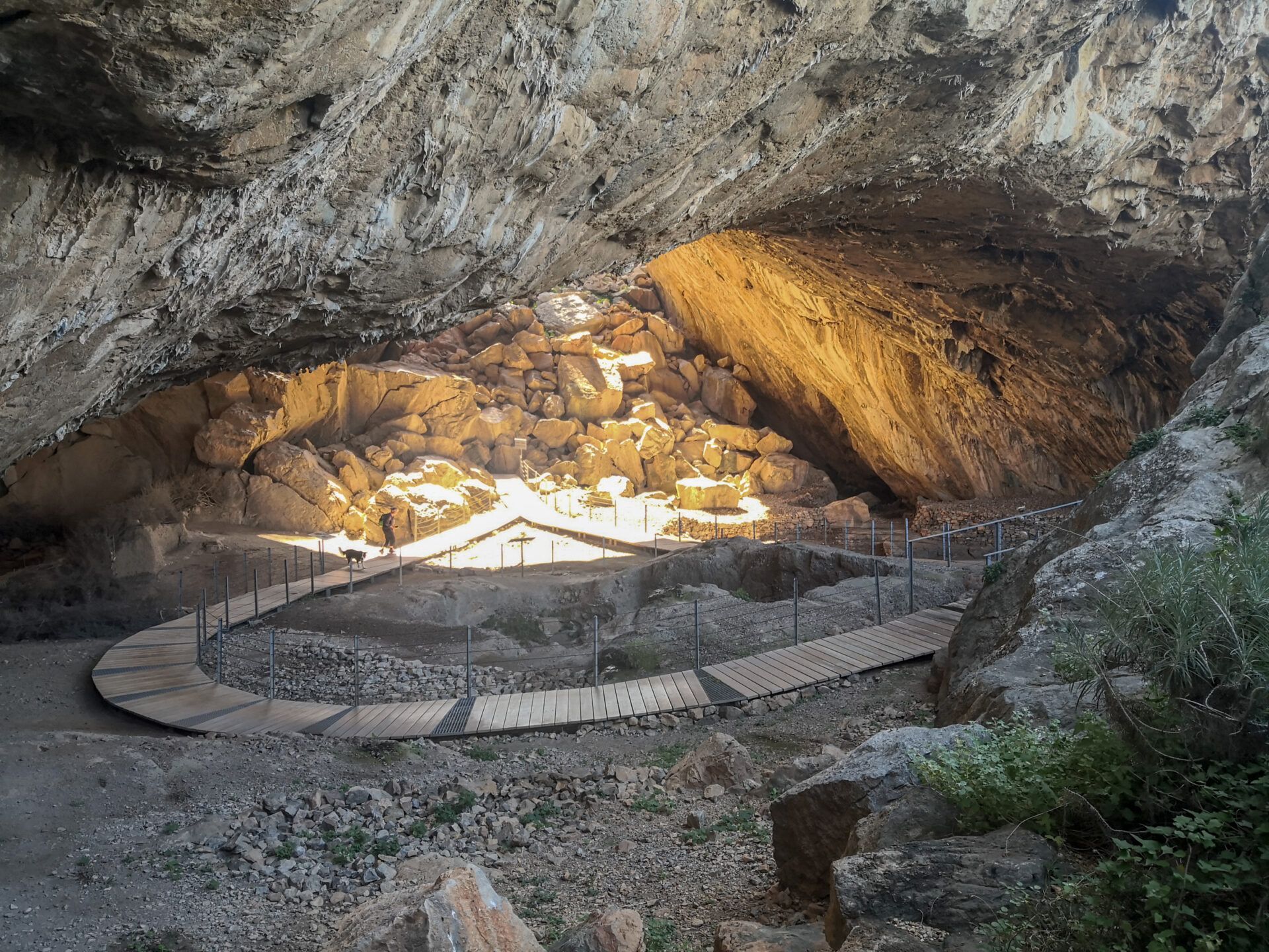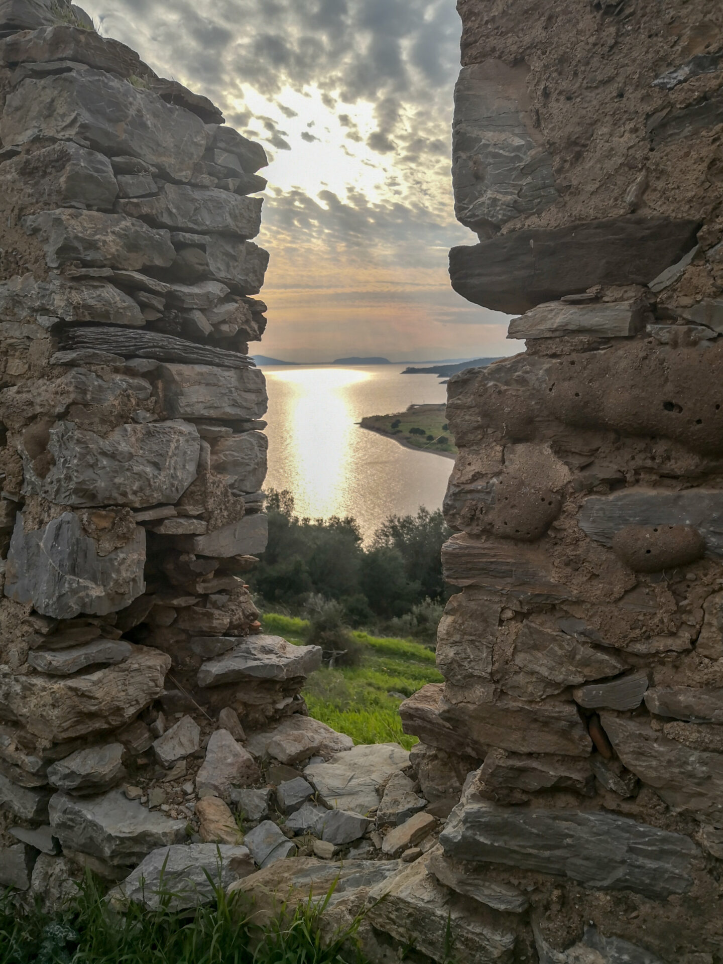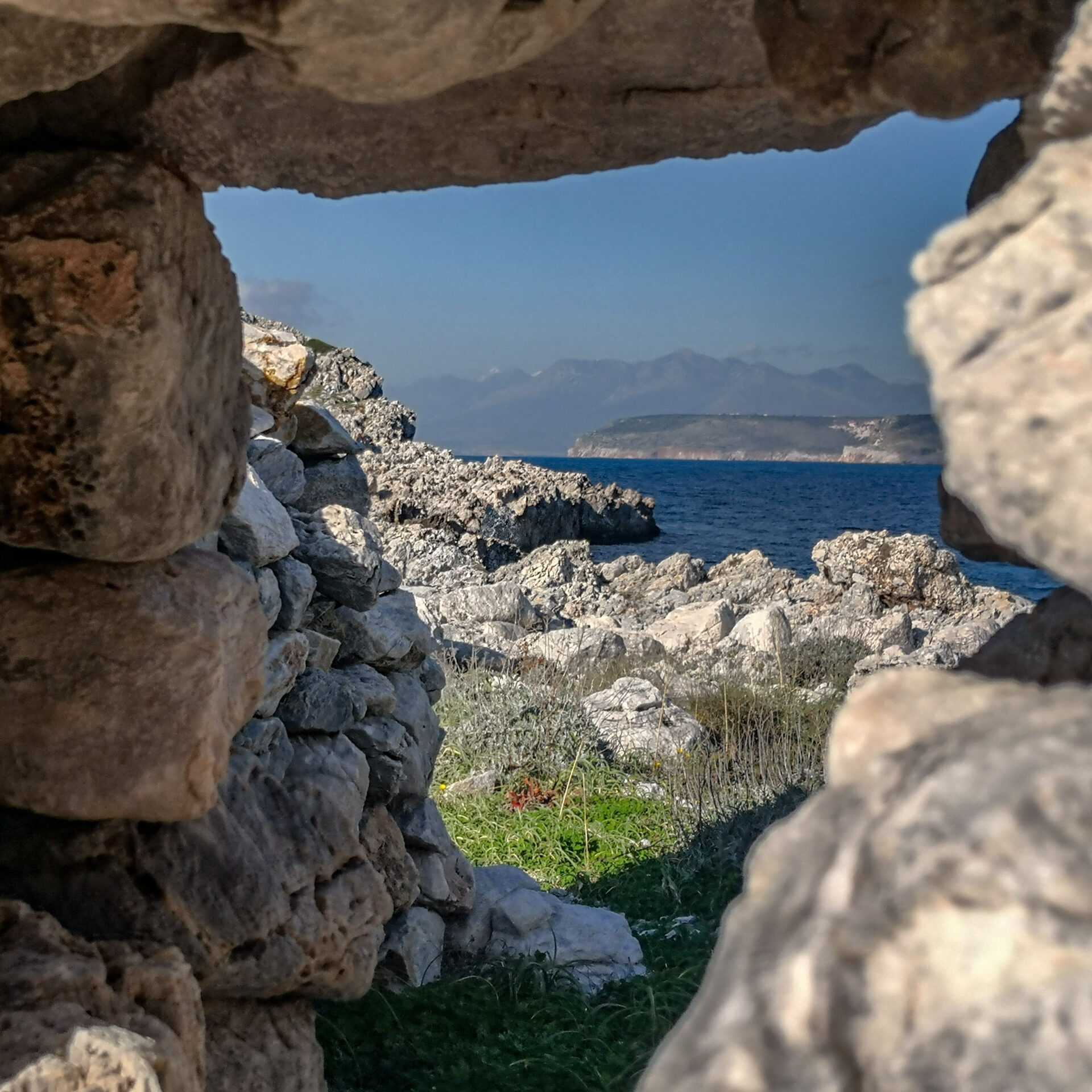 Nächster Halt ist das Kap Tenaro, der südlichste Punkt des griechischen Festlandes und der zweitsüdlichste Europas. Wir übernachten am Parkplatz und wandern am nächsten Morgen zum Kap mit seinem Leuchtturm hinaus. Auf dem Weg passieren wir die Reste einer römischen Villa mit gut erhaltenem Bodenmosaik.