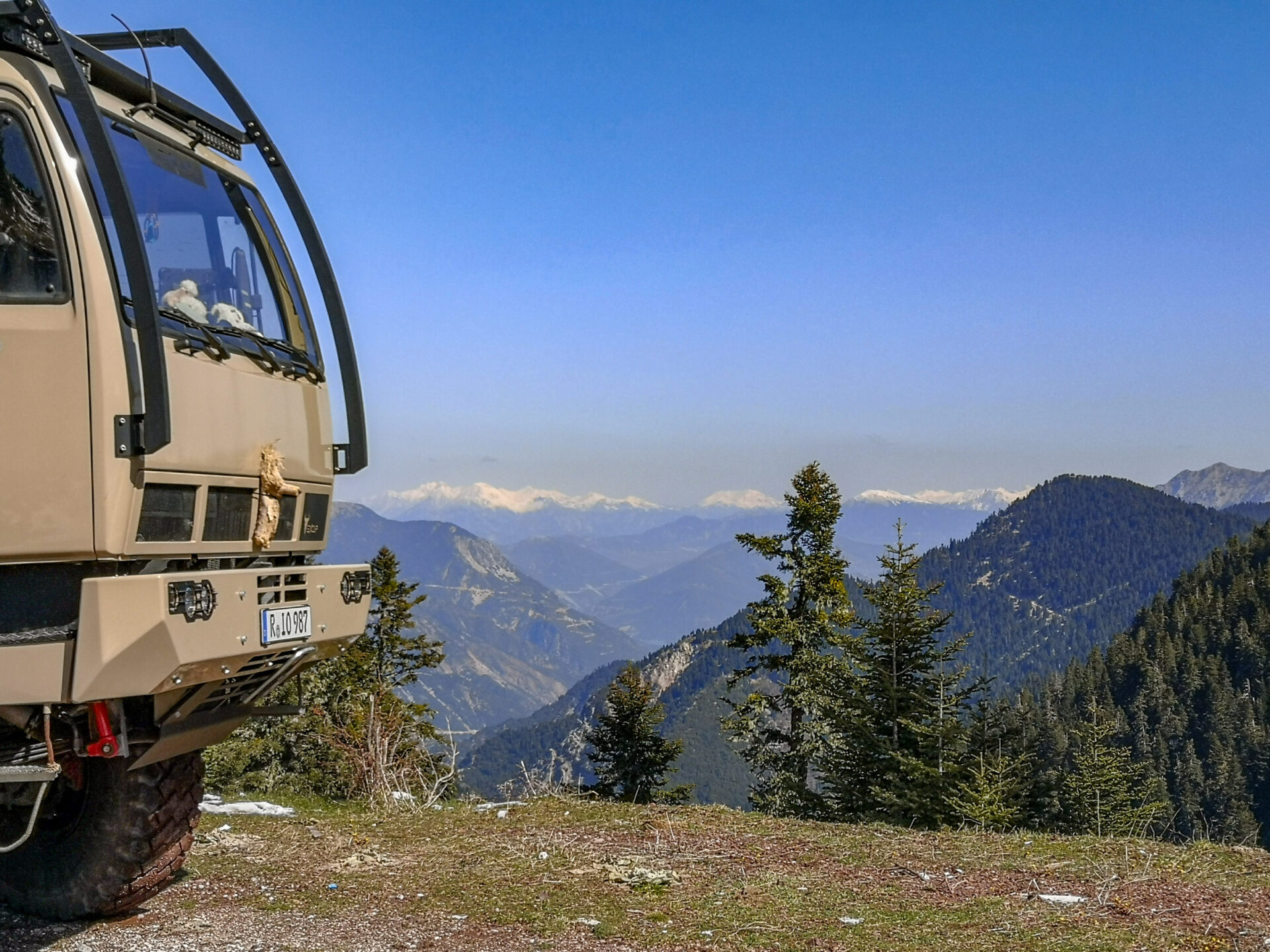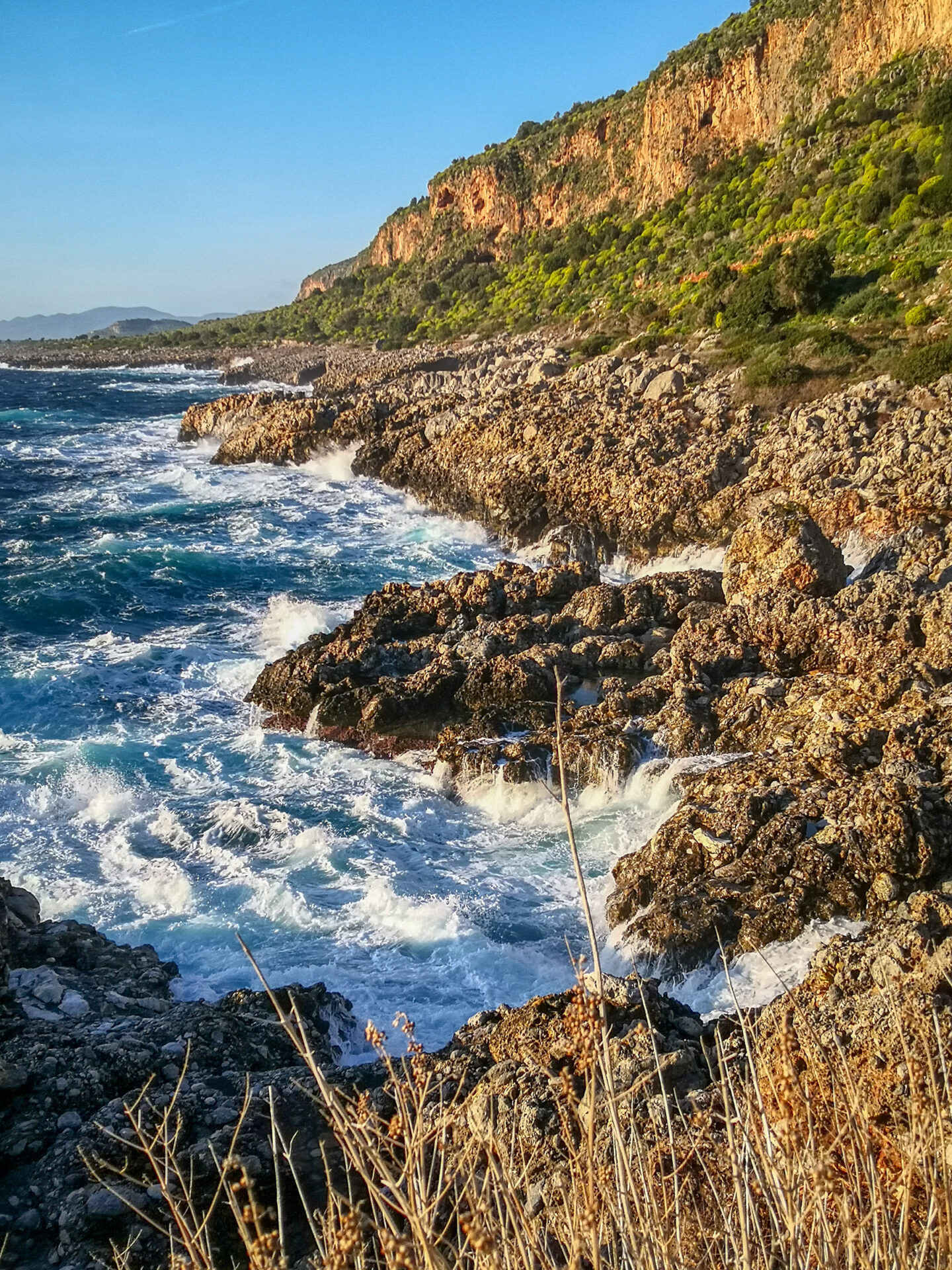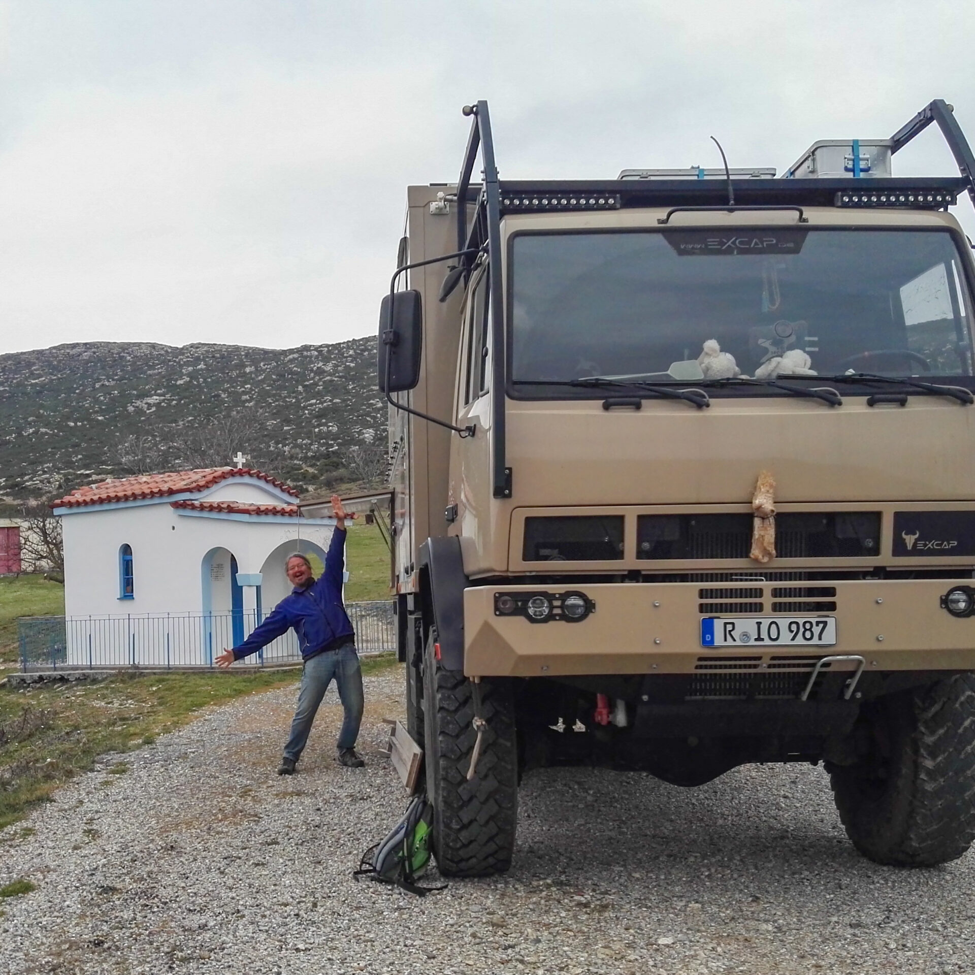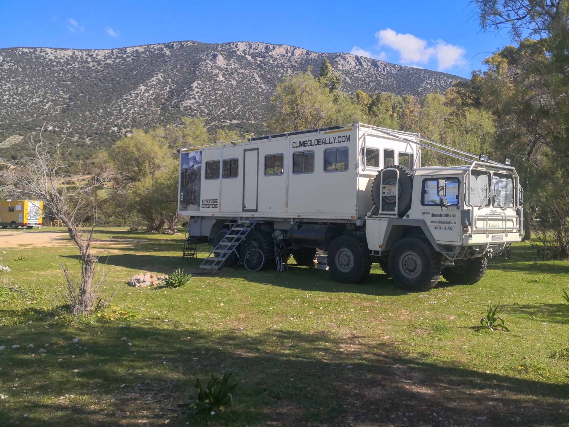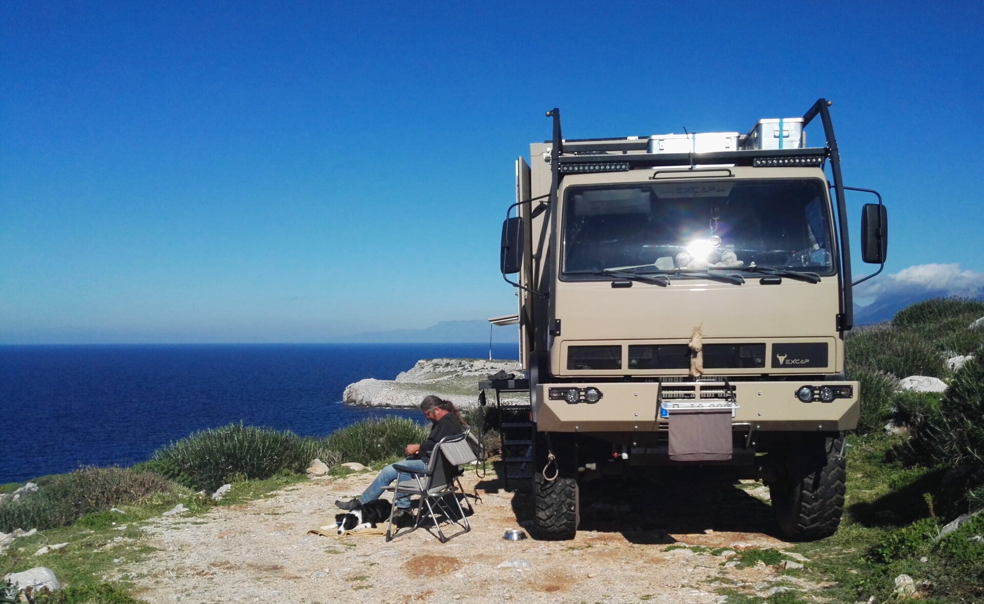 Mangels Alternativen fahren wir aber trotzdem weiter in Richtung Kap Tenaro, finden einen spektakulären Platz an der Steilküste und sind mal wieder froh über den kurzen Radstand unseres Steyr. Ein bisschen länger und wir hätten den holprigen Weg rückwärts wieder hochfahren müssen.