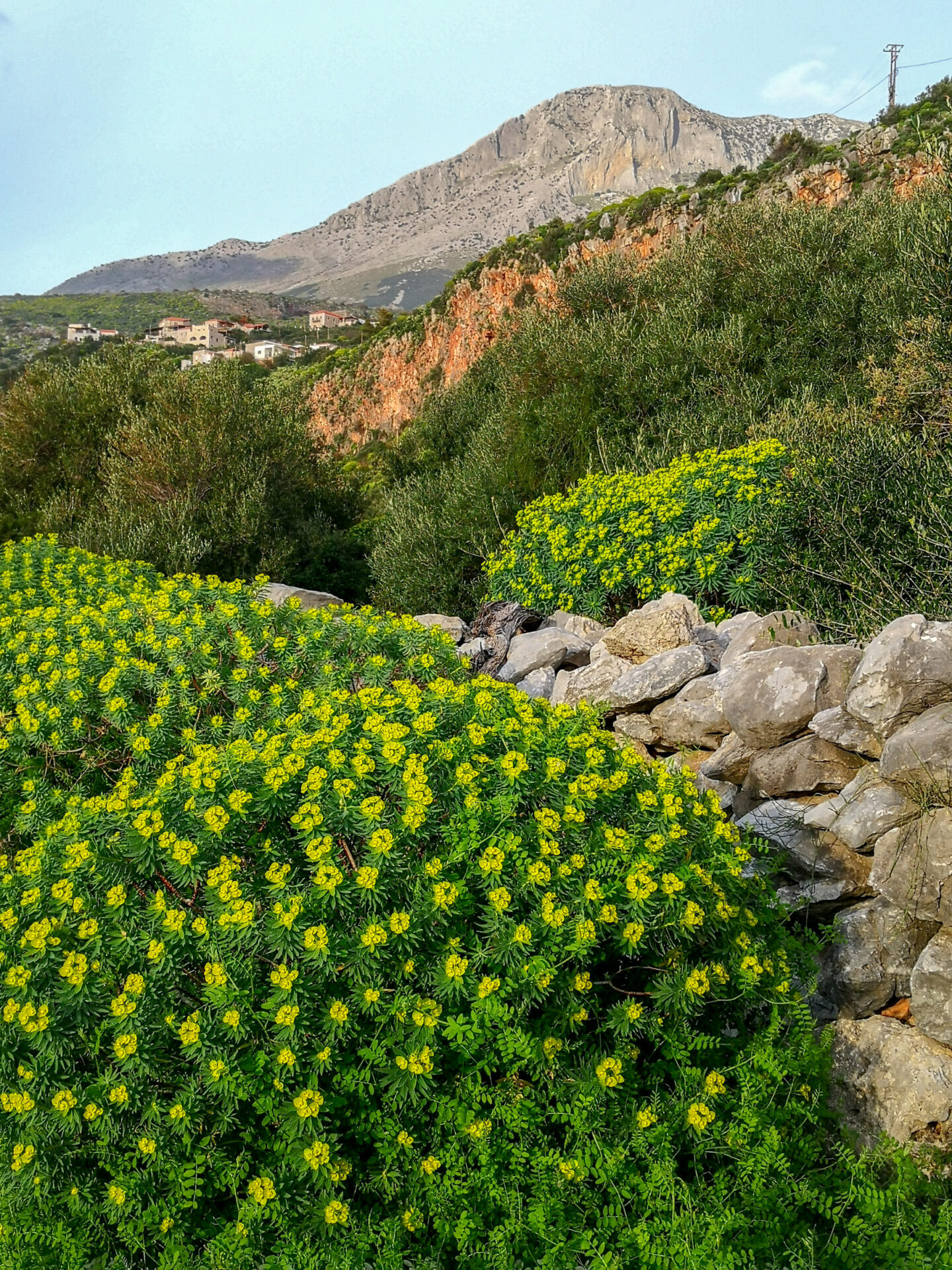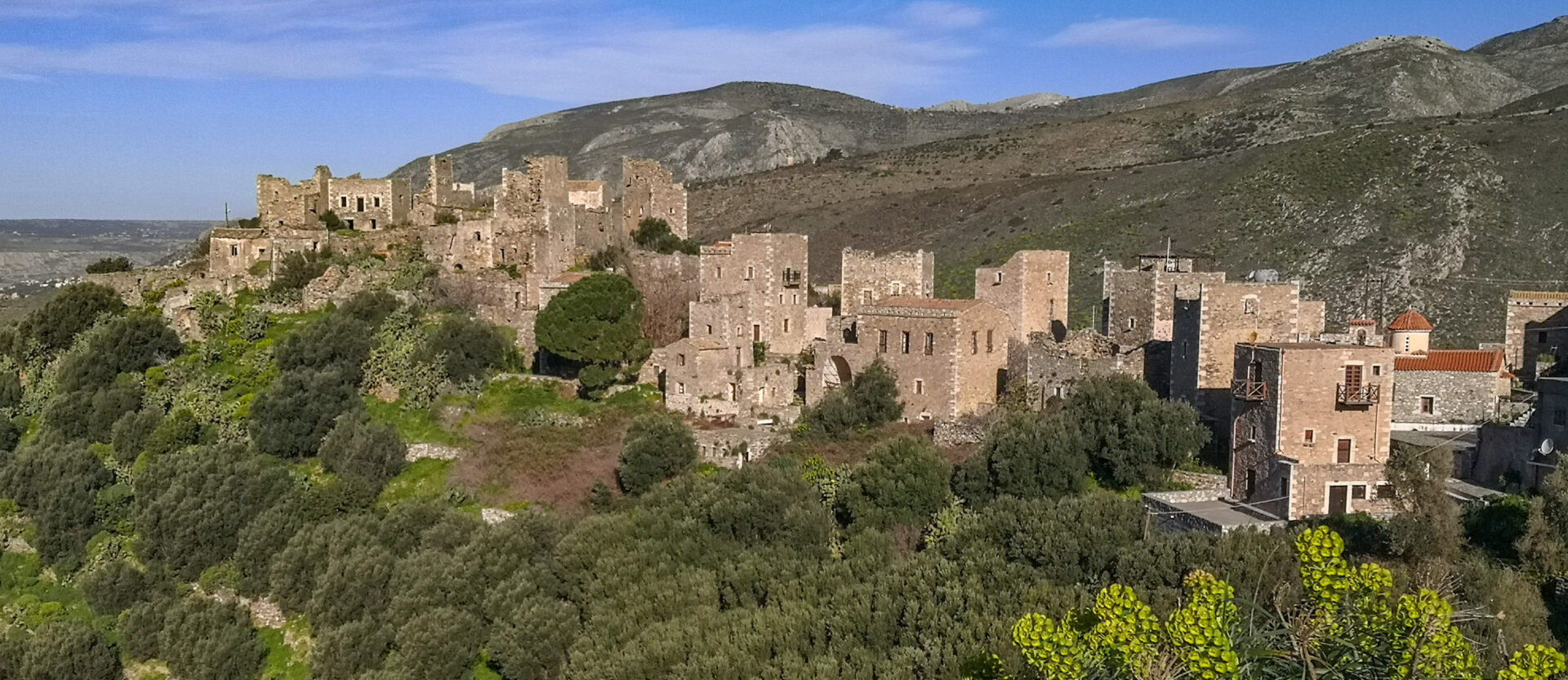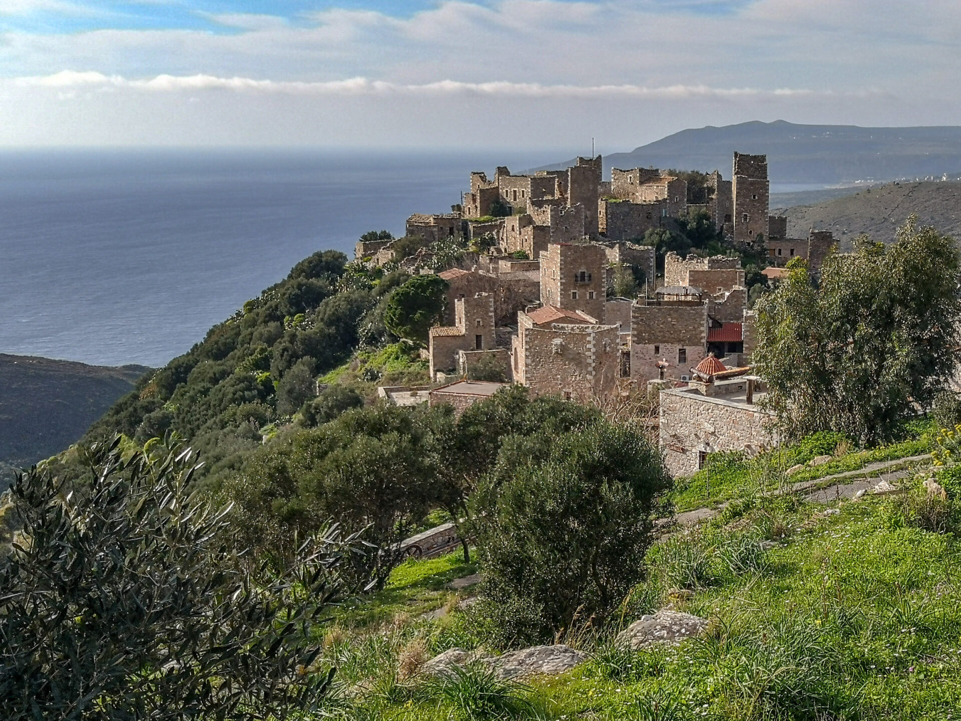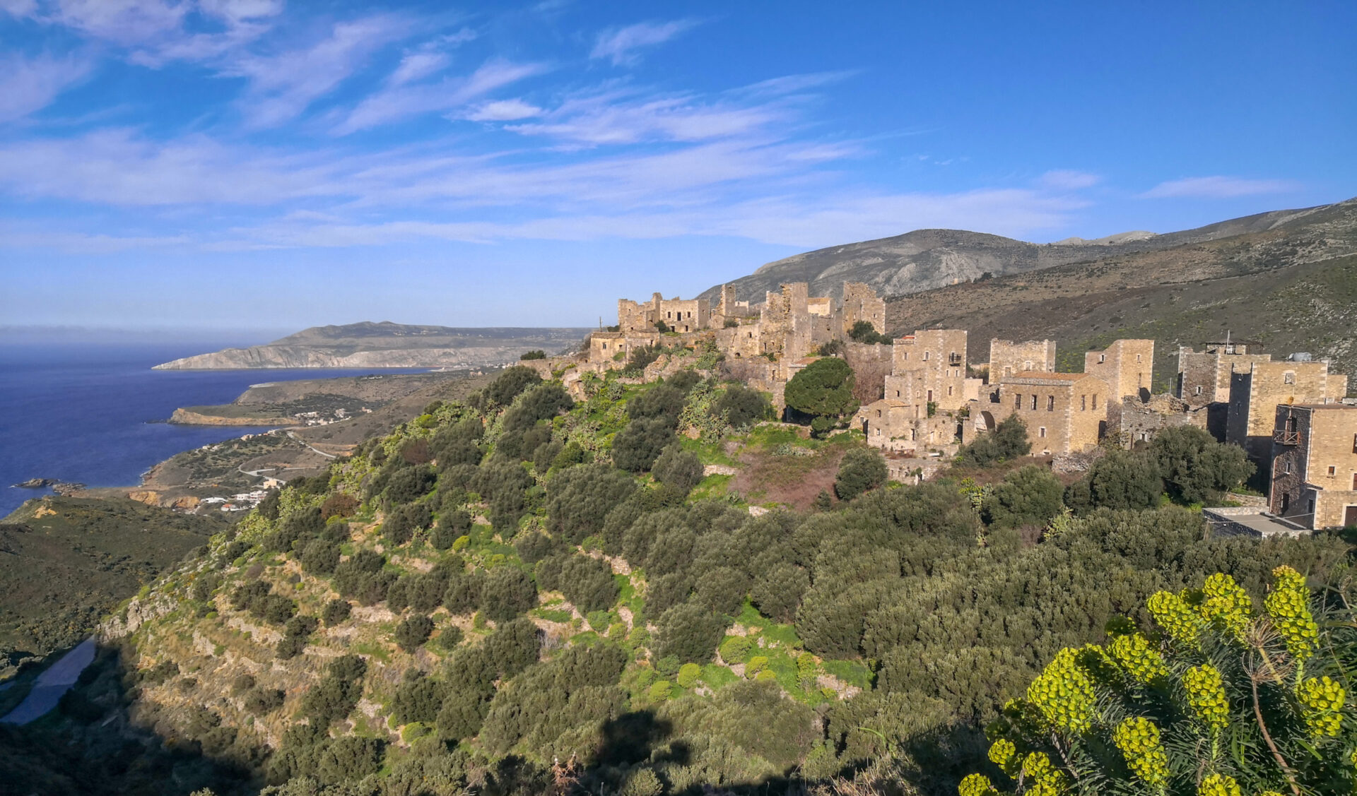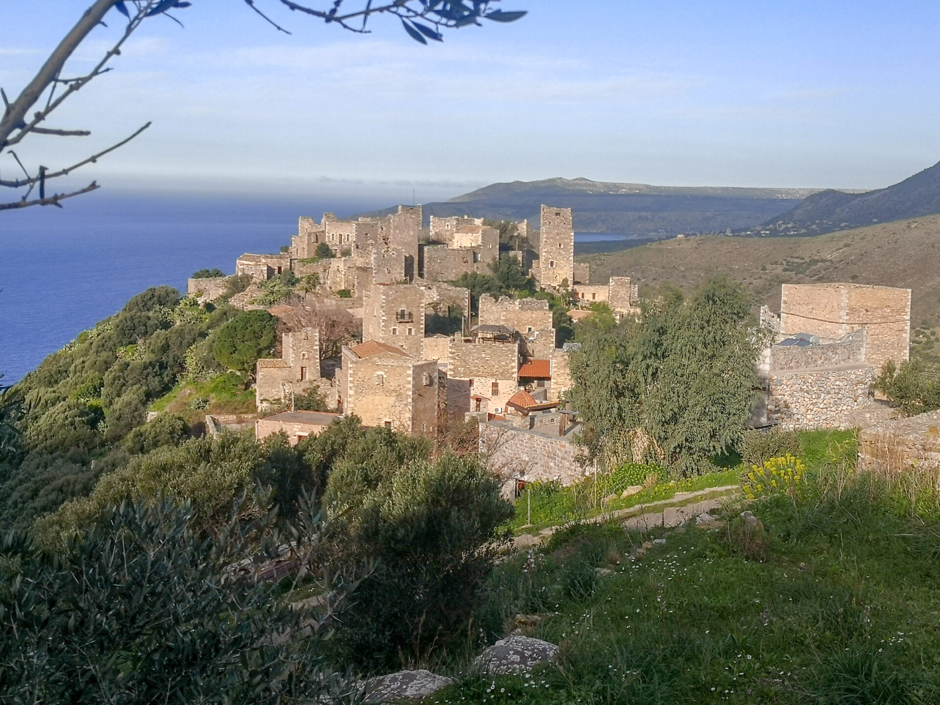 Nach zwei Tagen geht es weiter über Gerolimenos durch einsame, karge Dörfer bis Vathia, dem fast verlassenen ehemaligen Piratennest, das mit seinen Wohntürmen auf dem Hügel zwar einen fantastischen Anblick bietet, aber auch ein wenig trostlos wirkt. Die Atmosphäre auf der südlichen „inneren“ Mani passt zur allgemeinen Stimmungslage und wird noch dadurch verstärkt, dass das wenige öffentliche Leben, das hier noch zu finden ist, durch Corona gänzlich zum Erliegen kommt.