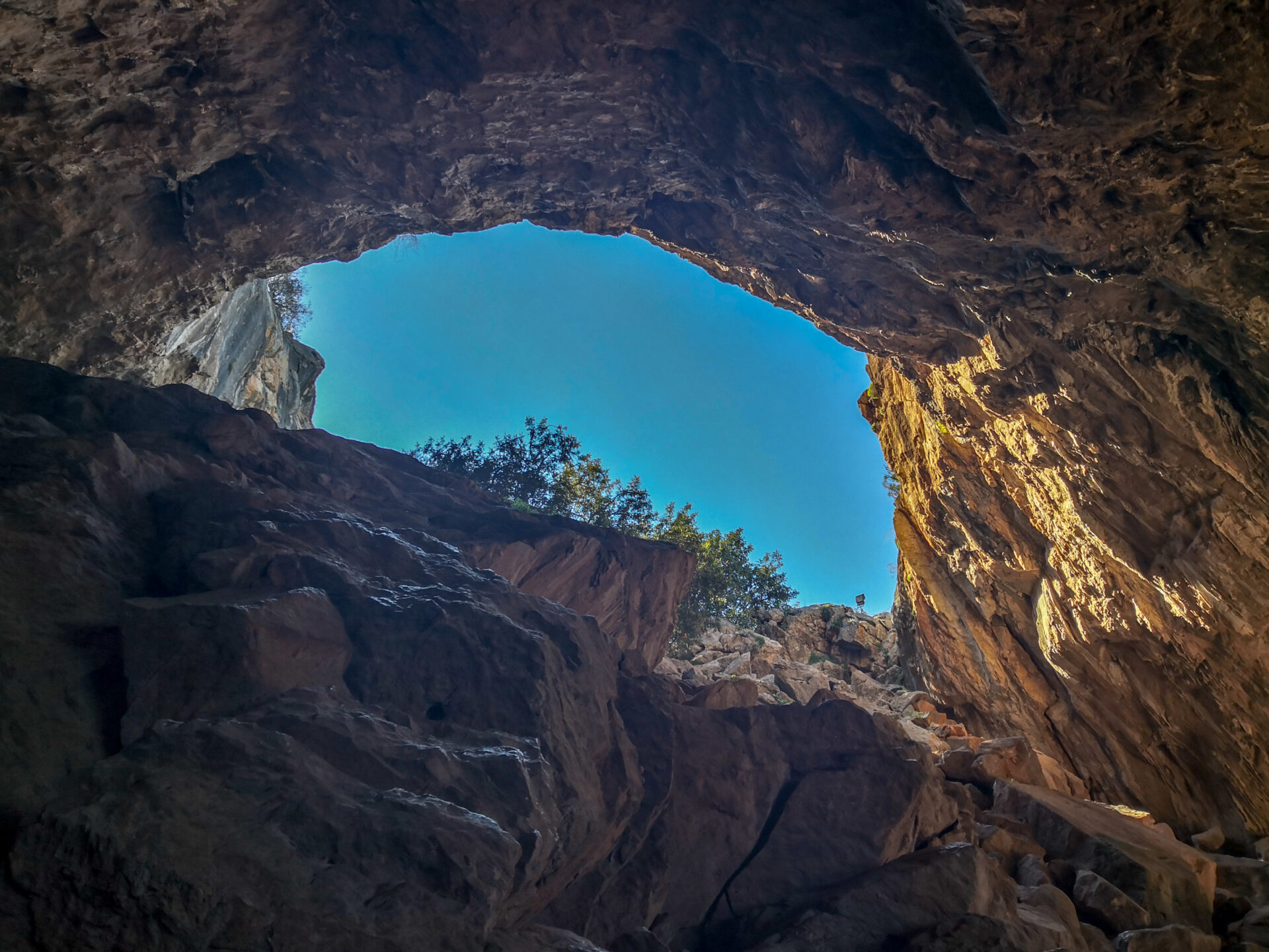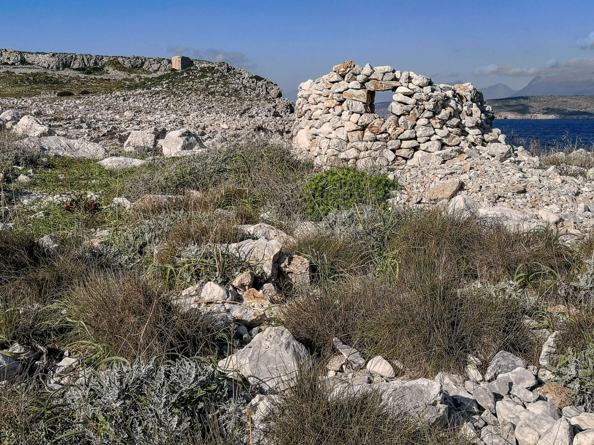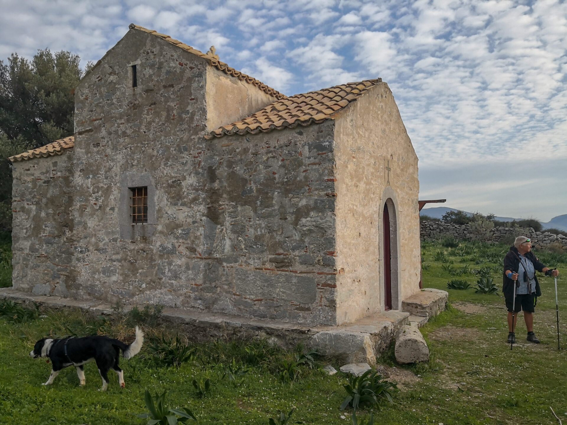 Wir bleiben optimistisch und wollen die Mani und die beiden östlichen Finger des Peloponnes erkunden, die wir noch nicht kennen. Je weiter südlich wir auf der Mani fahren, desto schroffer und einsamer wird die Landschaft. In der kleinen Bucht von Chotasia, die wir im vorigen Winter schon entdeckt hatten, verbringen wir zwei ruhige Tage und fahren dann weiter über Pirgos Dirou hinaus Richtung Süden. Endlich gibt es wieder Neues zu entdecken.
