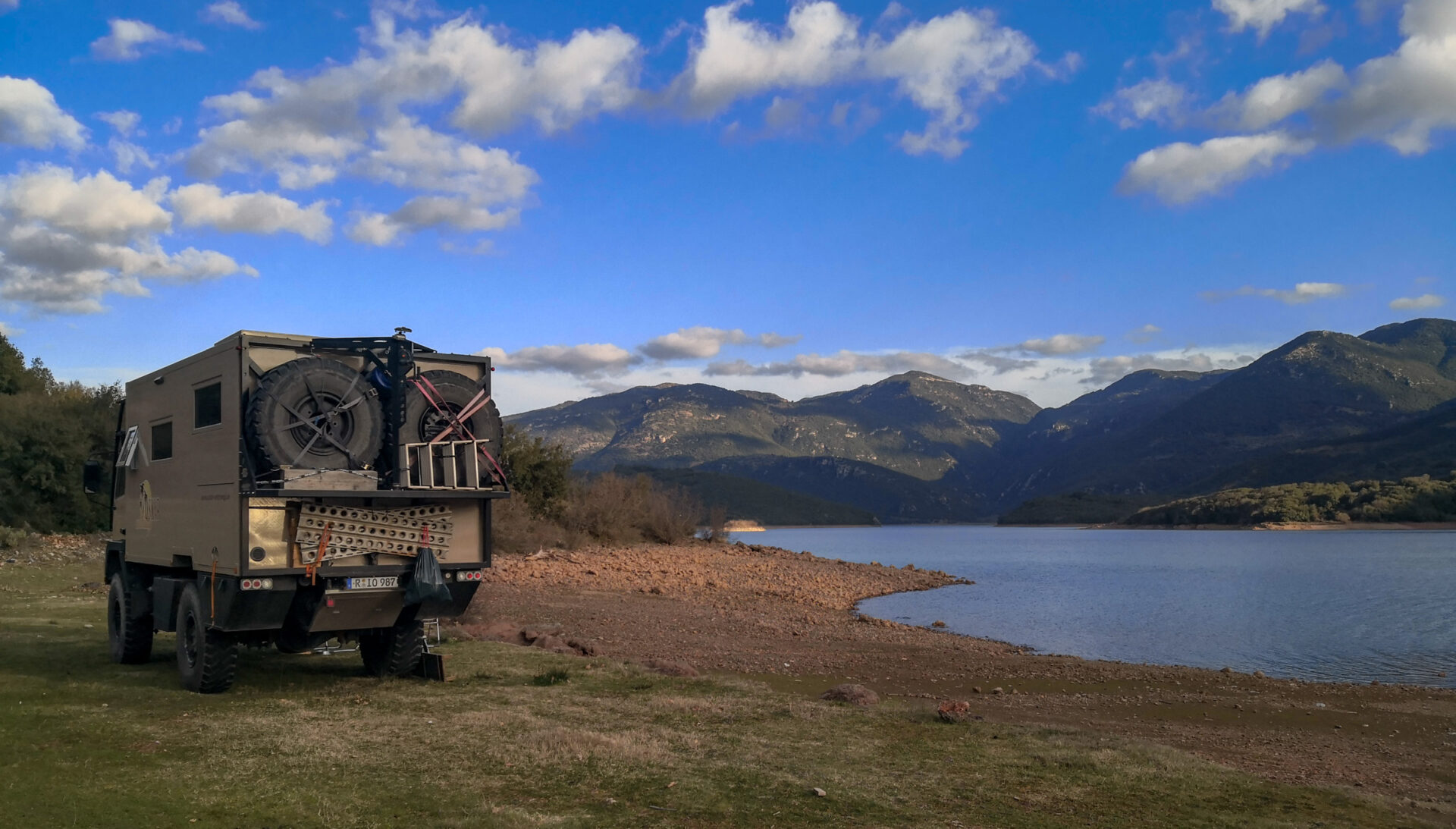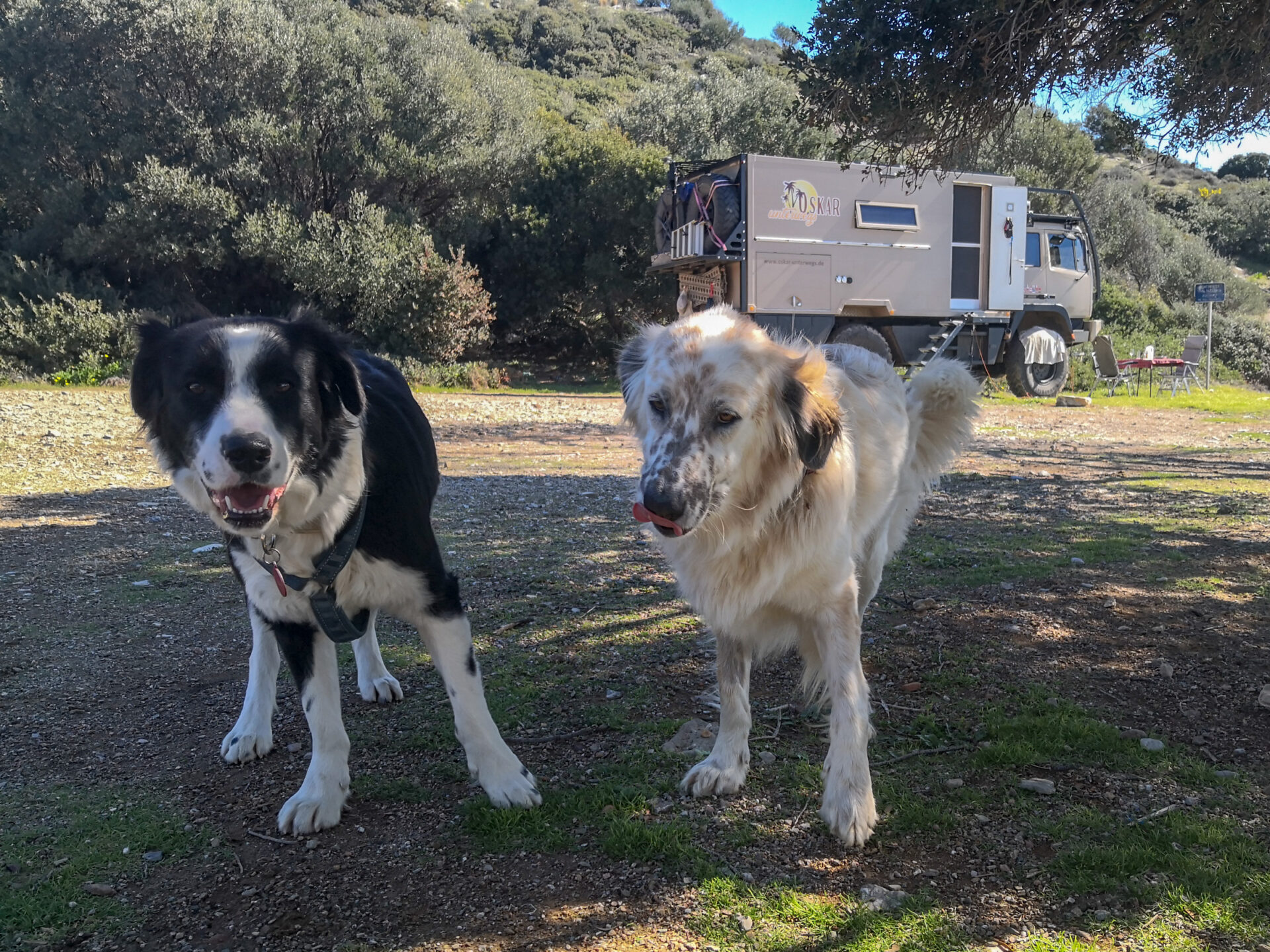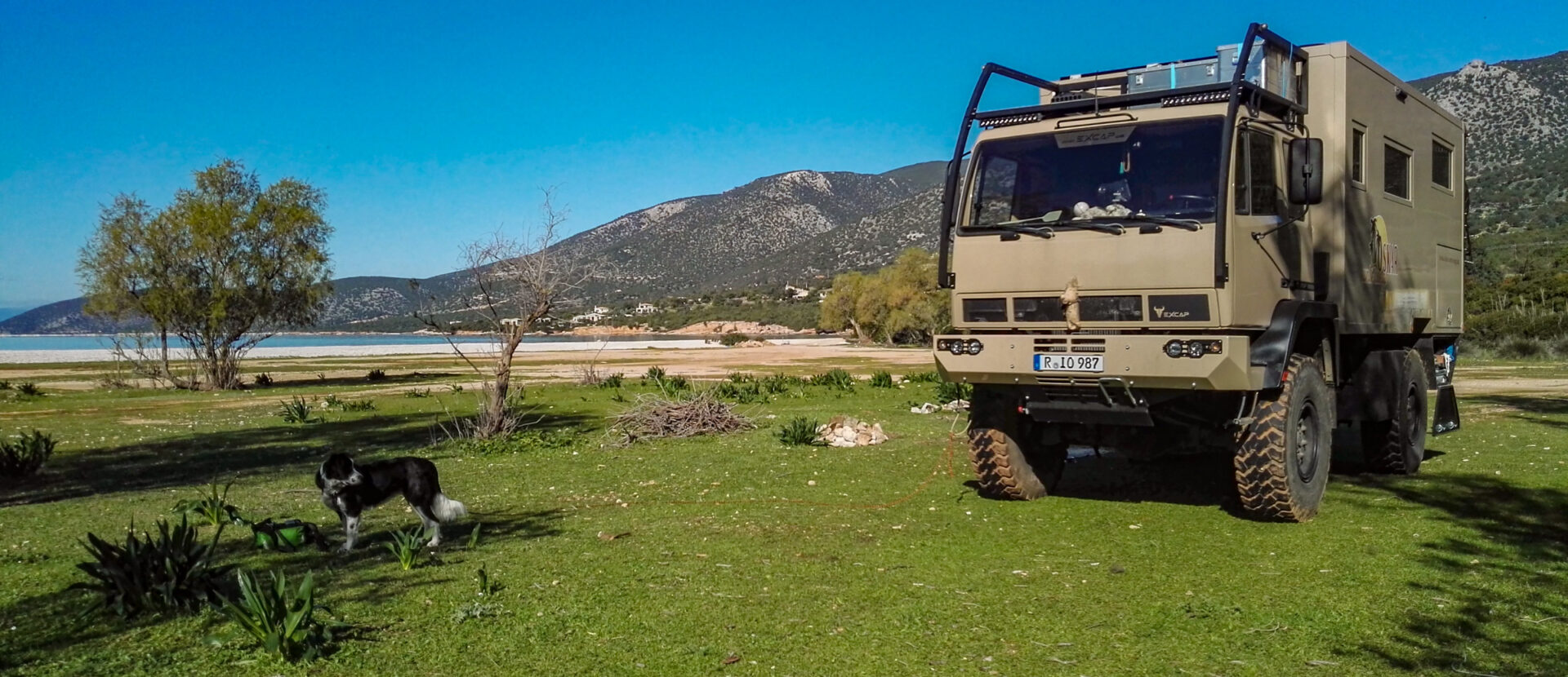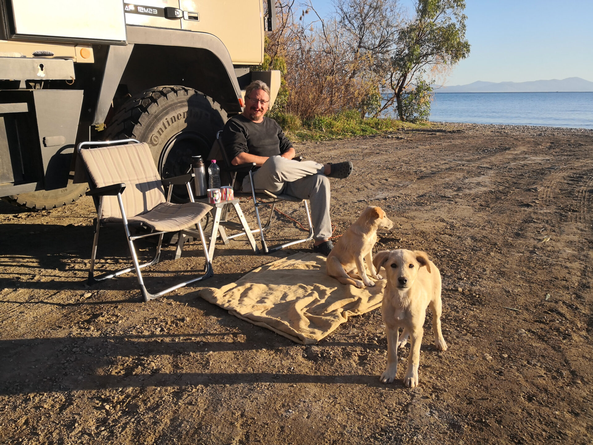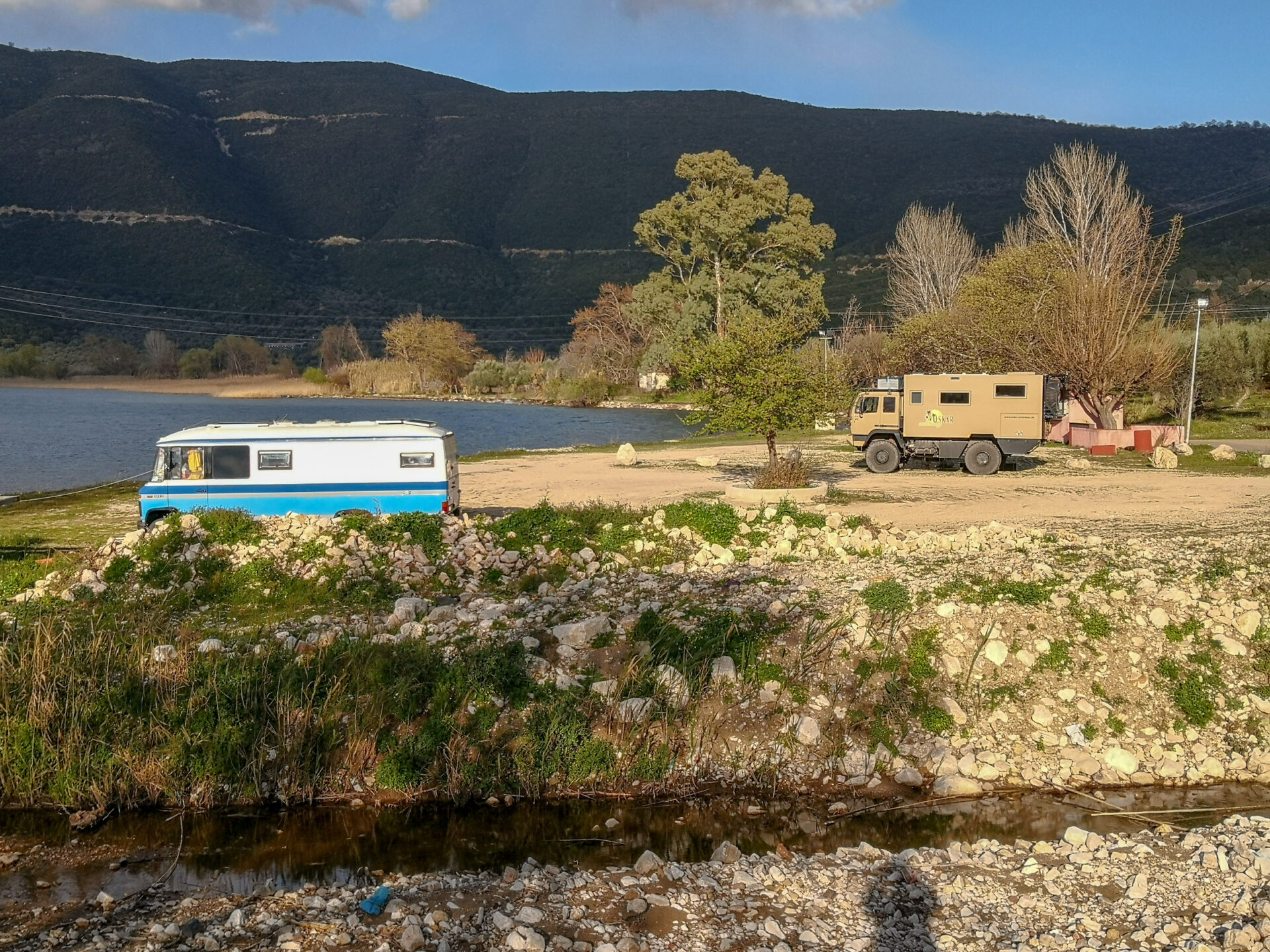 Am nächsten Tag geht es durch die Berge hoch zum Trichonida See, wo wir Paola und Igel mit ihrer blinden Hündin Caramba kennenlernen. Die beiden sind schon seit zwanzig Jahren auf Reisen und haben entsprechend viel zu erzählen. So vergehen die nächsten Tage wie im Flug mit langen Spaziergängen und geselligen Runden beim Feierabendbier. Wir diskutieren, wie es weitergehen kann und beschließen dann irgendwann, gemeinsam Richtung Türkei zu fahren, da dort die Corona-Situation deutlich entspannter sein soll.