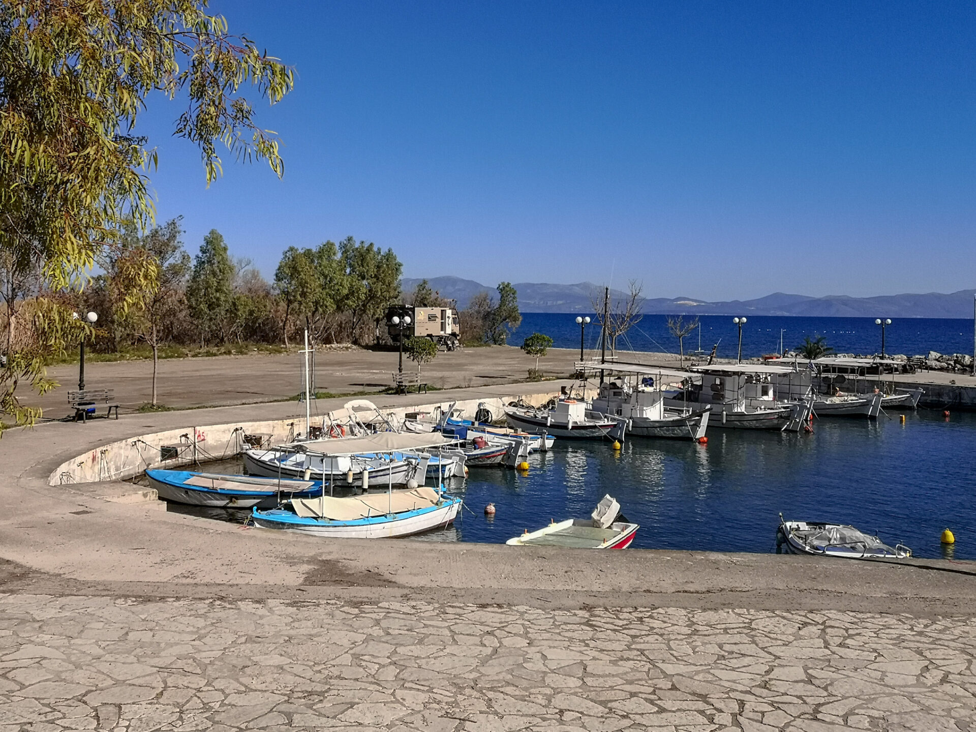 In Nafplio ist Markttag und offensichtlich nutzen wirklich alle Bewohner der Stadt diese seltene Gelegenheit, legal das Haus zu verlassen. Uns ist es zu viel Trubel, wir gehen nur schnell einkaufen und fahren dann weiter nach Salanti, in der Hoffnung, dort wieder mal einen Platz zu finden, an dem wir für längere Zeit bleiben können.