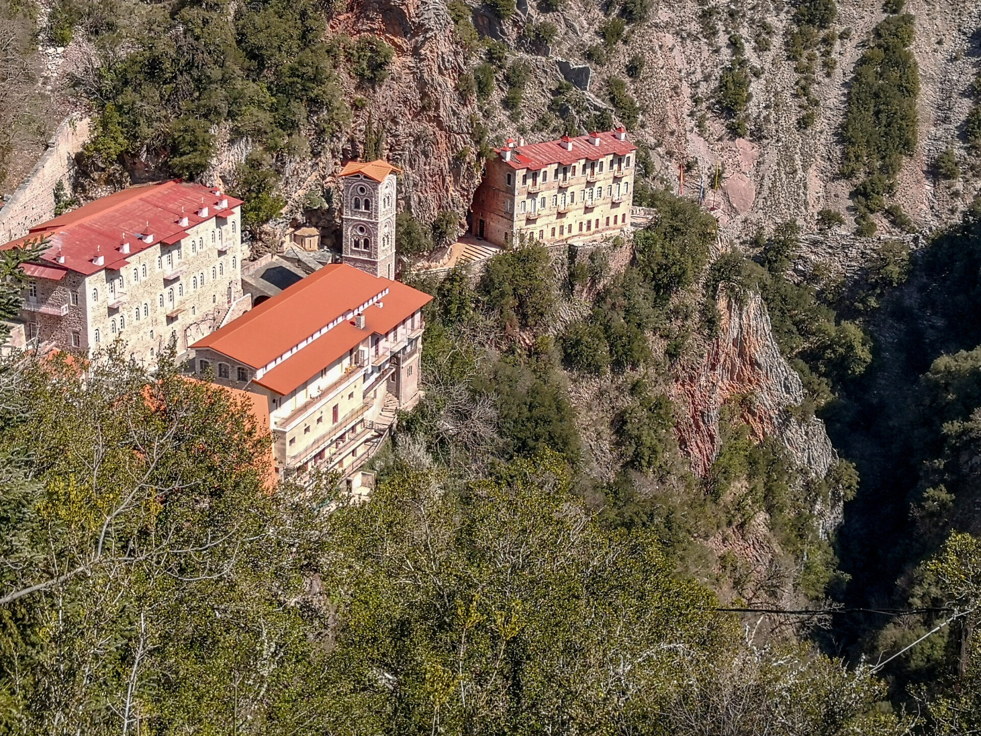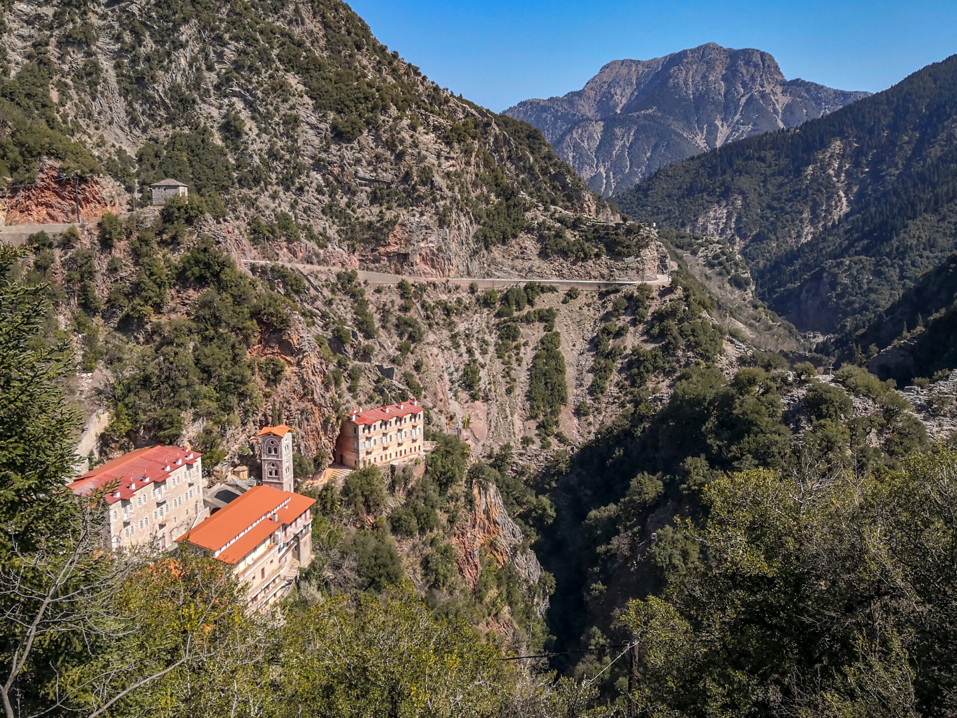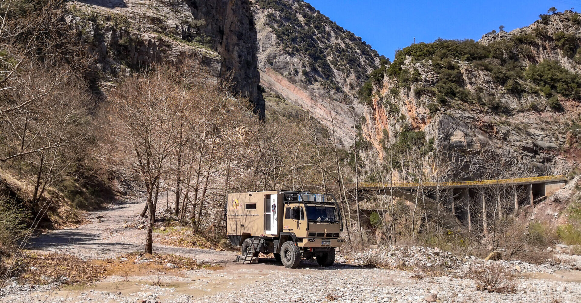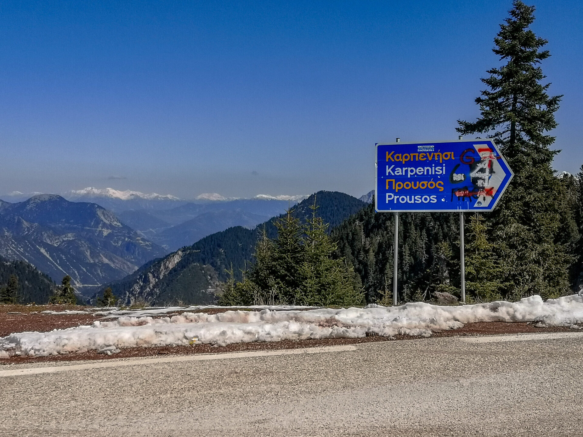 Nach fünf Tagen am See starten wir unsere Tour. Bis zur türkischen Grenze sind es fast 800km, die wir ohne zu hetzen, aber doch zügig hinter uns bringen wollen. Doch zunächst entscheiden wir uns für die wunderschöne, kleine Straße durch die Berge, vom Trichonida See nach Karpenissi. Über den Pass auf fast 1500m Höhe, wo noch jede Menge Schnee liegt und vorbei am Kloster Prousos, das sich malerisch in die enge Schlucht schmiegt. Ein Stück vor Karpenissi finden wir noch einen schönen Platz für eine Pause in einem Flussbett und im Ort füllen wir nochmal unsere Vorräte auf.