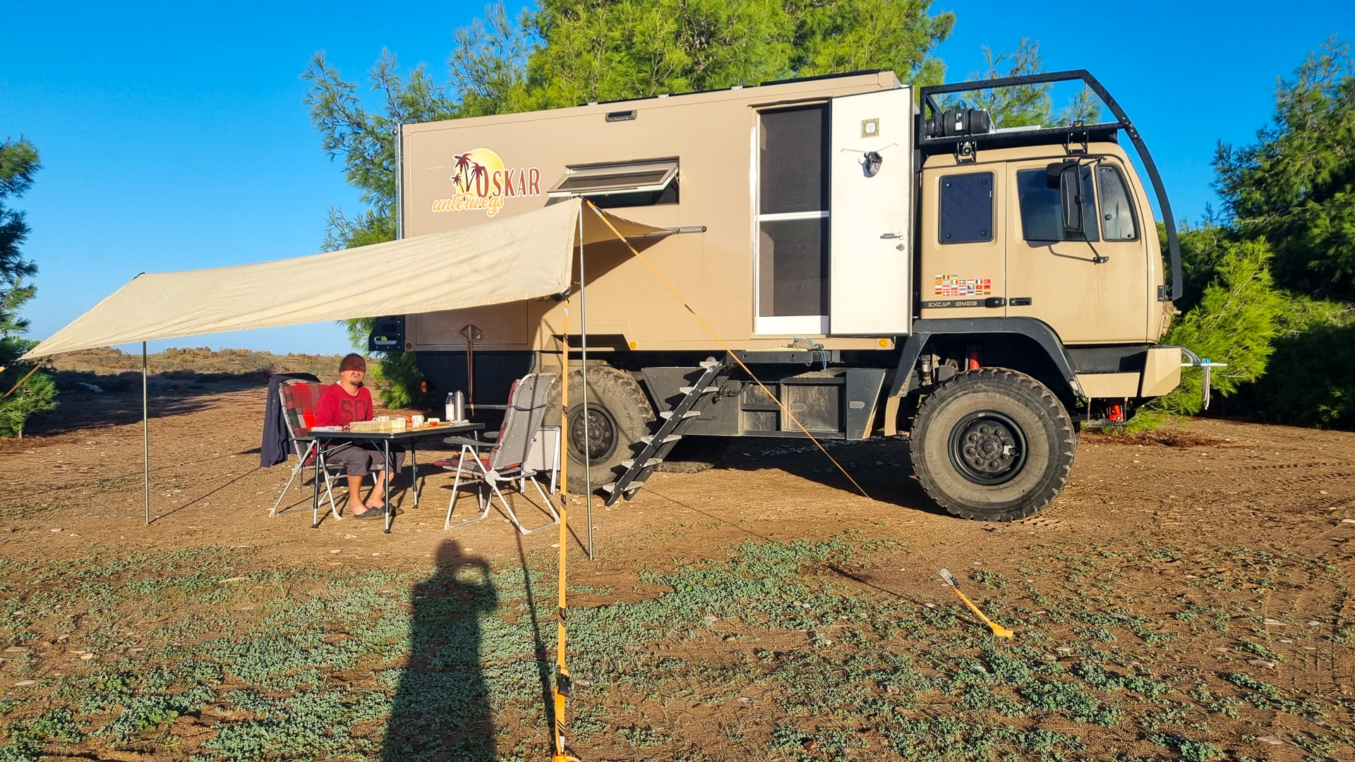 Nun sind wir also wieder hier mit all unseren Erinnerungen im Gepäck. Der Platz ist wie so oft bereits sehr gut besucht. Aber wir finden eine Ecke und bleiben ein paar Tage. Christos versorgt uns mit 10 Litern leckeren Olivenöls. Wir treffen zufällig auf ein paar alte Bekannte unseres ersten Aufenthaltes und besuchen Freunde, die sich während der Pandemie in der Region sesshaft gemacht haben.