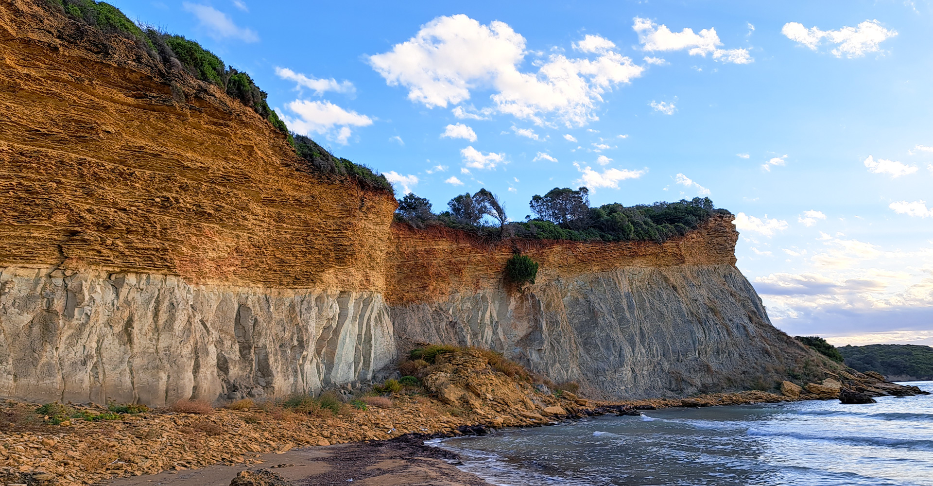 Jochen schwelgt seit Beginn unserer Reise in Erinnerungen an Zakynthos, das er 1988 (!) nach dem Abitur mit Freunden besucht hat. Bei unseren ersten Aufenthalten in Griechenland hat sich ein Besuch nicht ergeben. Dieses Mal soll es sein! Aber unser Aufenthalt währt leider nur sehr kurz. Ein Grund ist das schlechte Wetter. Ein anderer Grund allerdings, dass außerhalb der Saison die Bürgersteige hochgeklappt sind. Offensichtlich lebt die Insel nur noch vom Tourismus und das sieht man leider auch. Naja, in 35 Jahren verändert sich natürlich so einiges. Dennoch umrunden wir die Insel zumindest. Wir verbringen eine Nacht in Gérakas, der südlichste Teil der Insel mit einem wunderschönen Sandstrand. Hier nisten auch die Karettschildkröten, so dass der Strand geschützt und zum Teil gesperrt ist. Sodann geht es zum Navagio Beach, bekannt für das Schiffswrack. Landschaftlich wäre es sehr schön, aber es ist zwischenzeitlich alles eingezäunt und überall finden sich Verbotsschilder. Schließlich noch ein Abstecher nach Porto Vromi und zum Kap Skinari und nach zwei Tagen sind wir schon wieder runter von der Insel.