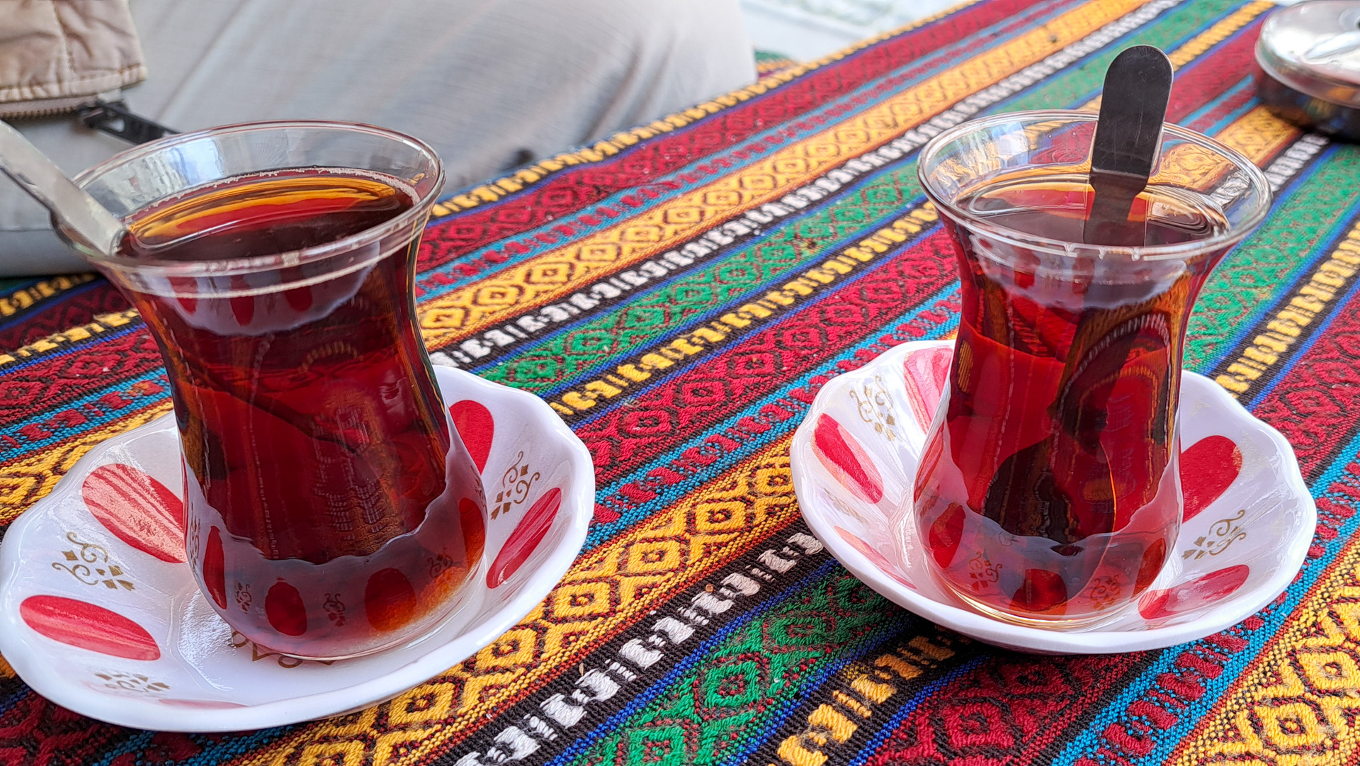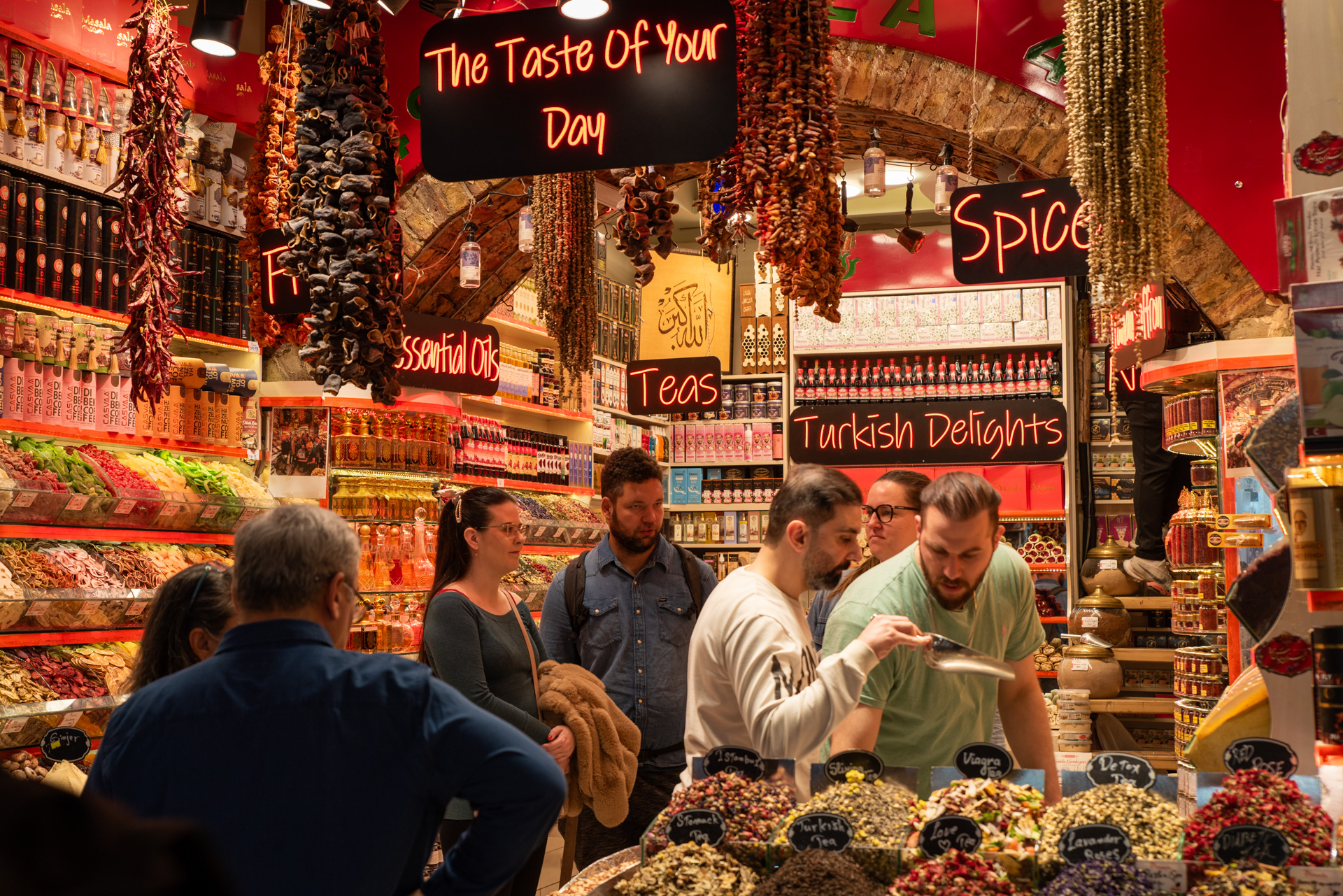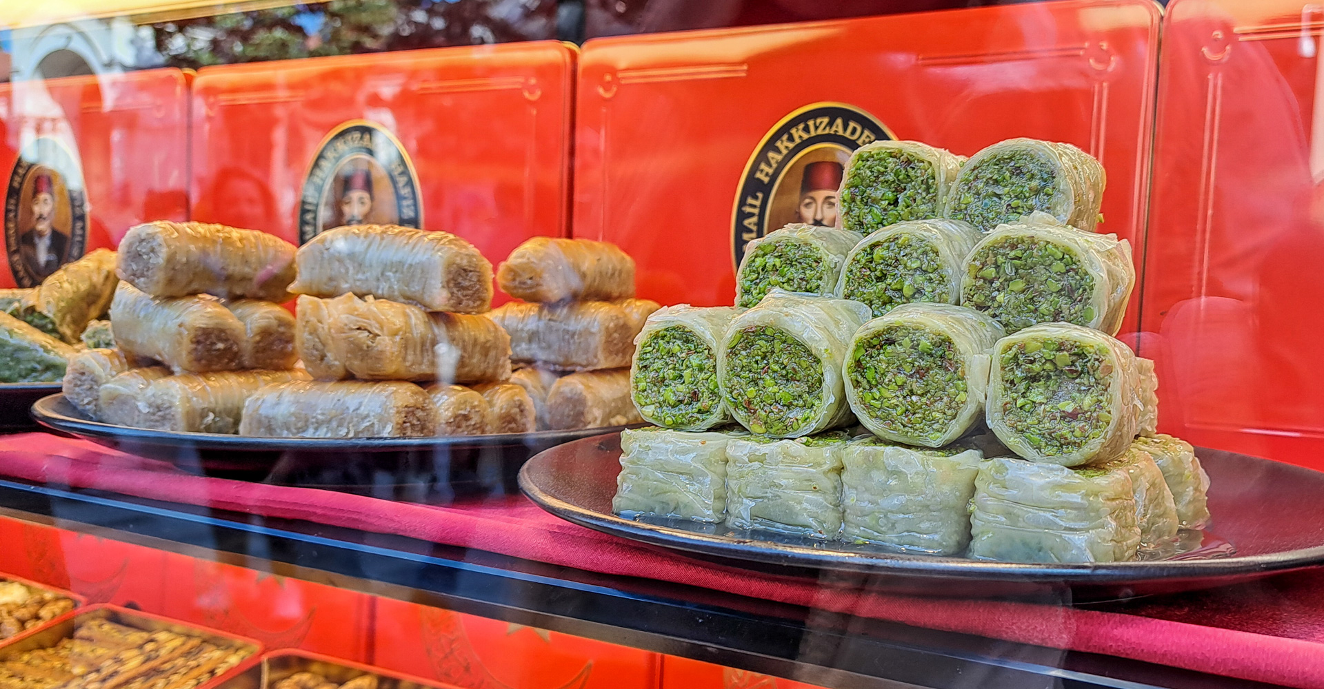 Während einer kurzen Verschnaufpause entdeckt Anja im WhatsApp-Status die Fotos von Jochens ehemaliger Kollegin Kathi und denkt sich: „Hm, das kenn ich doch. Sieht aus wie die Blaue Moschee in Istanbul 🤔“. Was für ein Zufall. Kathi ist tatsächlich mit ihrem Partner für einen Kurztrip über Ostern in der Stadt und natürlich verabreden wir uns für den Abend zum Essen. Natürlich in der Çiçek Pasajı.