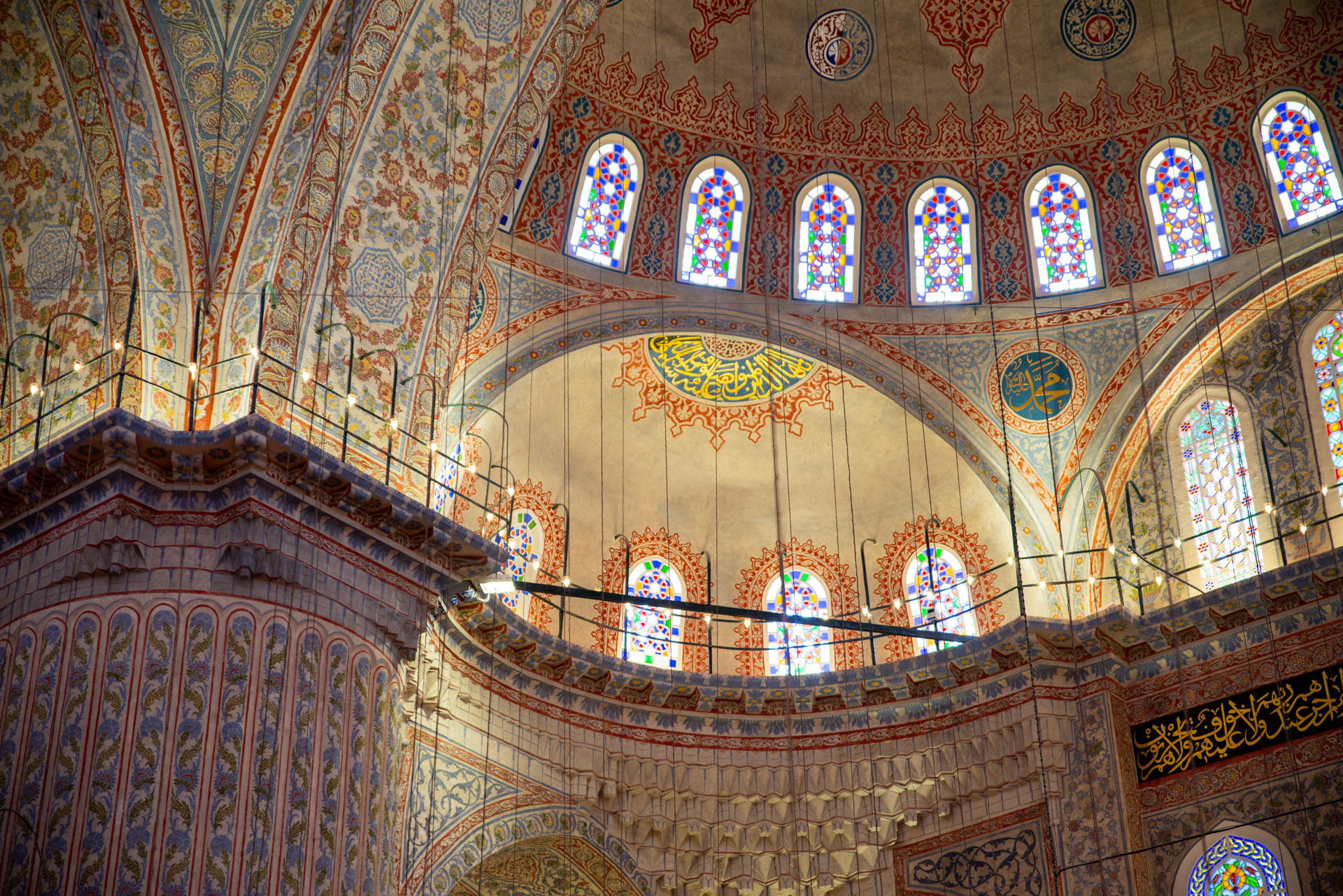 Zwischen dem ganzen Ärger hatten wir dann aber doch noch Zeit für ein bisschen Stadtbummel und Sightseeing: am Vormittag ging es nochmal mit der Tünel Bahn hoch in die Istiklal Caddesi, genauer gesagt in die deutsch-türkische Buchhandlung, um uns mit neuem Lesestoff einzudecken. Anschließend wieder nach Sultanahmet, wo wir als erstes die Blaue Moschee besichtigen wollen. Der Andrang ist zwar enorm, aber die Schlange bewegt sich trotzdem zügig vorwärts und so stehen wir schon nach kurzer Zeit auf dem Teppich des riesigen Gebetsraums unter der beeindruckenden Kuppel und kommen aus dem Staunen nicht mehr heraus.