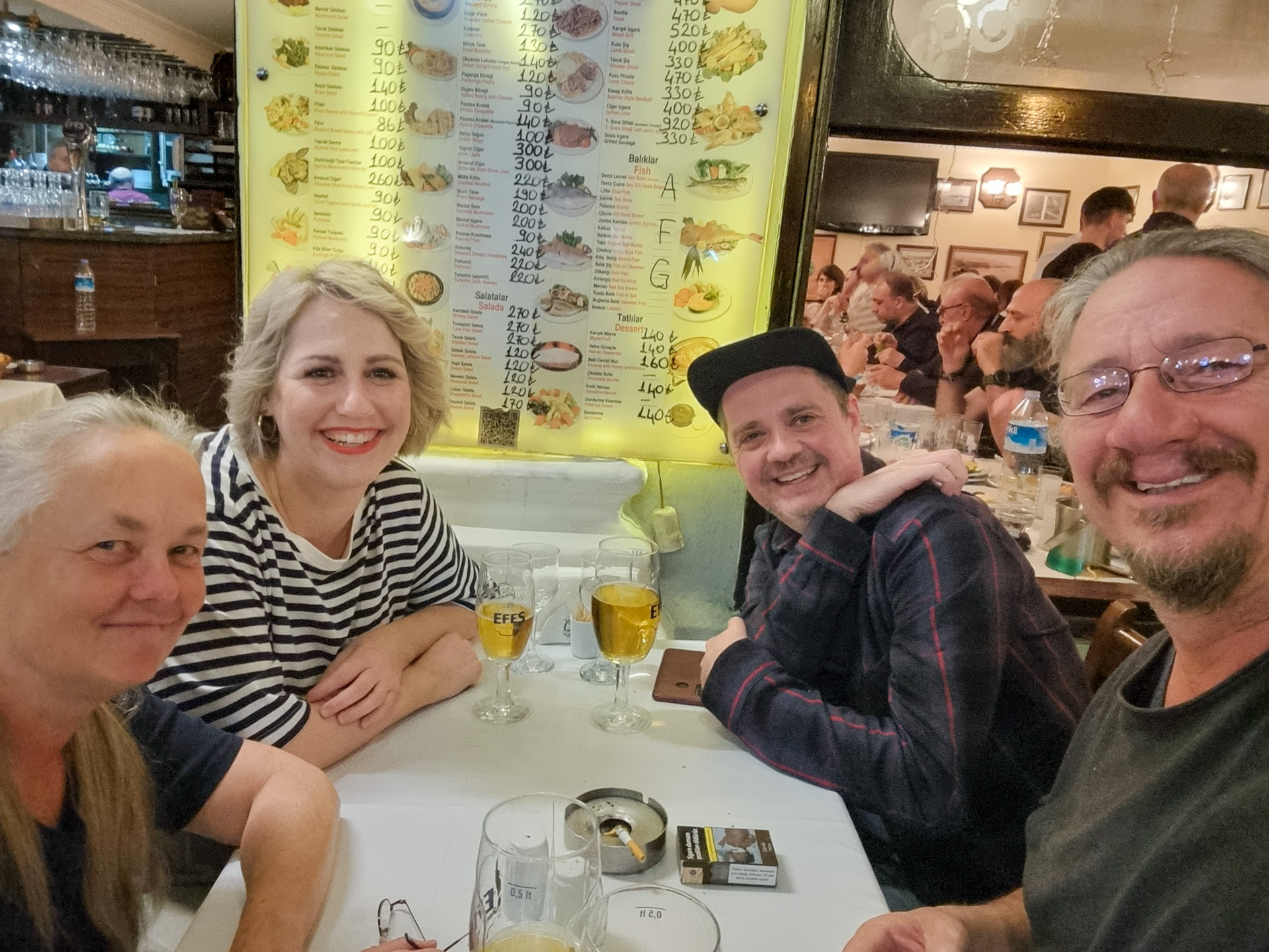 Mit Kathi und Andi verbringen wir einen wunderschönen Abend in der Çiçek Pasajı bei leckerem Essen, Efes und Raki und tauschen uns mit den beiden über unsere Eindrücke und Erfahrungen in Istanbul aus.