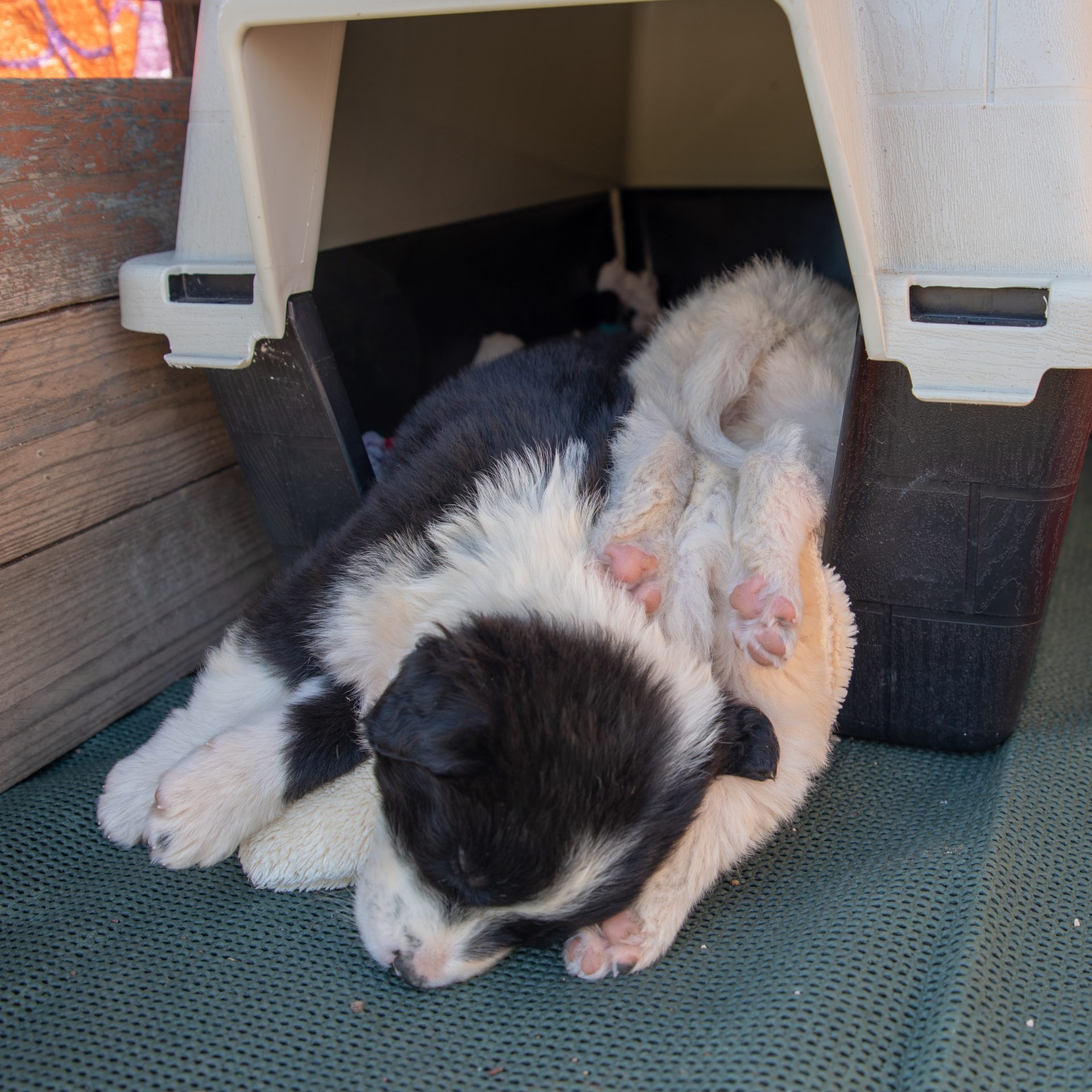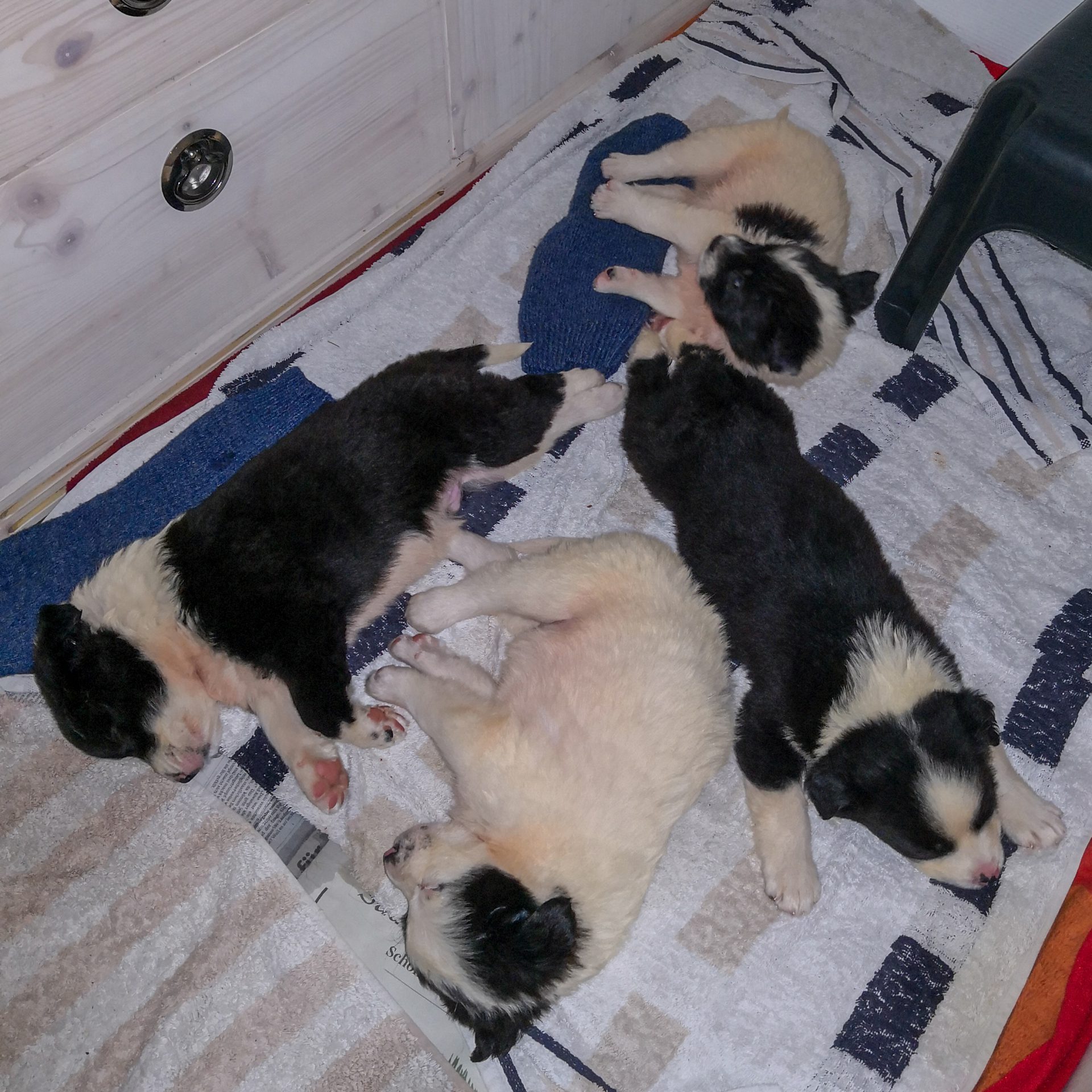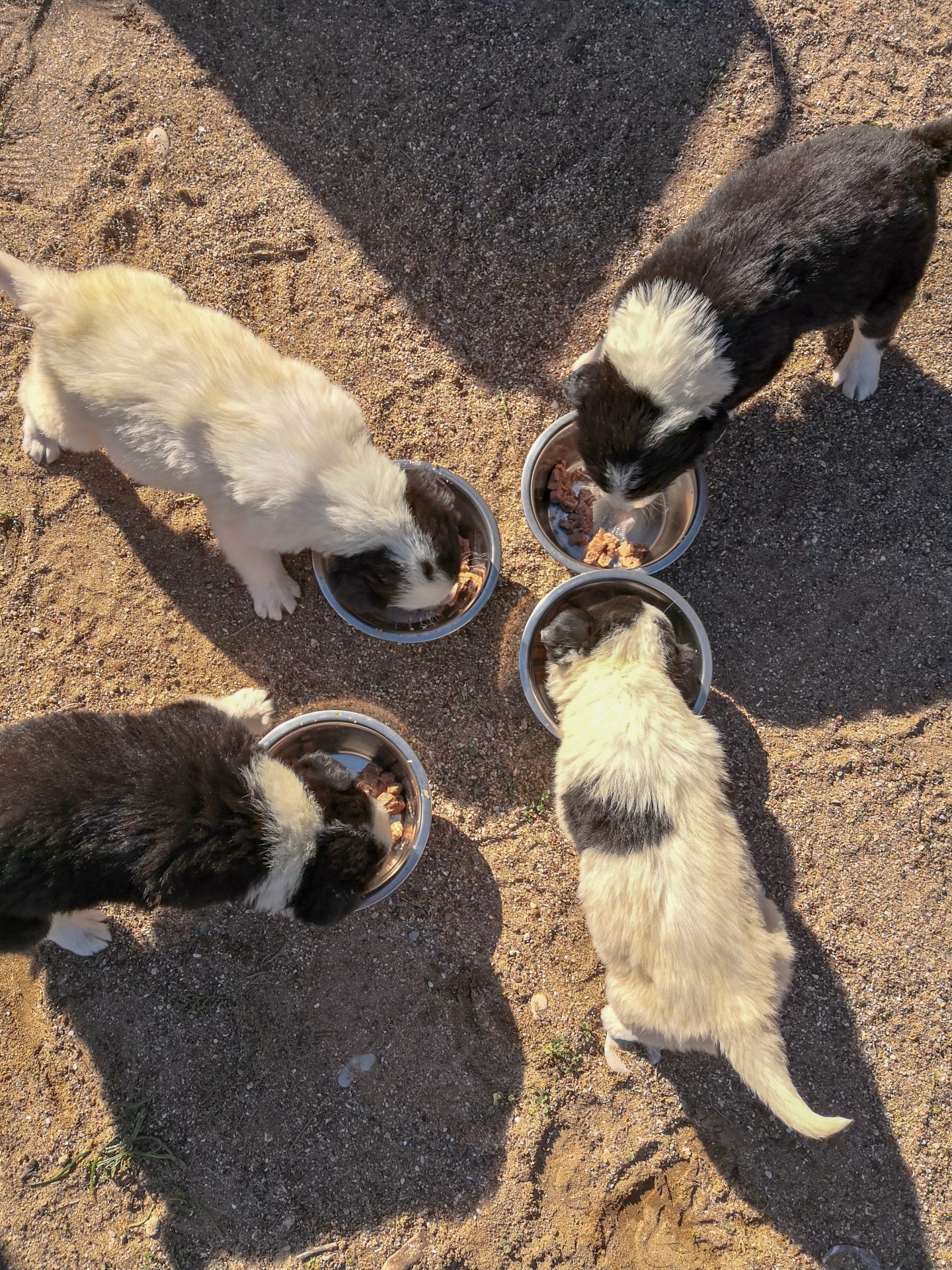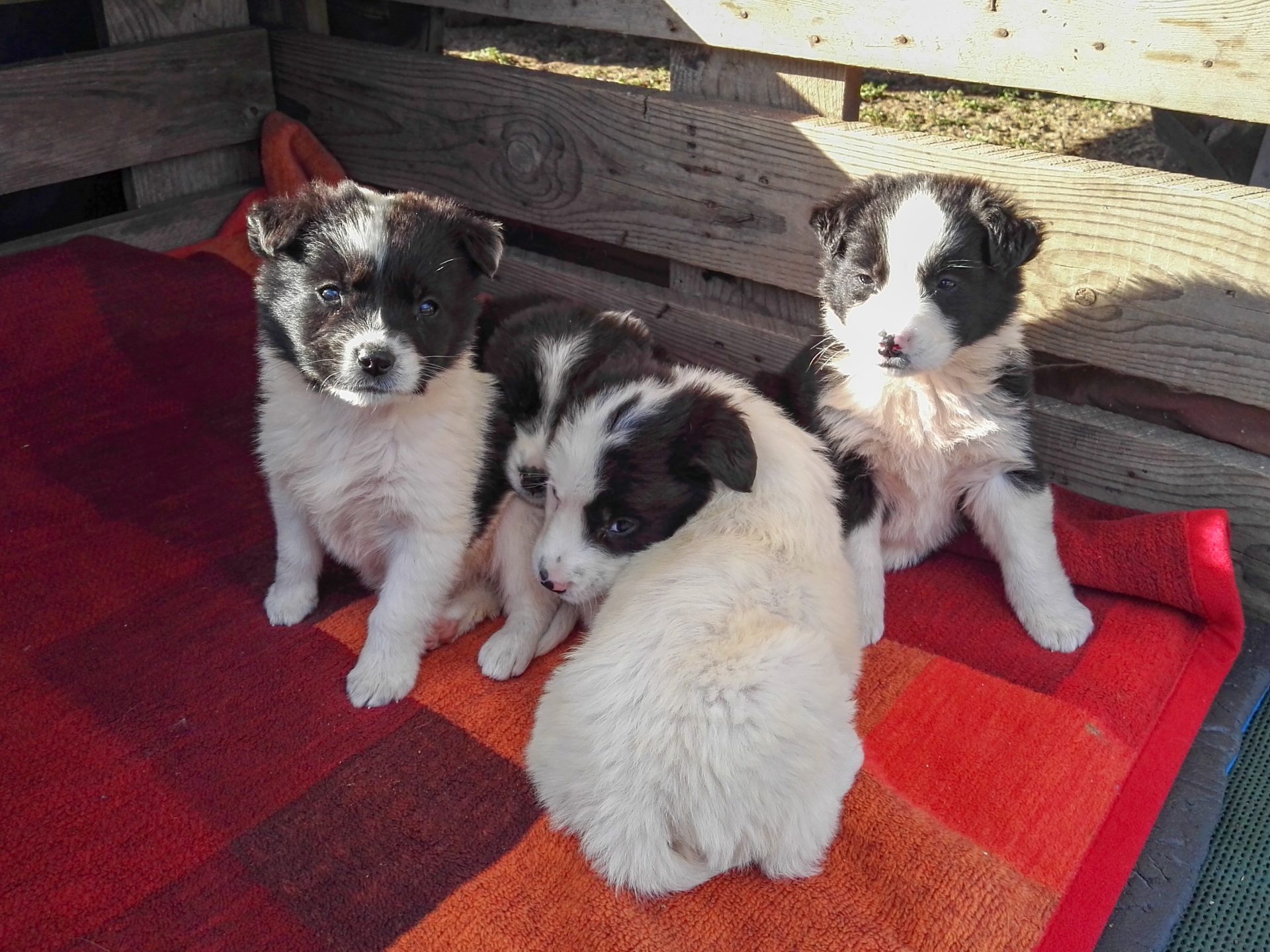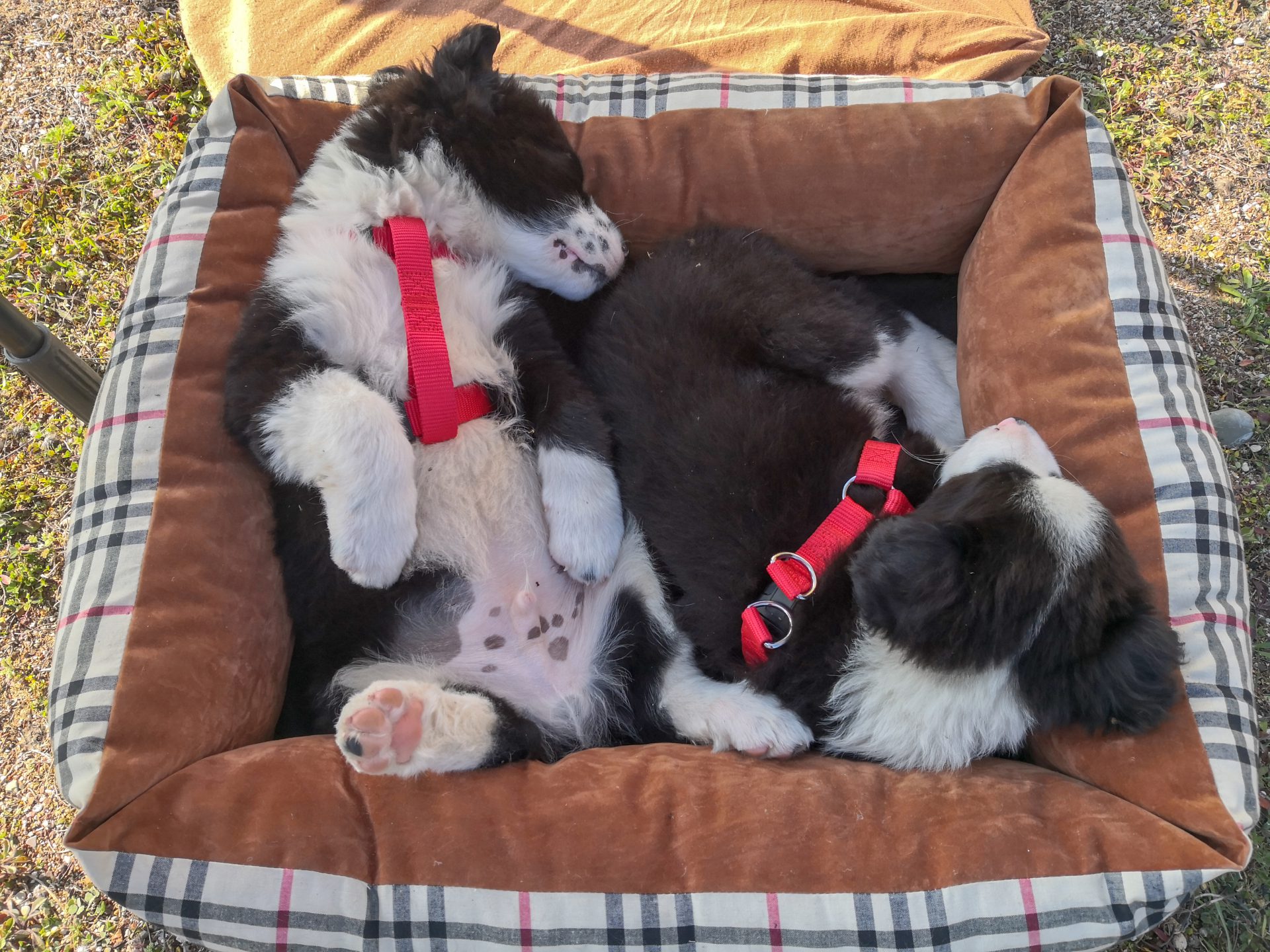 Im ersten Moment, als wir sie gefunden haben, ging es uns ja nur darum, die vier Welpen zu retten und uns um einen sicheren Platz für sie zu kümmern. Aber spätestens nach ein paar Tagen wird uns klar, dass es dabei nicht bleiben wird und wir mindestens einen behalten werden. Alle vier sind uns einfach zu schnell ans Herz gewachsen. Und nachdem jeweils die weißen Geschwister und die schwarzen Geschwister gemeinsam unterwegs sind, beschließen wir, gleich zwei zu behalten.