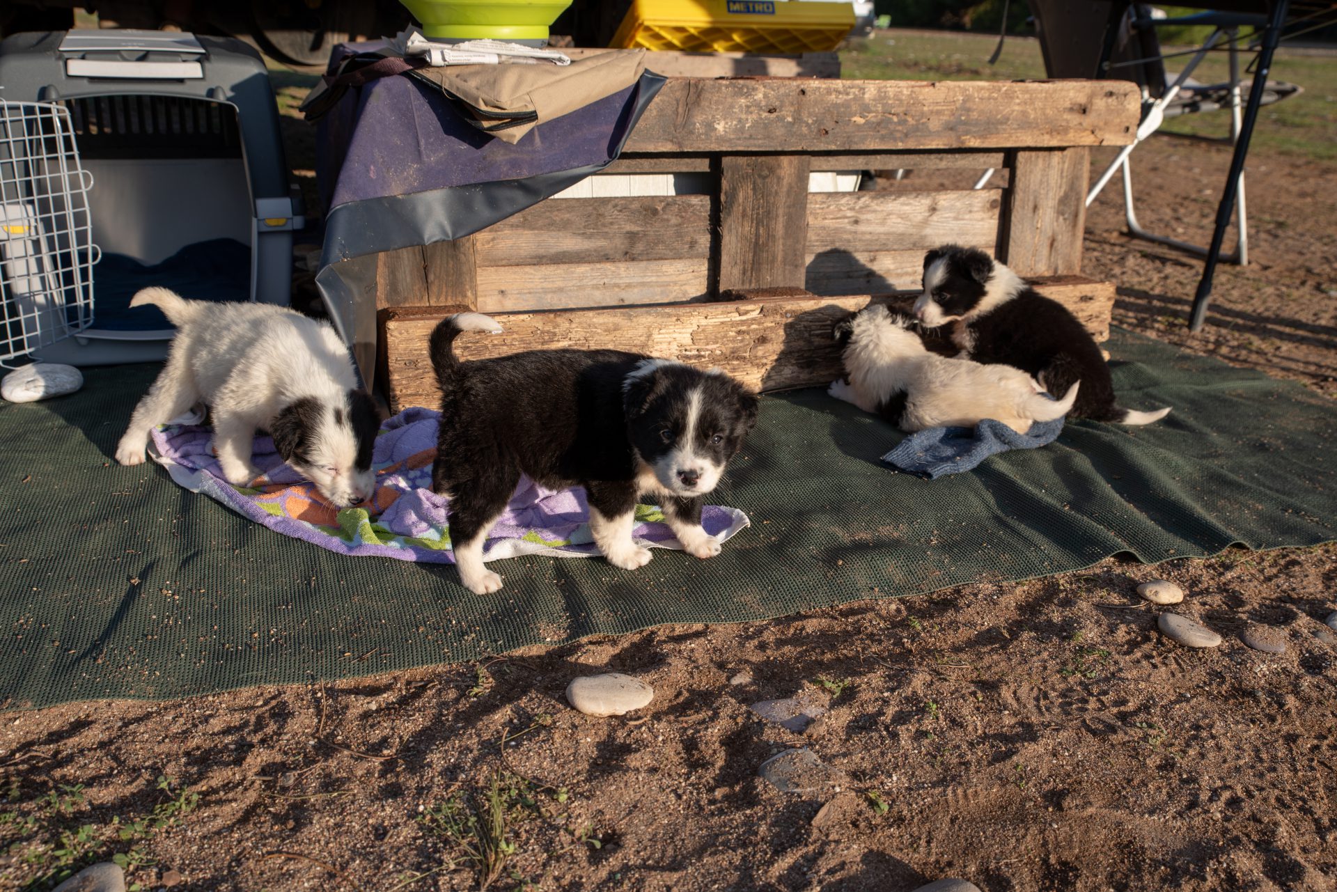 Die erste Nacht wird eine Herausforderung. Die vier Welpen sind ziemlich aufgedreht, aber ansonsten fit, gesund und sehr hungrig. Was sie allerdings nicht sind, ist: stubenrein. Da wir keine speziellen Unterlagen zur Verfügung haben, legen wir den Boden für die Nacht mit Decken und Handtüchern aus. Kann man ja alles waschen. Im Lauf der Nacht wird der Bedarf an Handtüchern immer größer, was vorne rein geht, kommt eben hinten wieder raus – und das mal 4. Trotzdem bereuen wir die Entscheidung und das Chaos im LKW keine Sekunde, zumal die Kleinen den Sturm in dieser Nacht wohl kaum überlebt hätten.