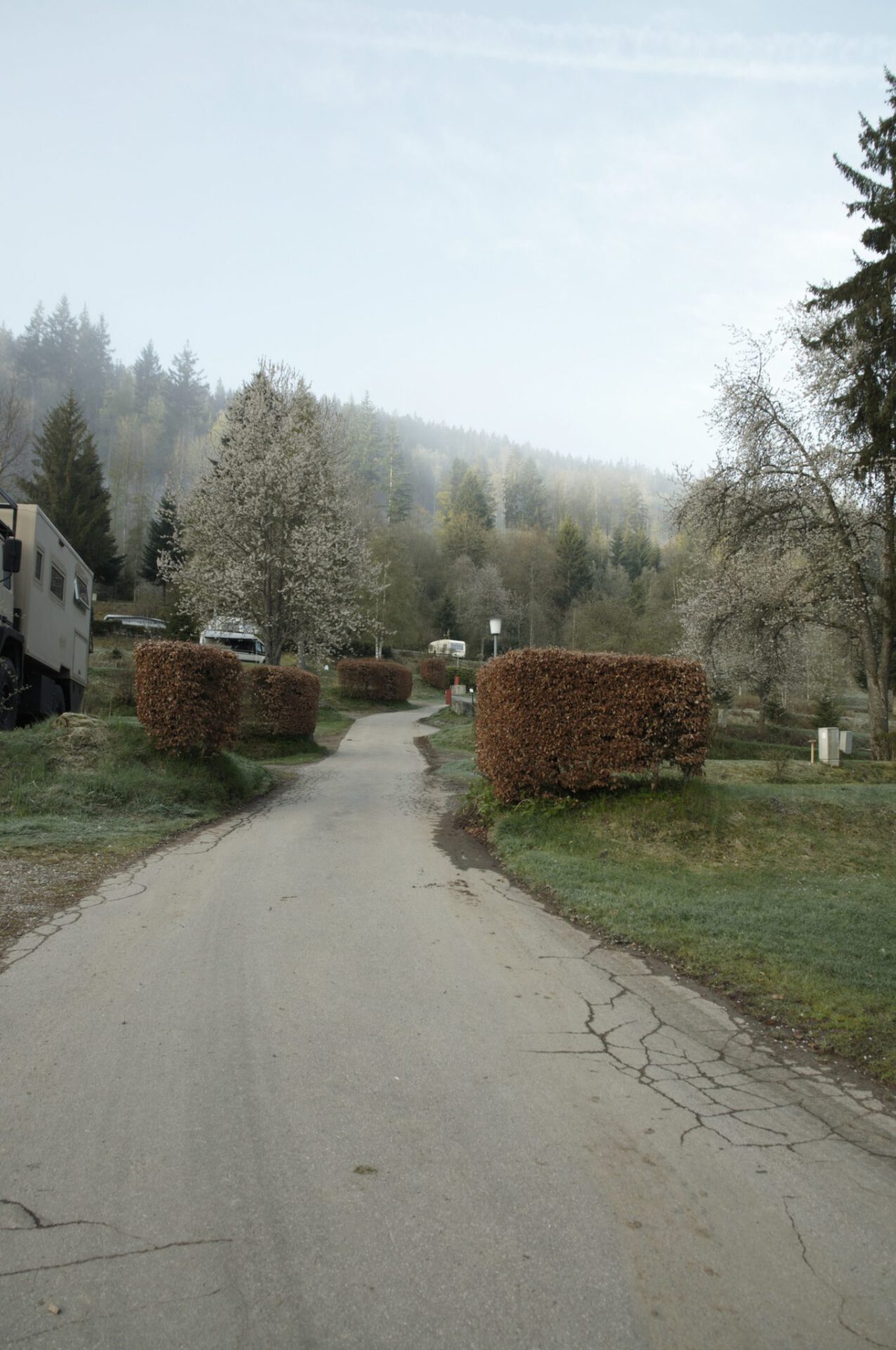 Am Titisee steuern wir einen Campingplatz an. Normalerweise sind wir autark, brauchen keinen Strom. Genug Gas und Wasser haben wir an Bord. Aber: Wäsche waschen ist angesagt. Das mit der mechanischen Handwaschmaschine funktioniert nicht wirklich und außerdem verbraucht man doch sehr viel Wasser mit der Handwäsche.