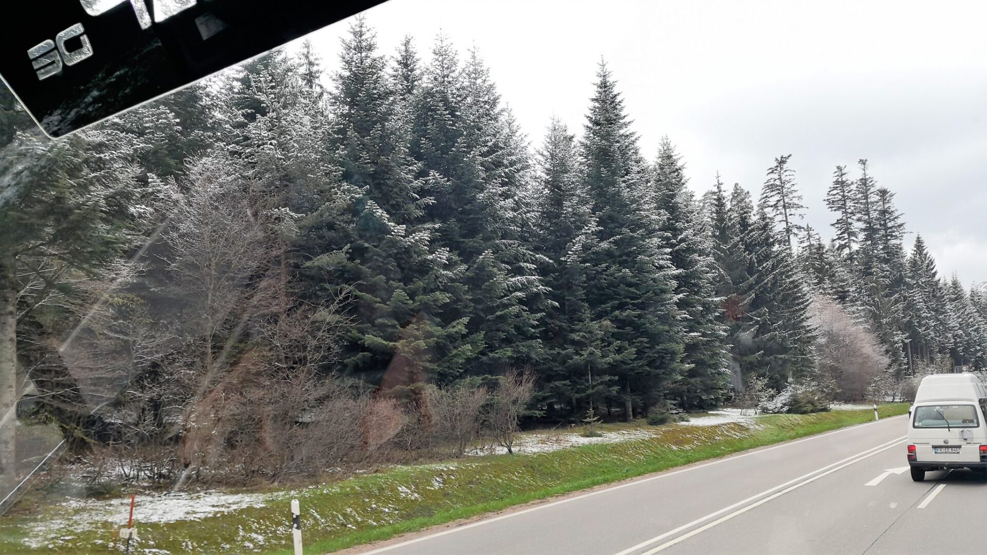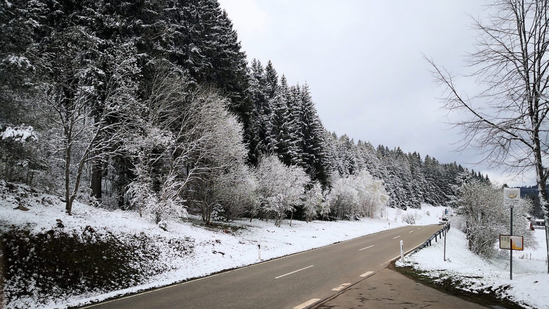Nach einem Kaffee geht es weiter Richtung Schluchsee zum „Veschpern“, wie der Schwarzwälder zu sagen pflegt. Lange halten wir uns dort nicht auf, es weht ein grauslig kalter Wind und zwischendurch schneit es immer wieder.