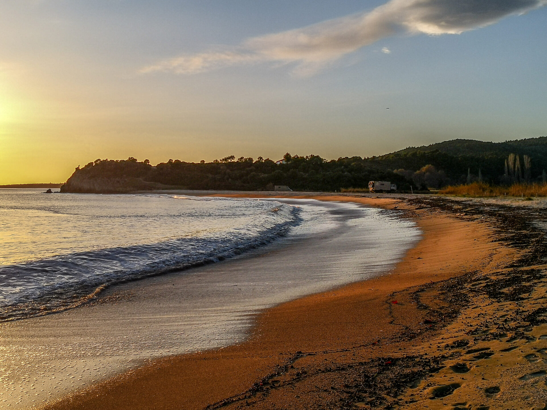Am 23.03.2020, dem ersten Tag der Ausgangssperre in Griechenland, finden wir einen wunderschönen Strand etwas südlich von Neos Marmaras, auf dem mittleren Finger der Chalkidiki, den Paralia Azapiko. Vielen Dank an Annelie für den hervorragenden Tipp!