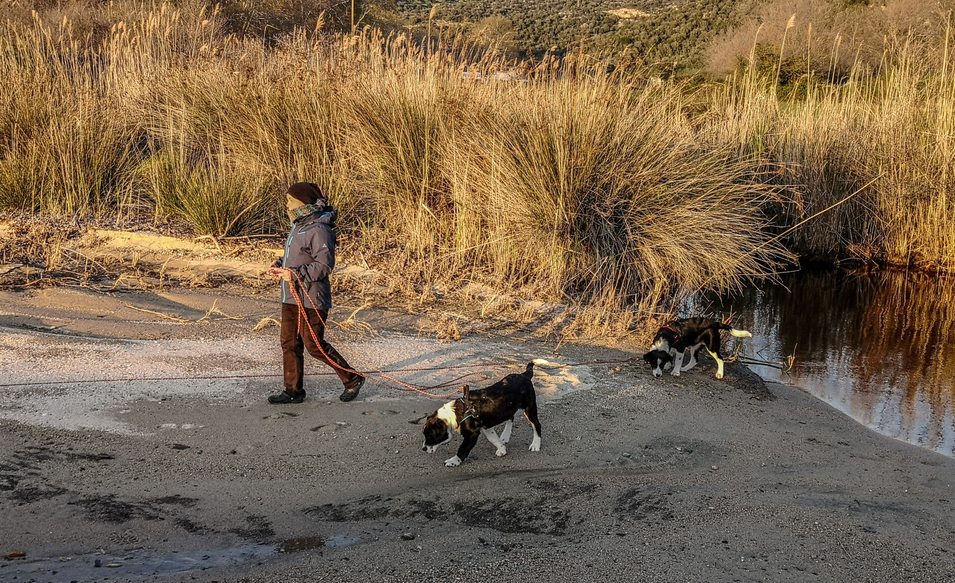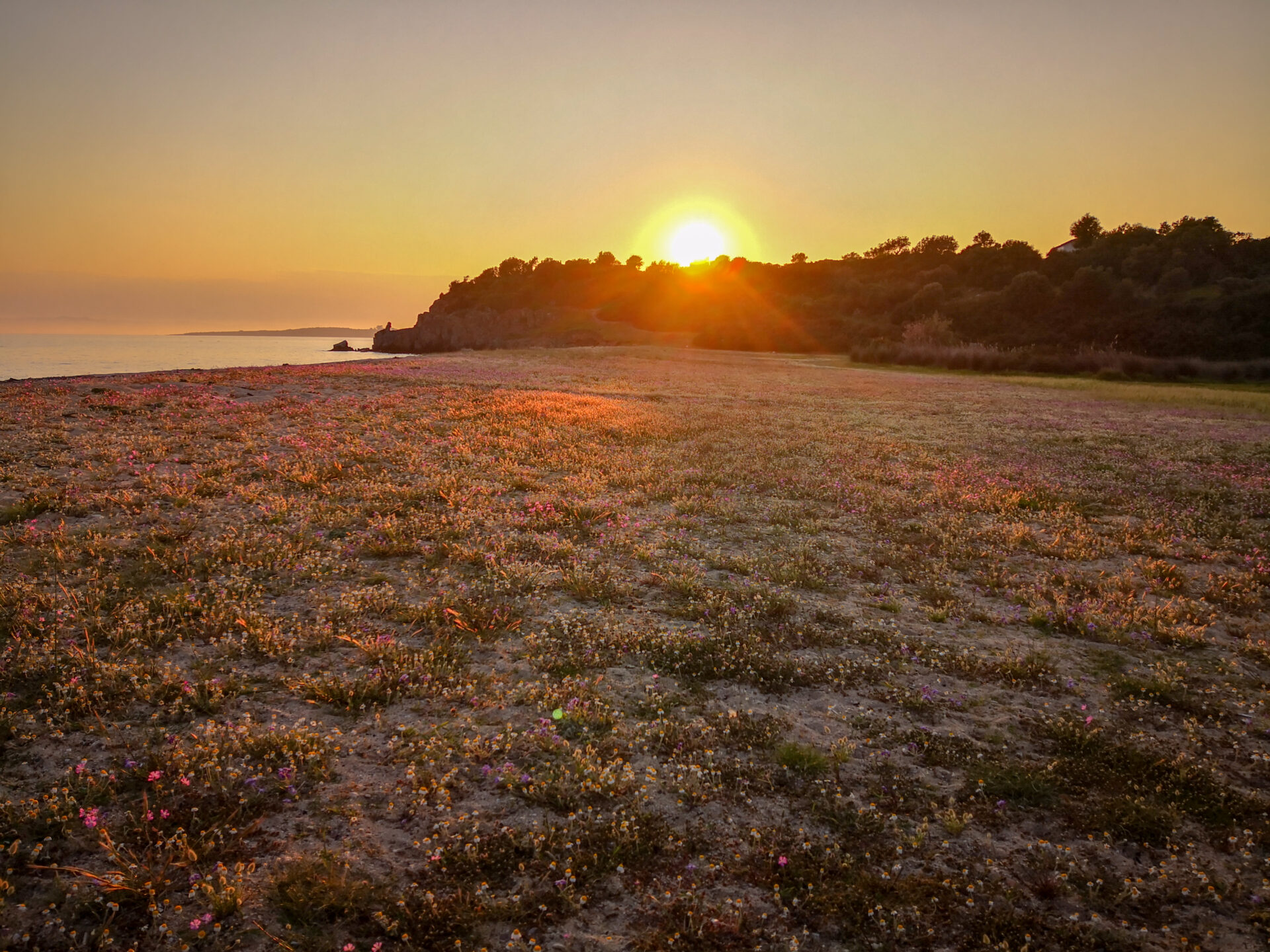 Für uns ist der Strand der perfekte Ort. Wir können problemlos mit den Hunden immer und jederzeit raus und spazieren gehen. Selbst dafür müssten wir jedes Mal das Formular ausfüllen und mitnehmen. Außer einer Schaf- und Ziegenherde ist hier jedoch nichts und niemand und die Viecher interessieren sich dann doch nicht für solche Formalitäten. Auf einem der Hügel ist eine Kapelle mit einer Quelle, Wasser ist also auch kein Problem.