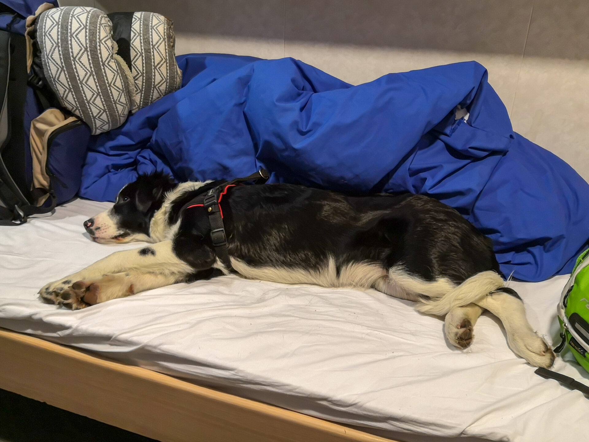 Die Fährüberfahrt ist eine Katastrophe. Wir bekommen eine winzige Innenkabine, die kleiner ist als unsere Wohnkabine auf Oskar! Es ist stickig, die Klimaanlage laut, aber ohne würden wir ersticken. Die Hunde sind fertig und wir auch.