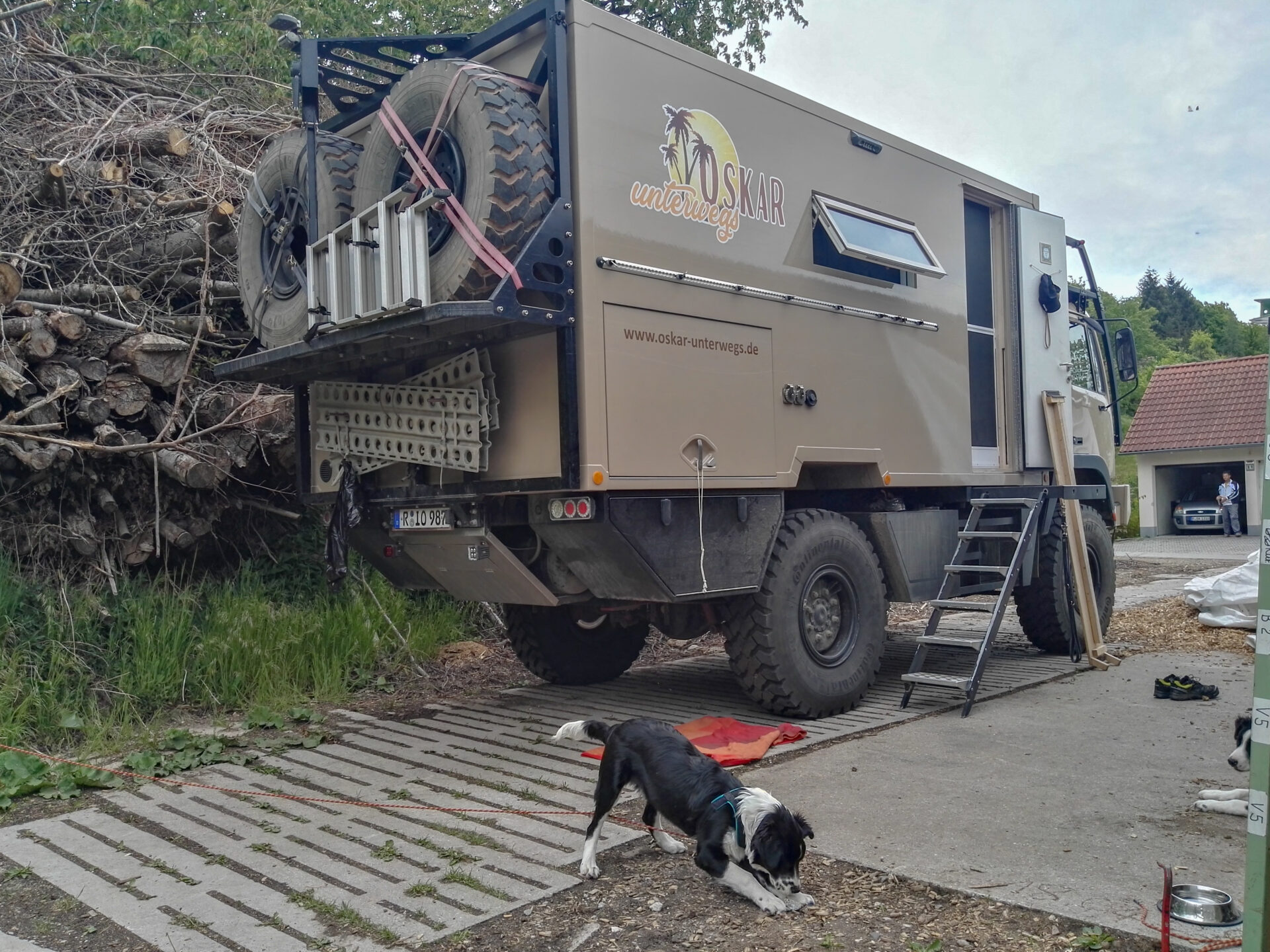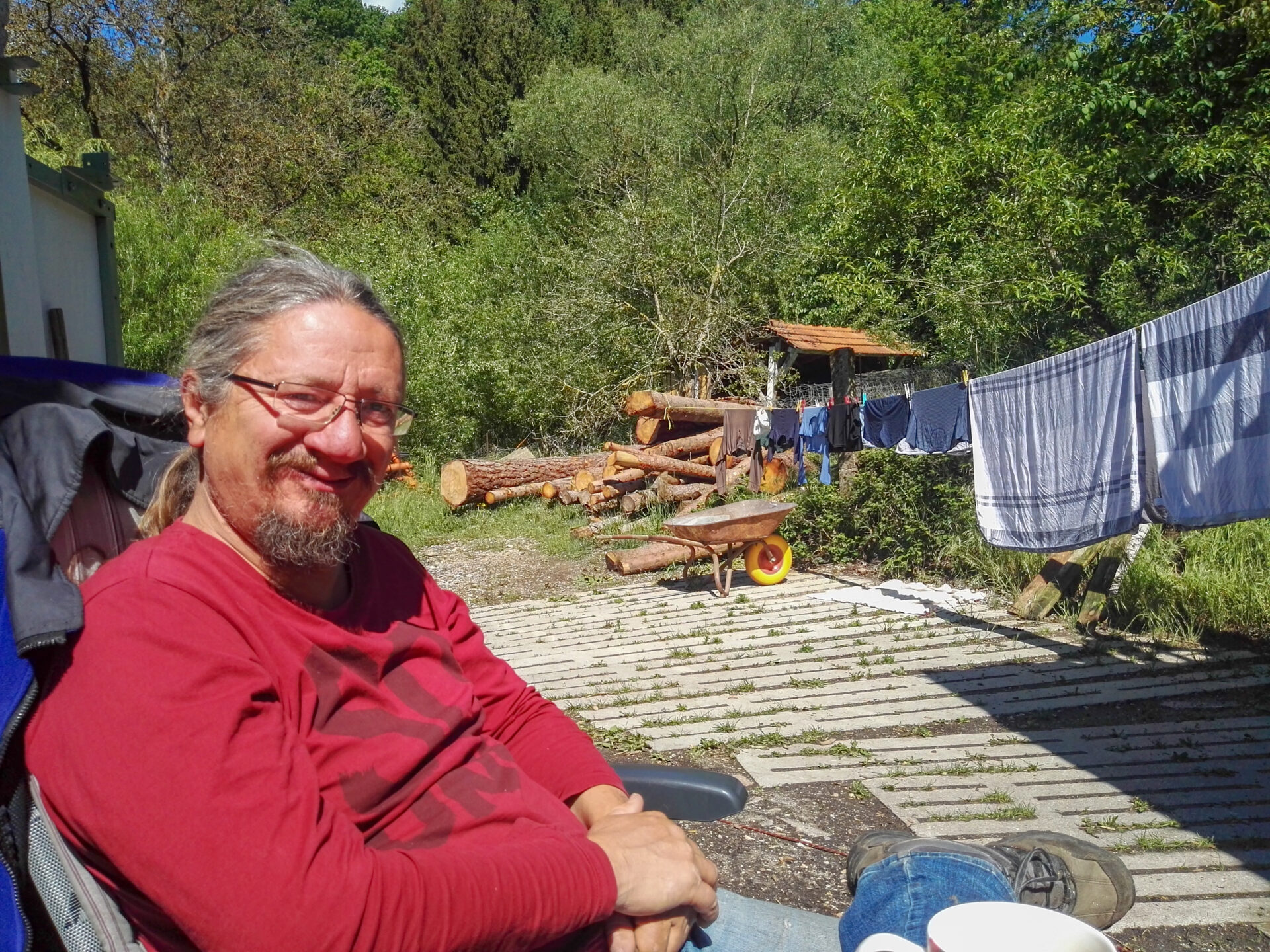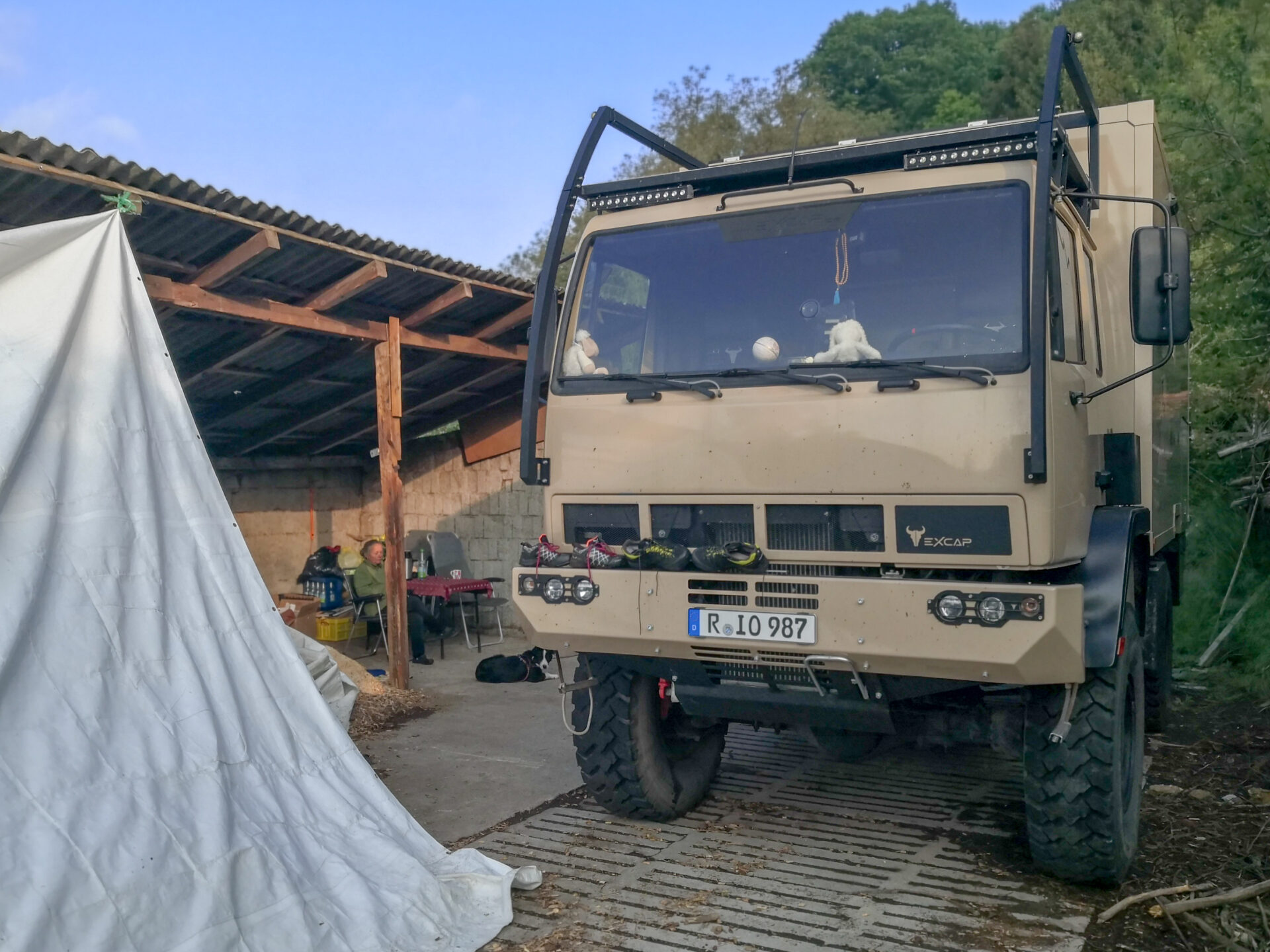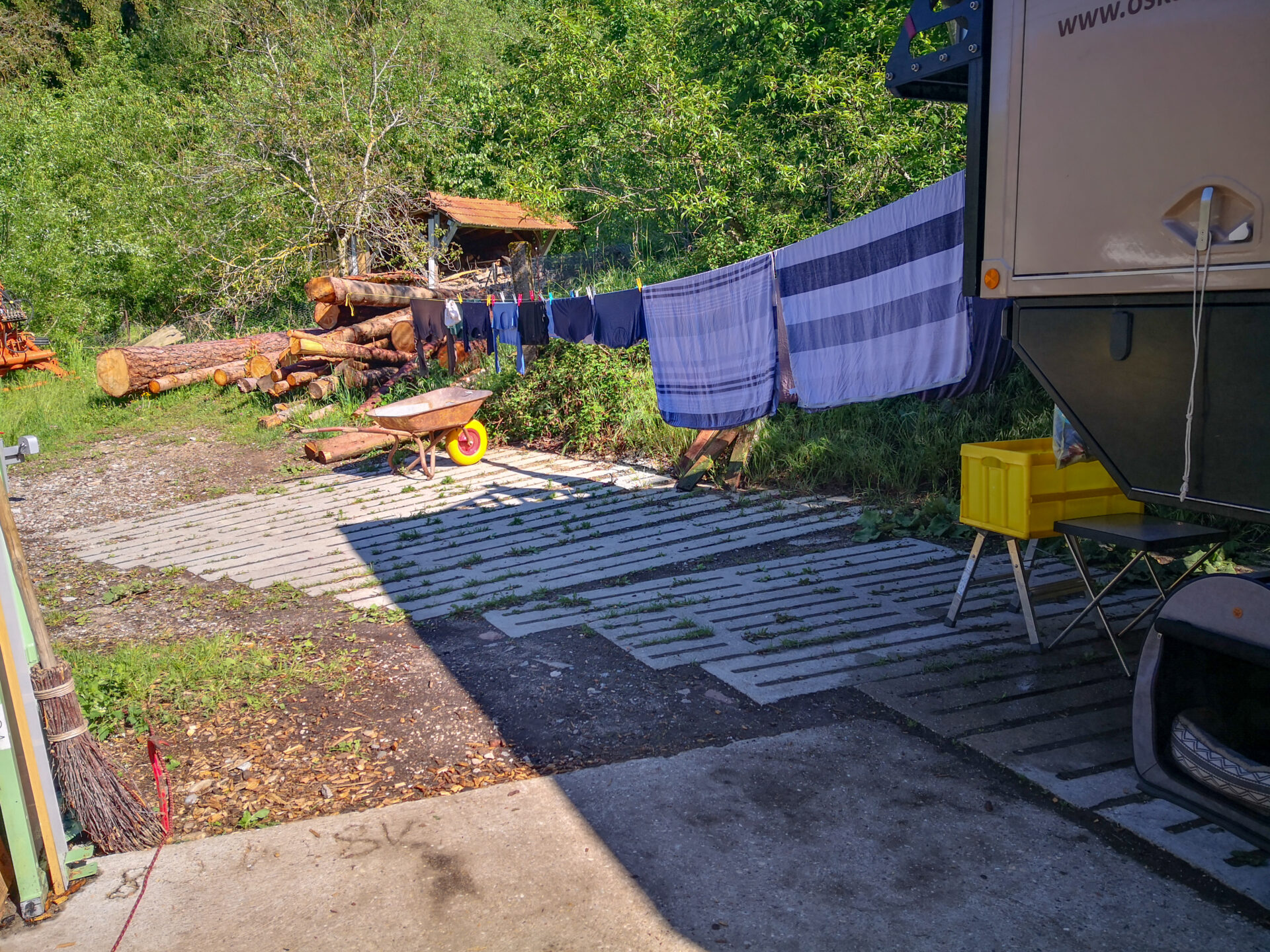 Aber: Unsere Quarantänezeit verbringen wir glücklicherweise auch ein wenig abseits in der Einöde, auf einem Gehöft in Ettersdorf. An dieser Stelle vielen lieben Dank an den Hans für das hübsche Plätzchen, das er uns zur Verfügung gestellt hat, sogar mit überdachter Terrasse.